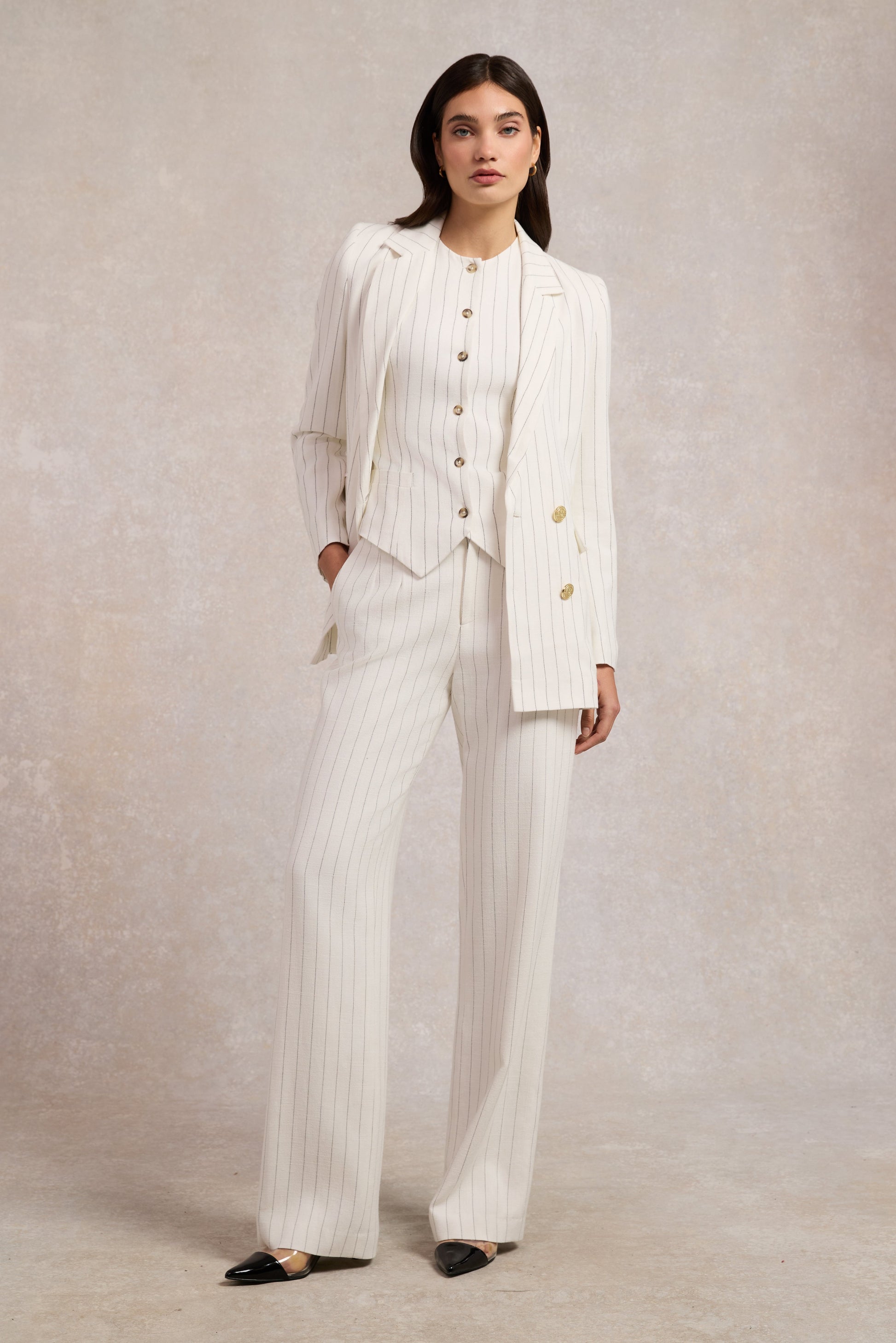High Waisted Straight Trouser (Oyster Linen Pinstripe)