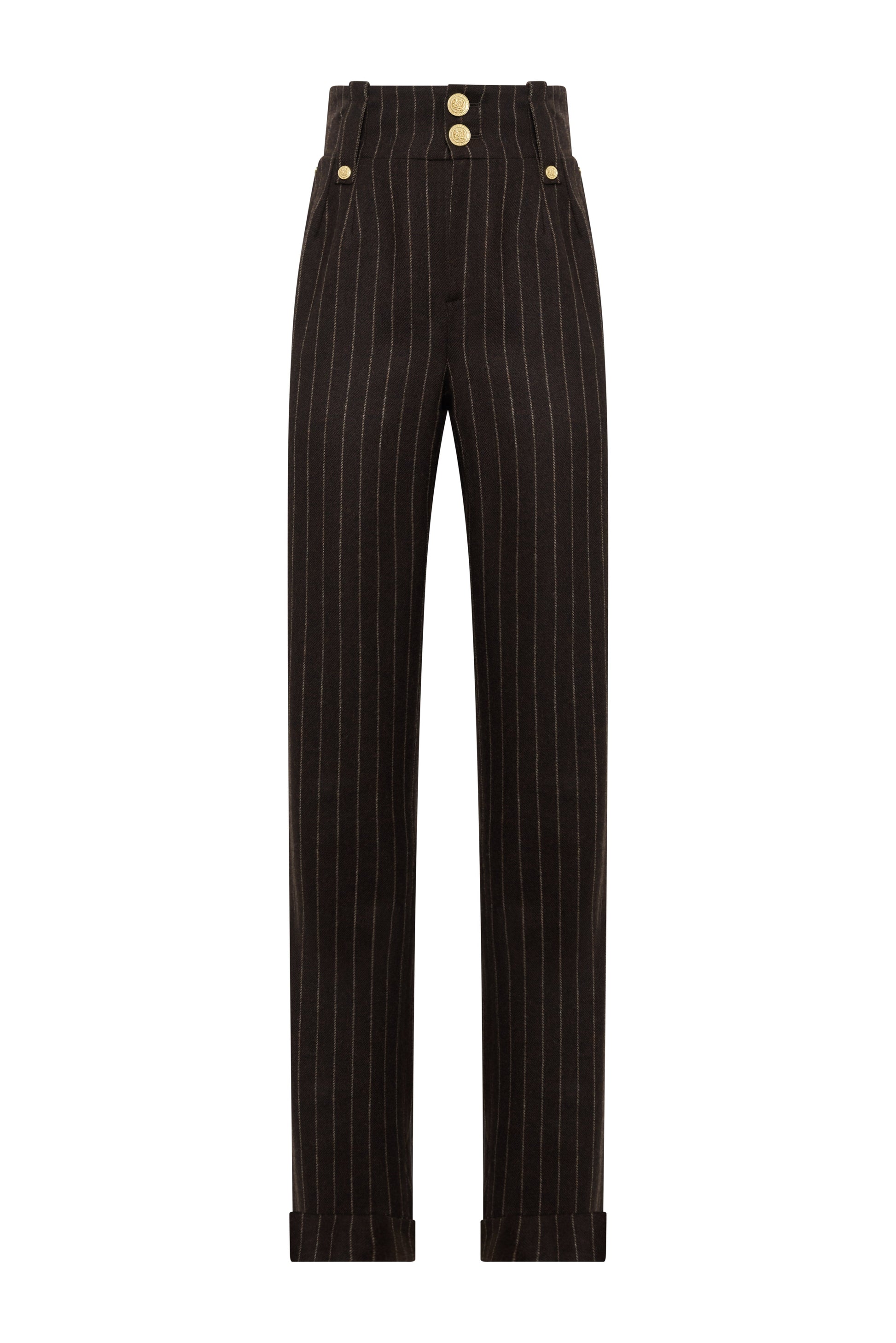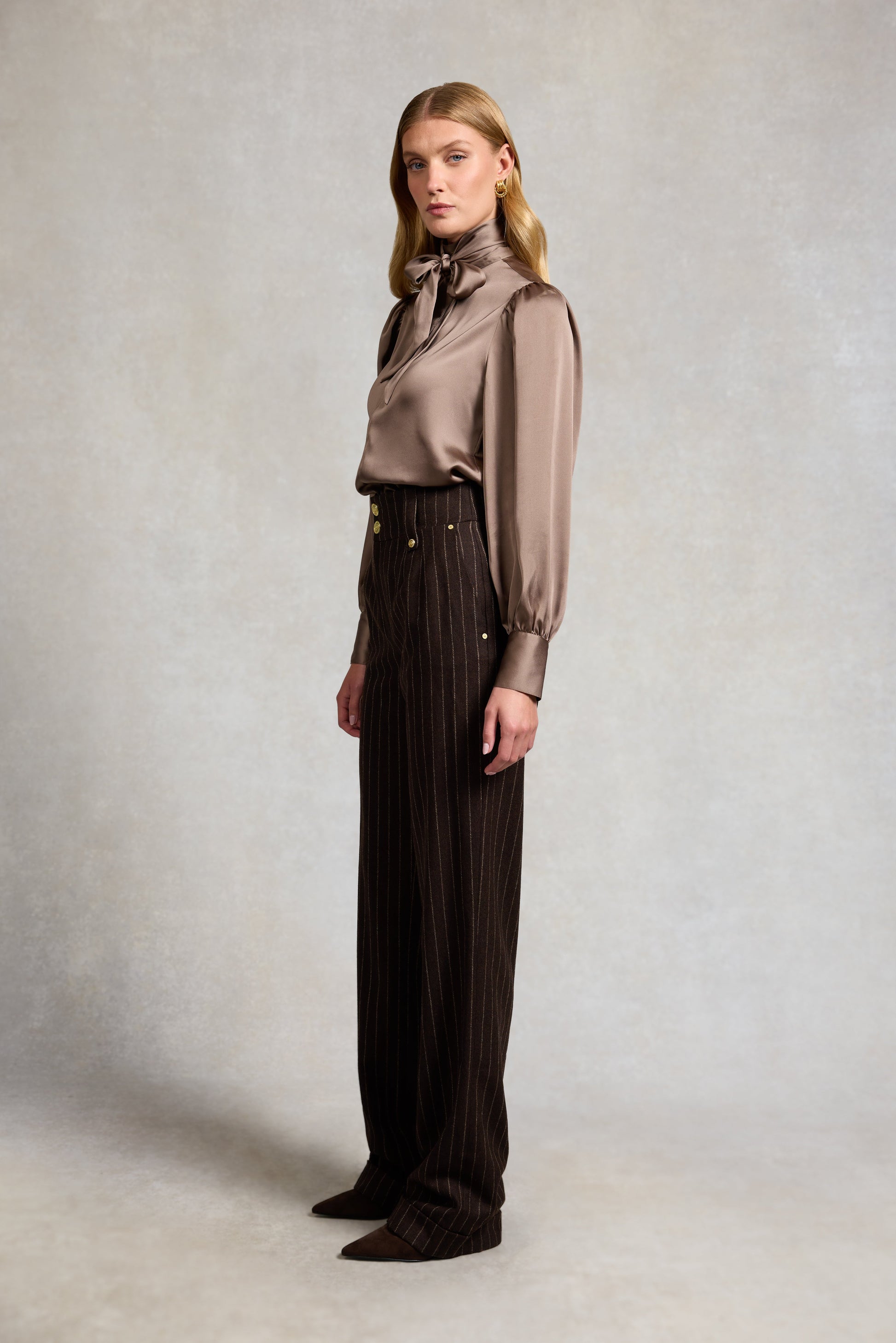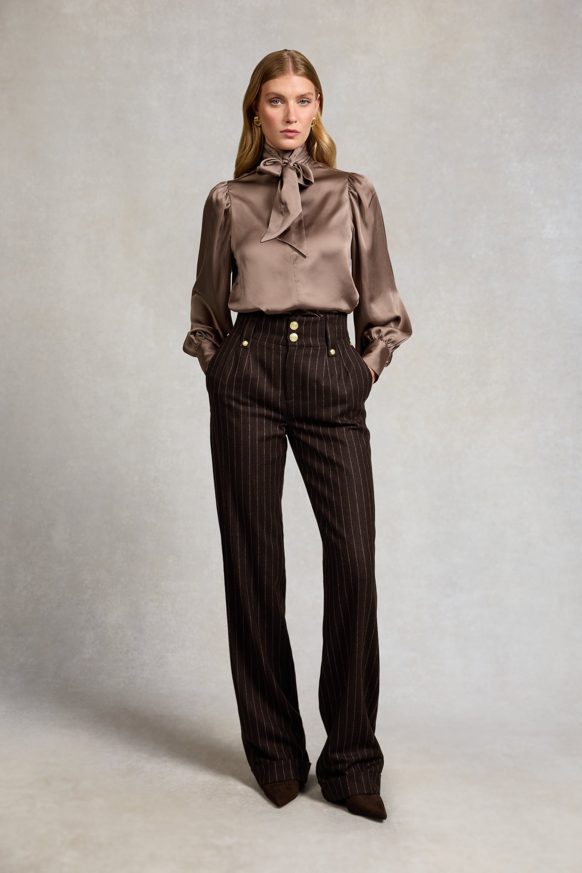 High Waisted Wide Leg Trouser (Chocolate Pinstripe)