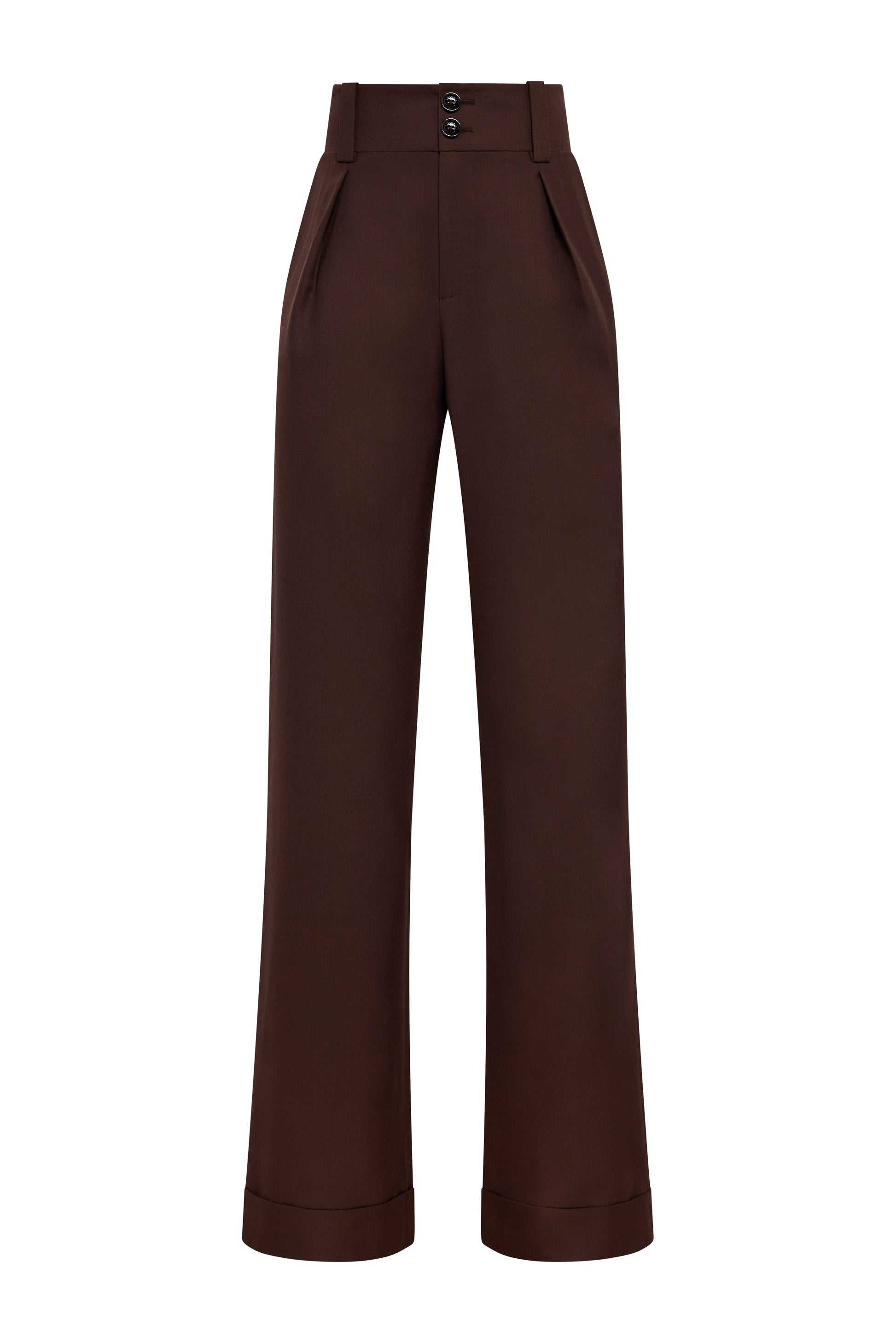 High Waisted Wide Leg Trouser (Walnut Twill)