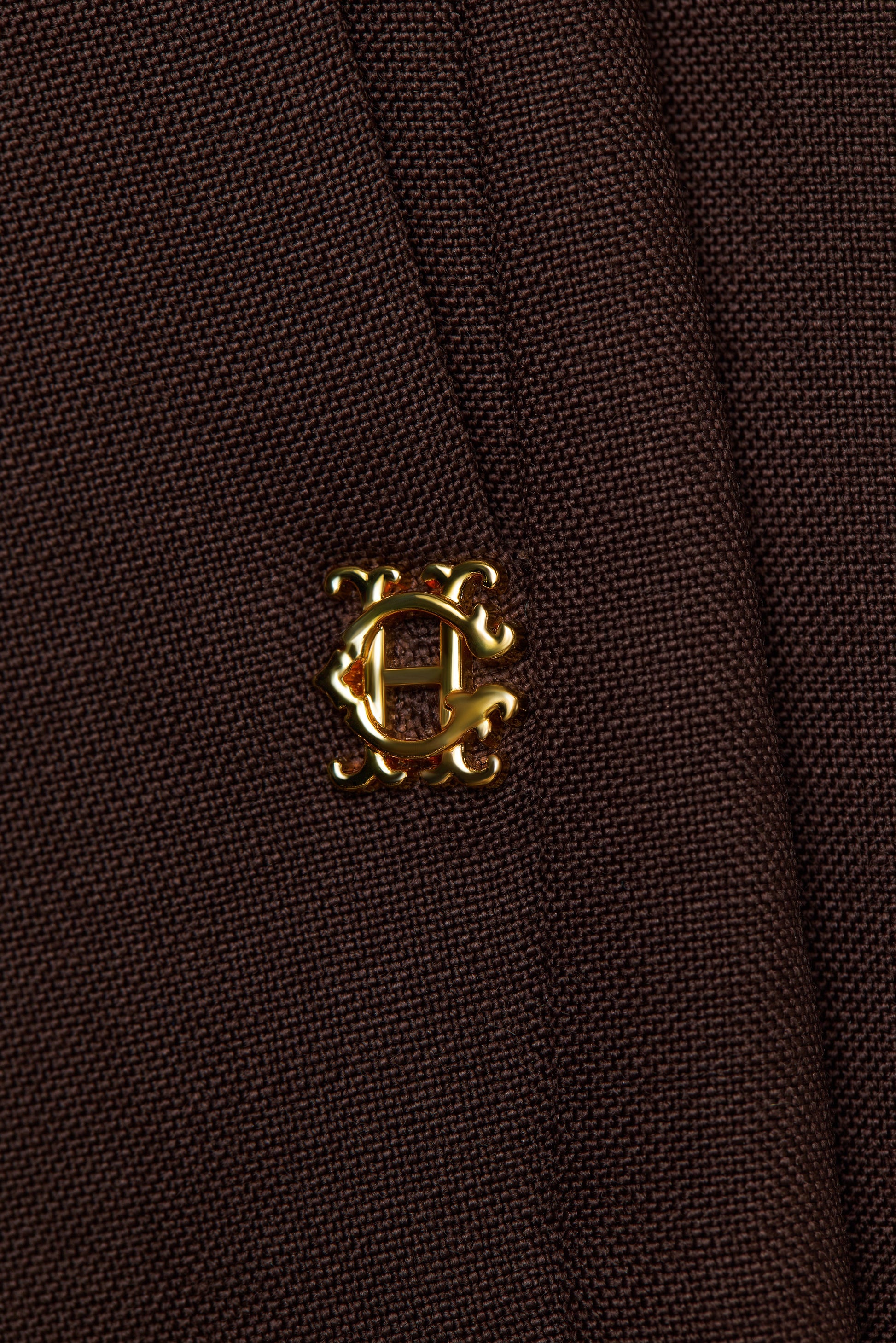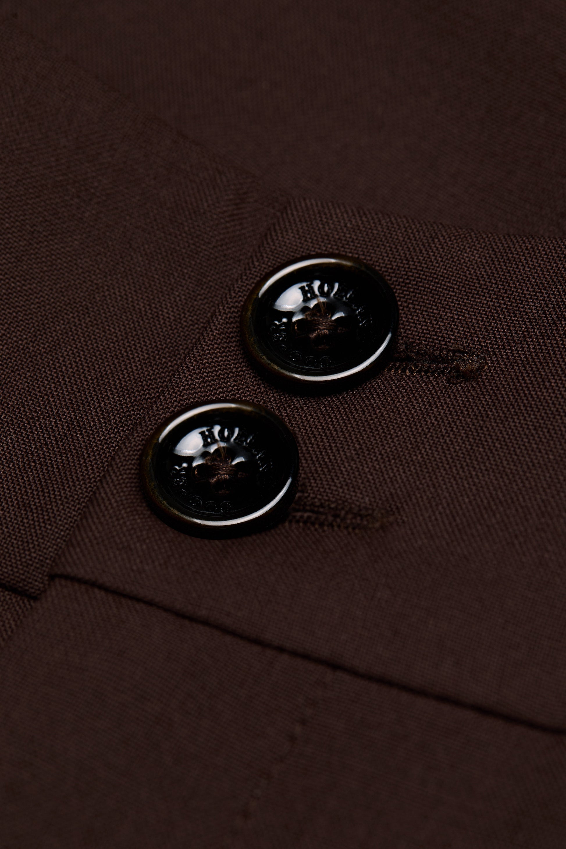 Simple and refined. these wide-leg trousers are the perfect balance of smart and casual that effortlessly take you from day to night. Made from a luxurious wool blend that's fully lined. these trousers sit high on the waist with a wide waistband to create a flattering silhouette that suits all body shapes. Featuring two large side pockets and adorned with our iconic gold hardware for an added touch of luxury. These trousers have been hand cut and made in England using wool woven in the UK.