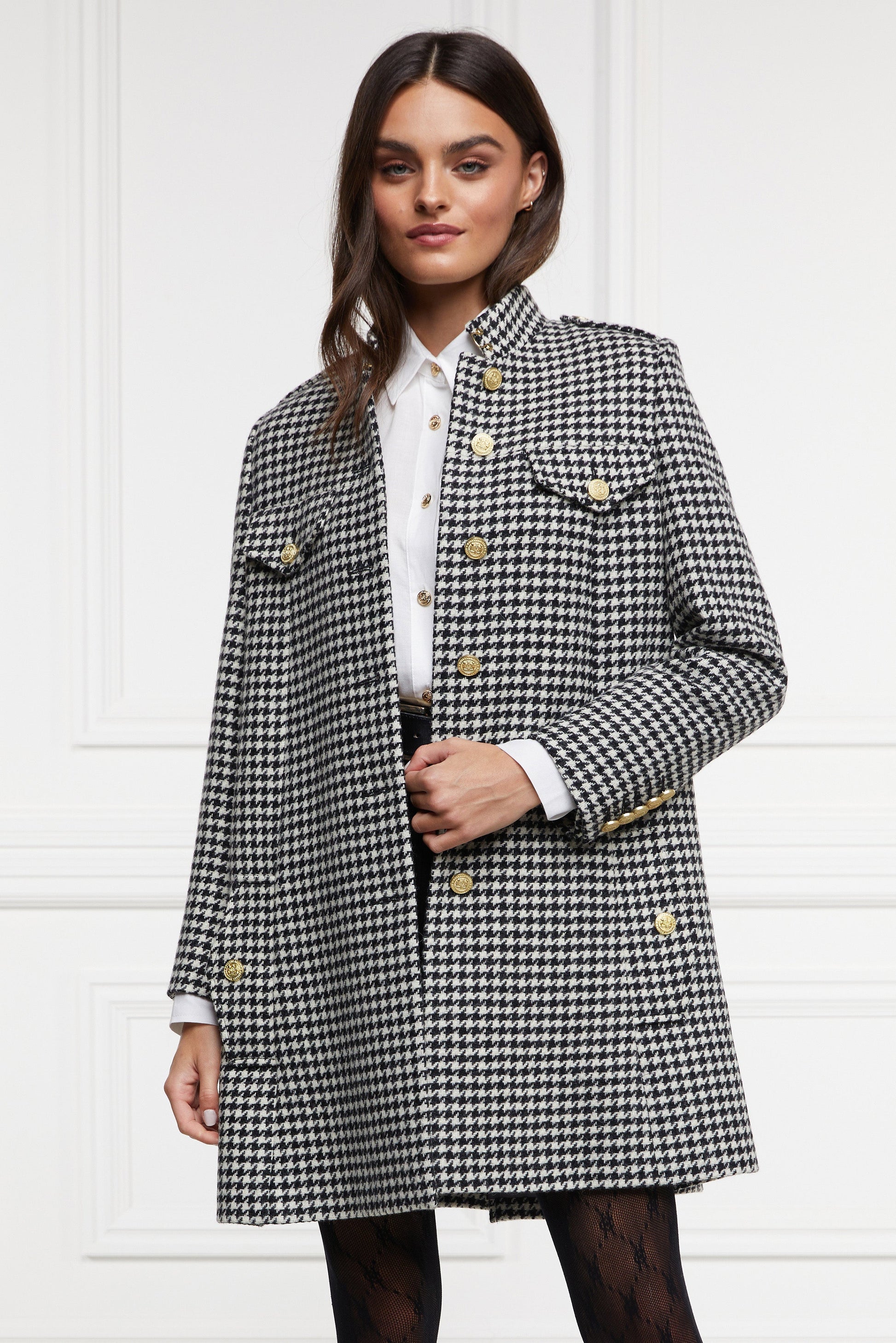 A hybrid between a cape and a jacket. the Highbury Cape has been entirely handmade in the UK. Designed to fit like a cape with an easy fit and elegant drape. the tailored sleeves create a sophisticated silhouette. With a wide inverted box pleat with side-entry pockets. the piece has been detailed with a high neck hook and eye closure.