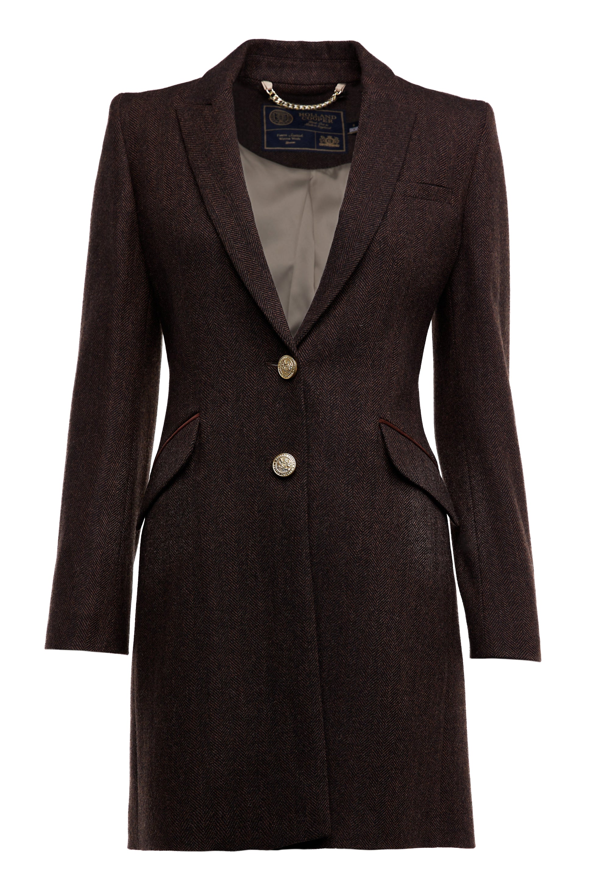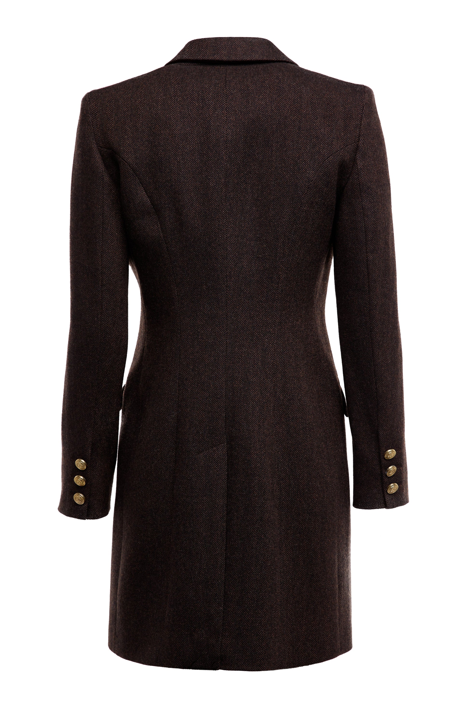 Designed with a single-breasted cut to achieve a slim tailored silhouette. this coat has been designed from UK woven wools. With a mid-length and structured shoulders. this piece has been created to fit seamlessly into your wardrobe. Trimmed with authentic suede to the underside of the collar and detailed with our iconic hardware for an elevated statement.
