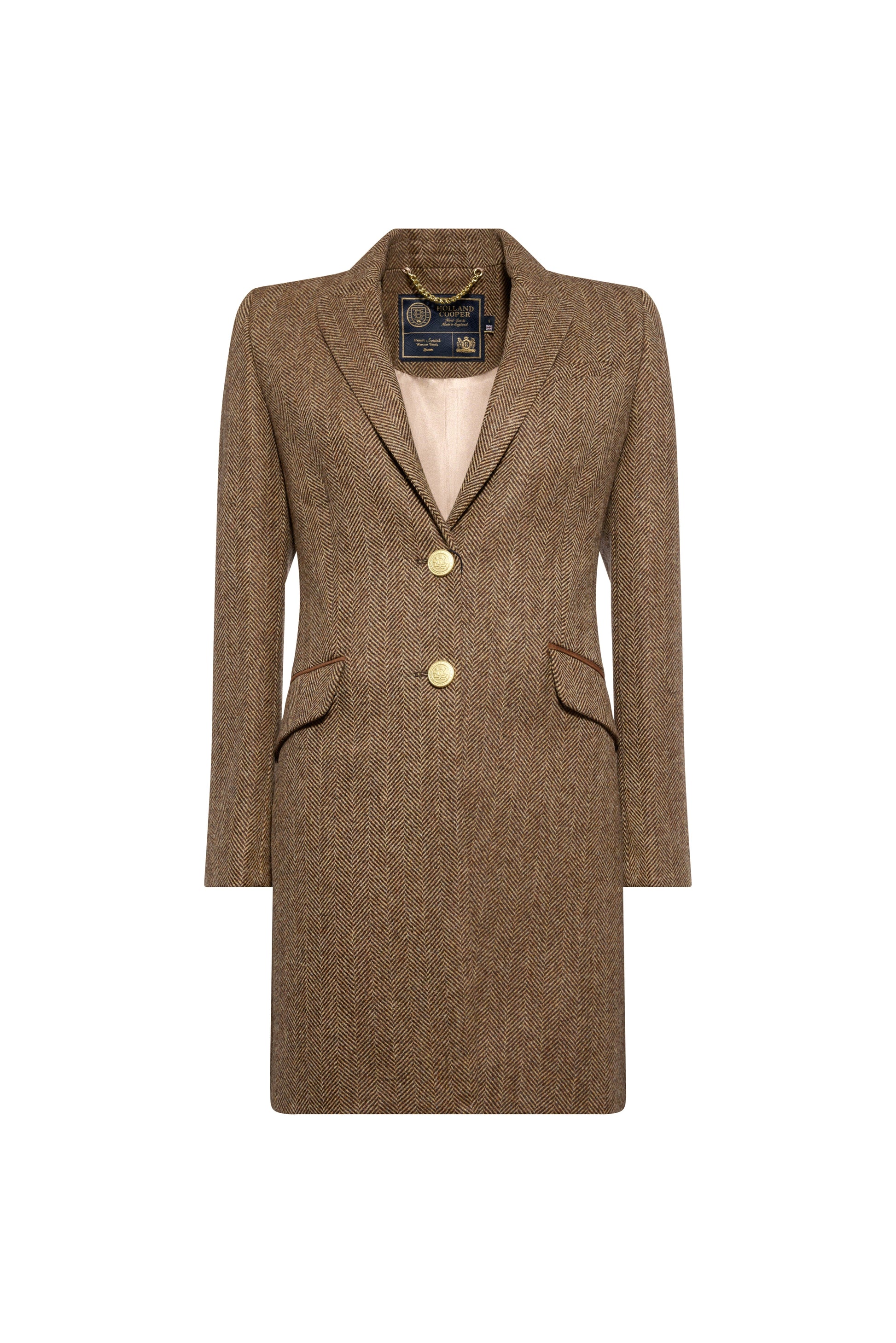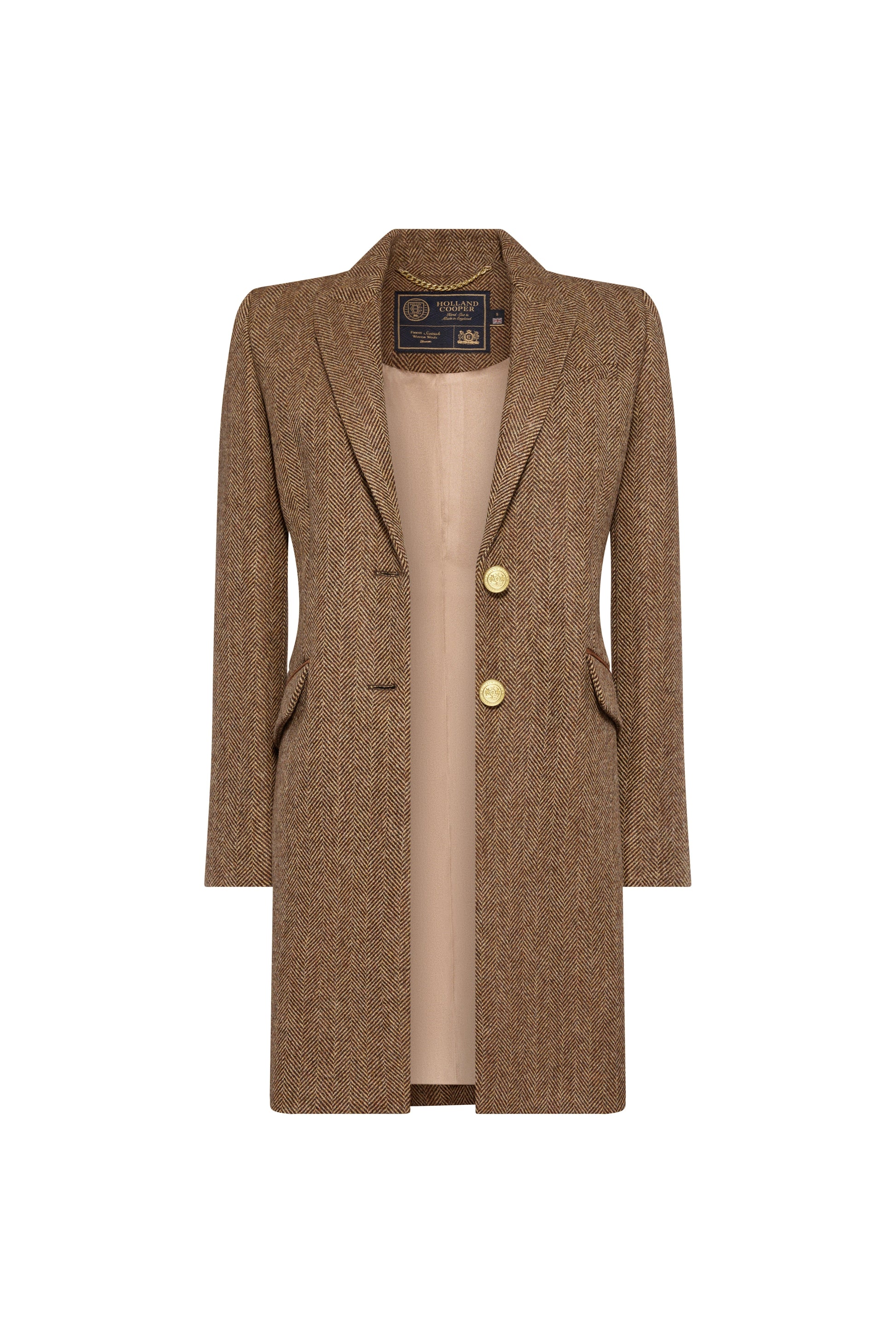Expertly crafted in the UK from premium woven wools. this coat is tailored with a single-breasted cut to create a sleek. slim silhouette. The mid-length design and structured shoulders offer a timeless. flattering shape that layers effortlessly over your wardrobe staples. Finished with authentic suede under the collar and signature HC hardware. every detail has been considered to deliver a refined and elevated look.