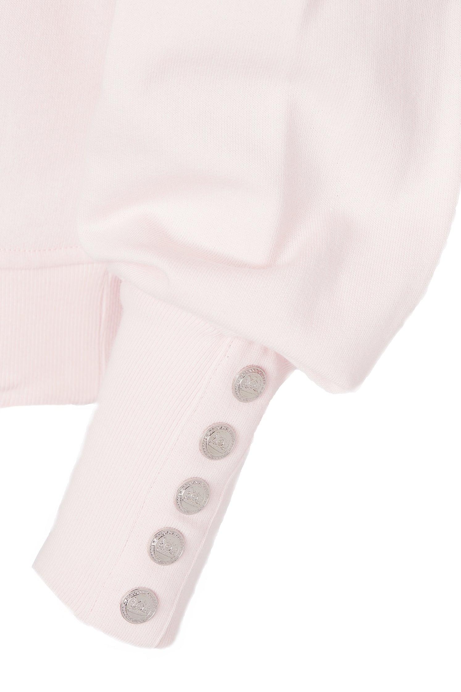 Crafted from super soft yarn. this sweatshirt boasts a relaxed fit for a laid-back yet chic look. Featuring puff full sleeves with feminine long cuffs and a classic crew neck. The silver HC metal hardware adorning the shoulders and cuffs adds a touch of luxury. making it the perfect choice for both comfort and elevated fashion.