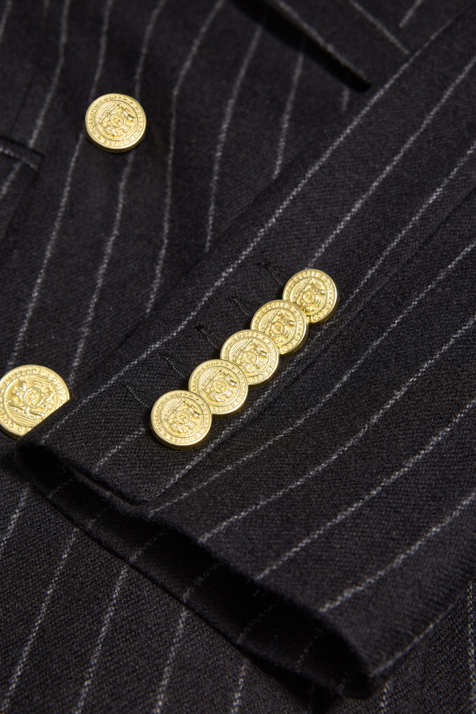 Hand-cut and made entirely in the UK. this blazer has been elevated for the season with a longline. double-breasted silhouette that exudes timeless sophistication. Elegantly crafted to create a sharp tailored fit whether worn open or closed. it features peak lapels. subtle padded shoulders. and is fully lined in satin for easy layering. Detailed with signature HC gold buttons on the front and cuffs. Pair with our coordinating Belgravia Skirt for the ultimate power duo.