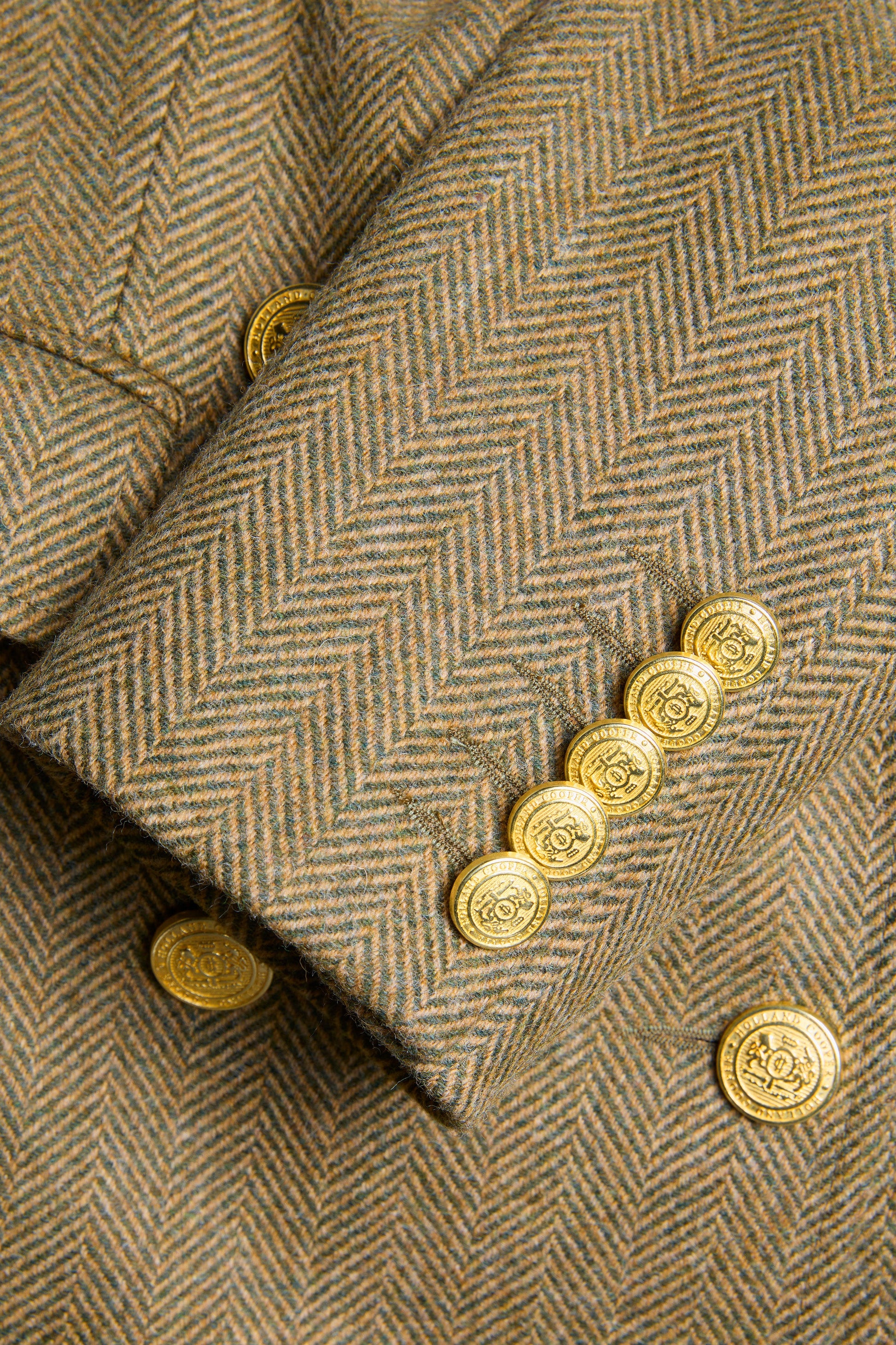 Inspired by country heritage. our Moss Green Tweed Double-Breasted Blazer is the epitome of refined tailoring.
