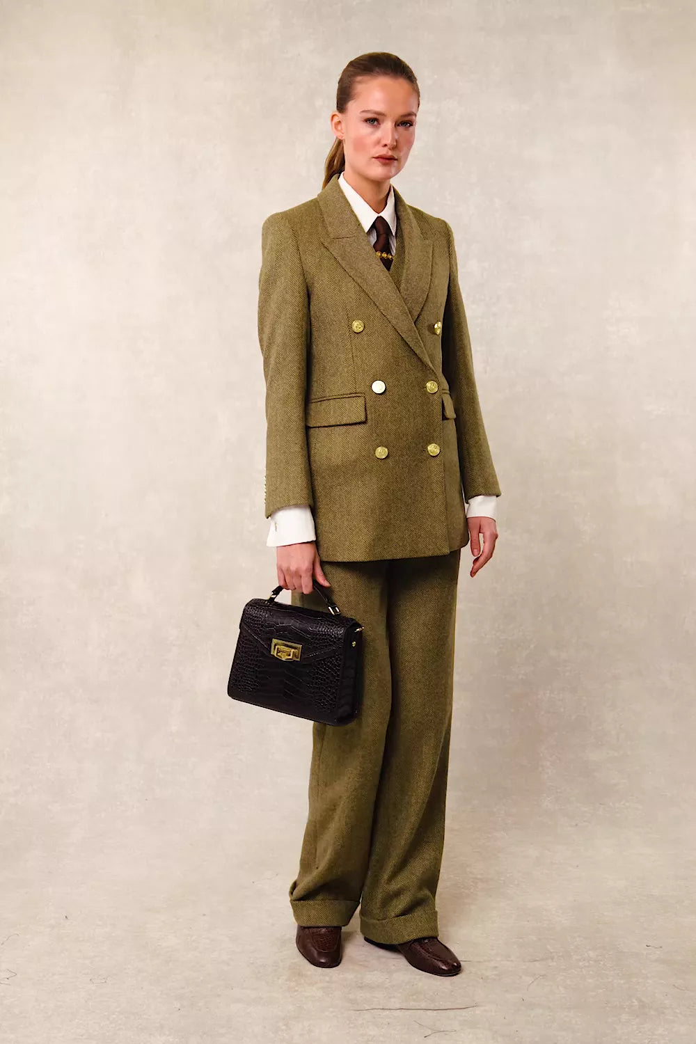Kensington Double Breasted Blazer (Moss Herringbone)