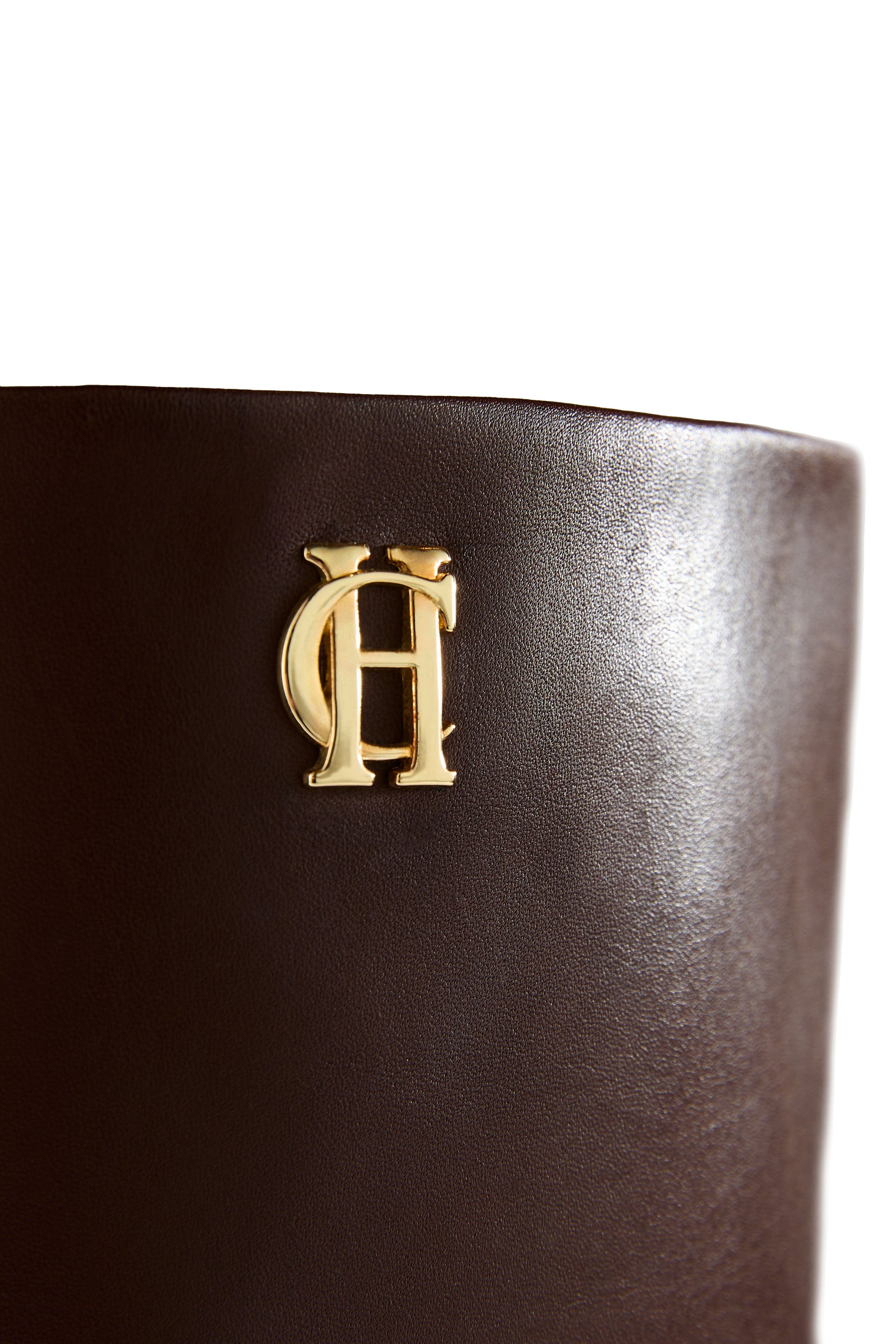 A timeless classic. updated for the season. This elegant pull-on style features a comfortable chunky heel and our signature HC branding for a touch of sophistication. Designed with an internal elastic gusset for a perfect fit and ease of wear. it boasts a clean outsole finished with our classic racing green lacquer. Ideal for regular calf widths. the Kensington Knee Boot combines style. comfort. and functionality for a versatile addition to your wardrobe.
