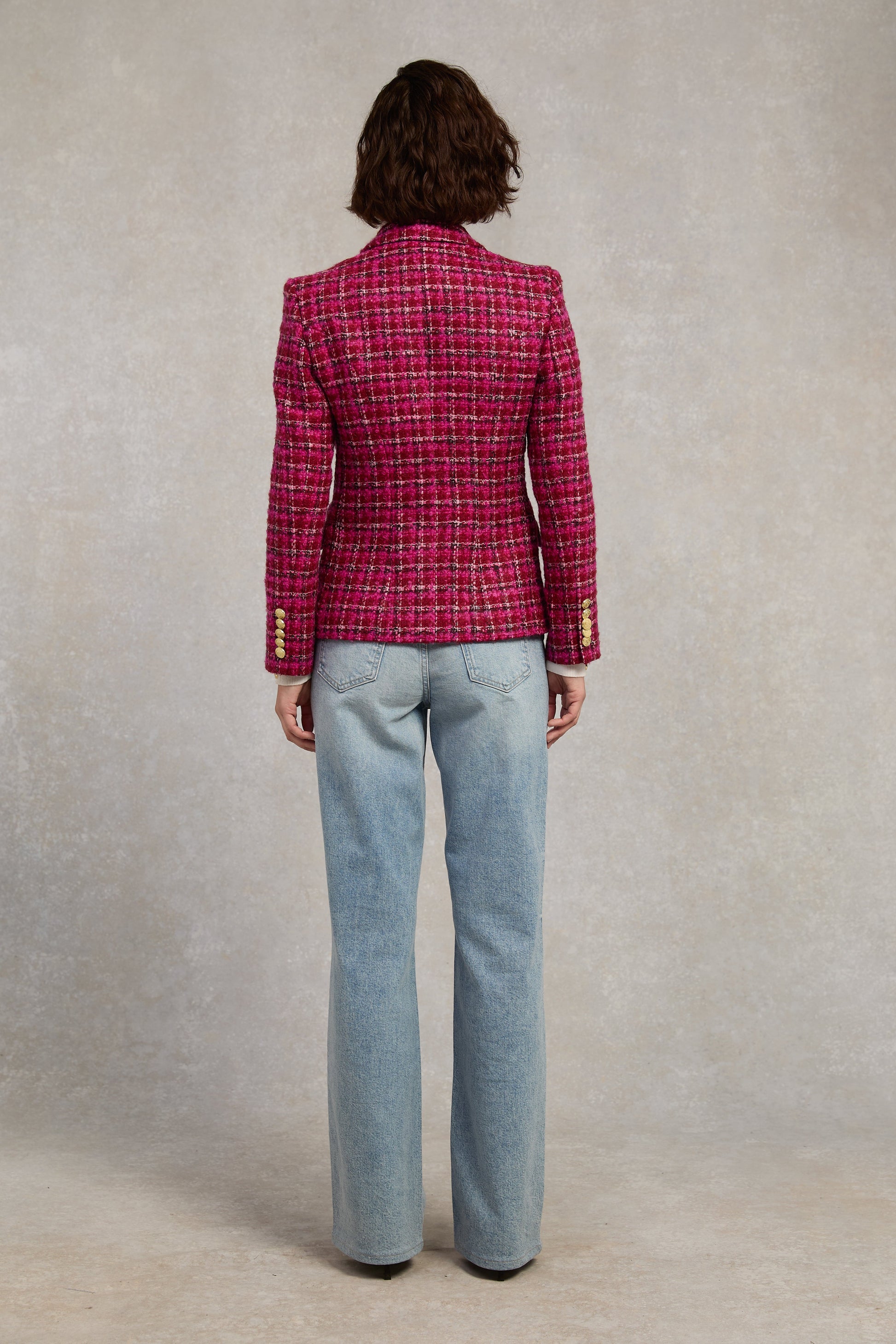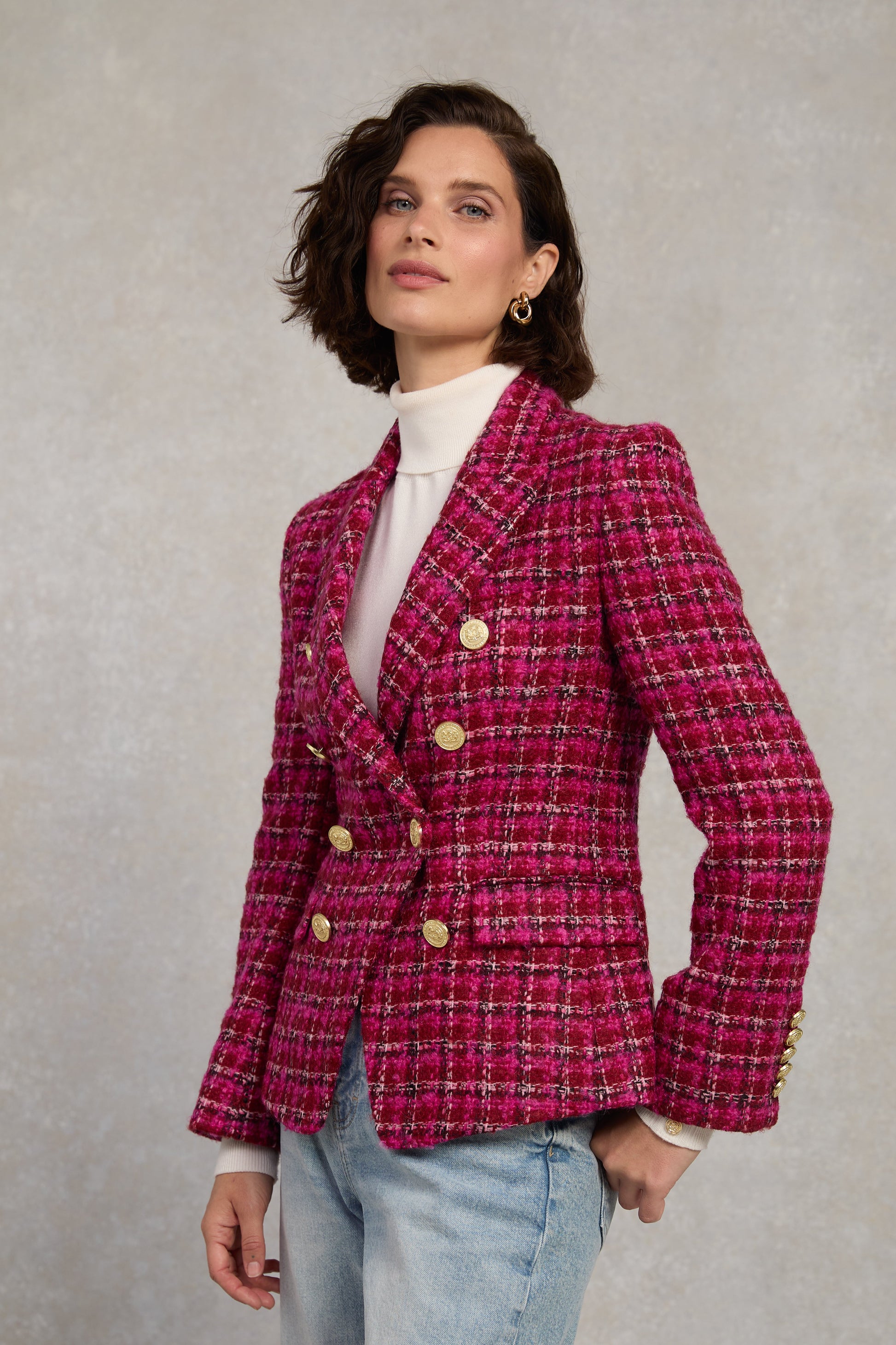 Crafted from premium wools woven in the UK. the Knightsbridge Blazer embodies timeless British tailoring with a modern edge. Cut to a slim. double-breasted silhouette and finished with HC's signature crested rivets. it delivers a sharp. structured profile whether worn open or closed. Fully lined with a luxury stretch fabric for all-day comfort. it's elevated by bold lapels and subtly placed hip pockets for a polished finish. Hand-cut and made entirely in England. this wardrobe icon has been reimagined for the season in a fresh. new colourway—offering a refined update on a heritage classic.