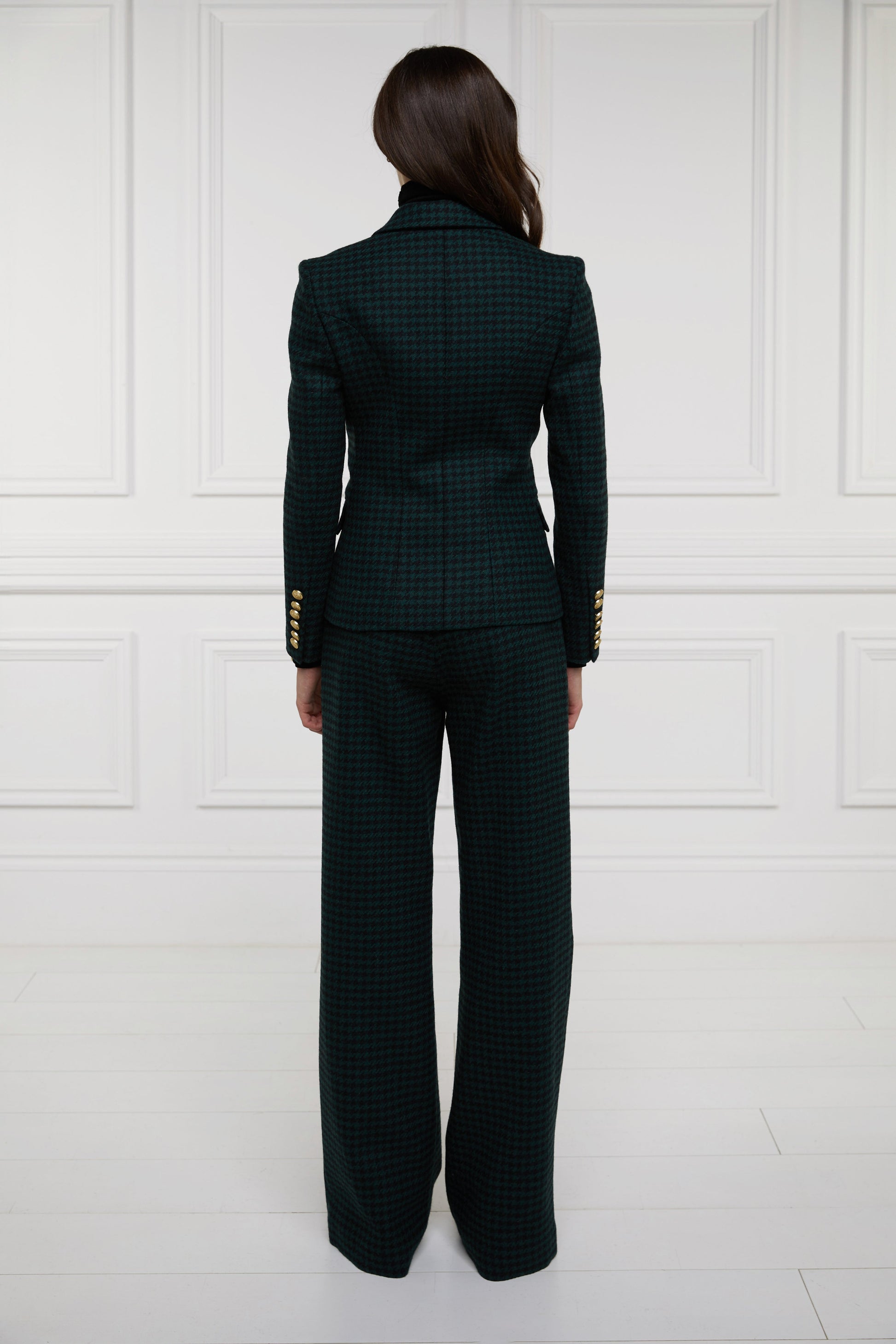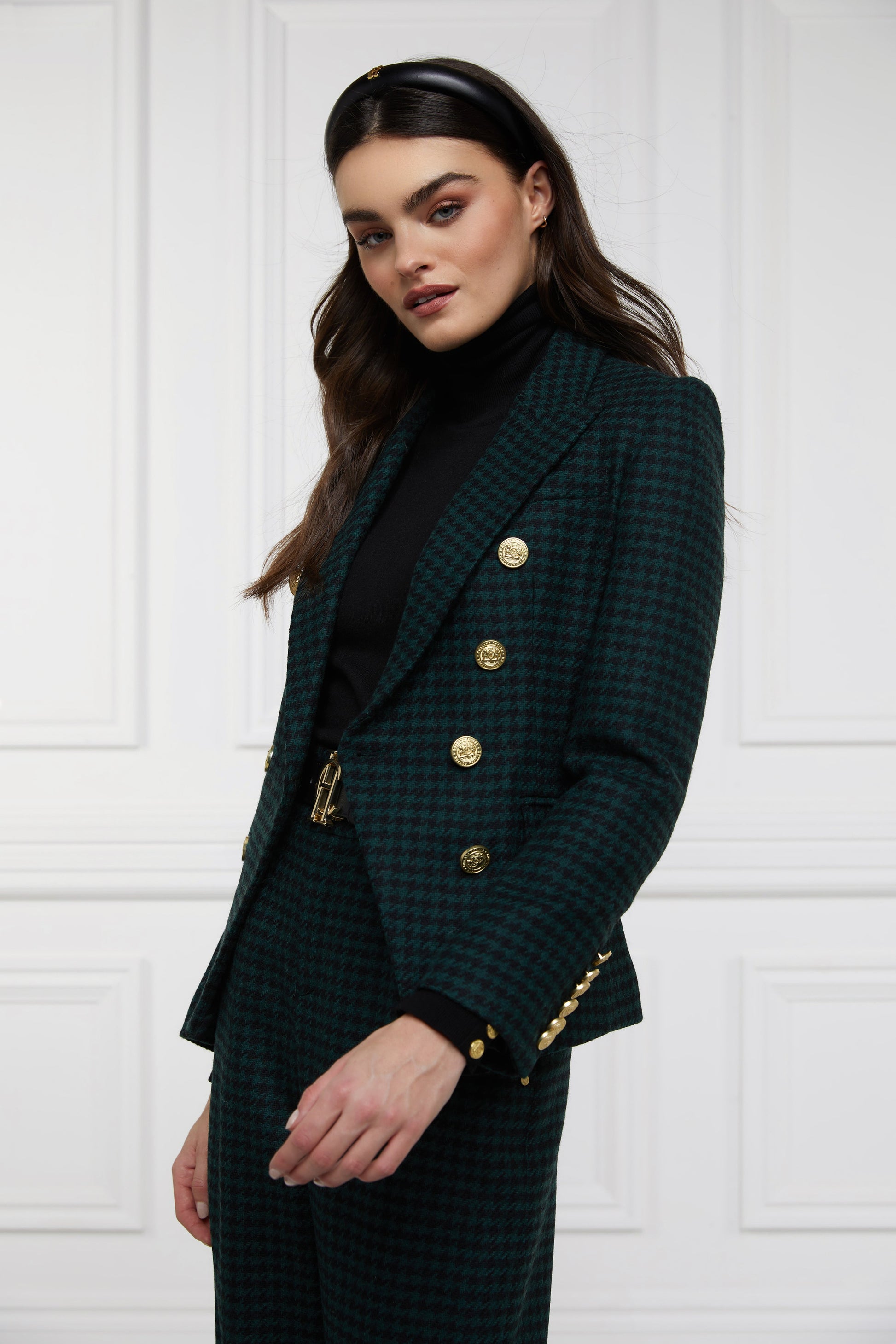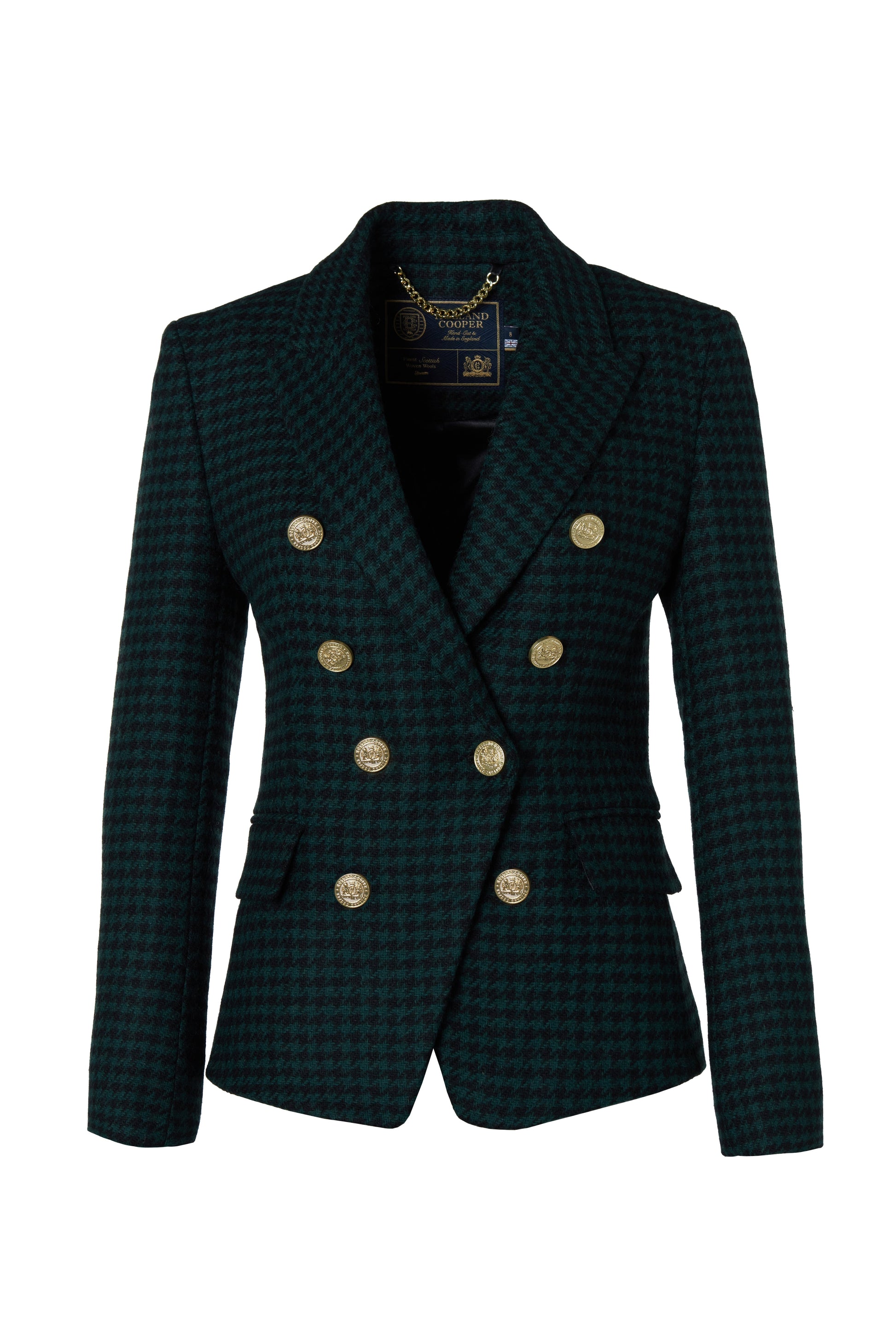 Made from wools woven in the UK. this blazer has a slim. double-breasted silhouette featuring HC's signature crested rivets. Precisely tailored to ensure a sharp and tailored profile worn open or closed. each blazer has been fully lined with a luxury stretch lining for comfort. Elevated by bold lapels and subtly placed hip pockets. this wardrobe staple has been hand cut and made entirely in England. To ensure your piece of British Made Tailoring is kept safe on its journey to you. we are now including a complimentary HC garment bag with this piece.