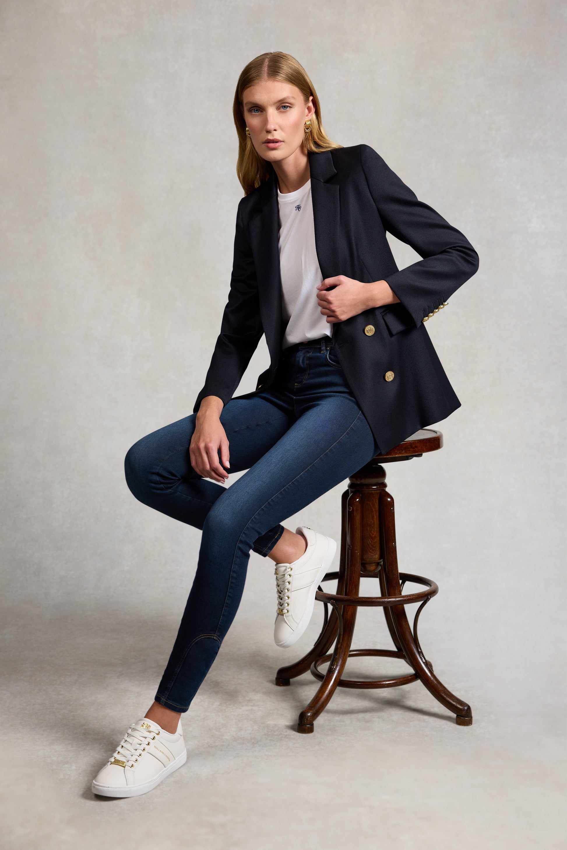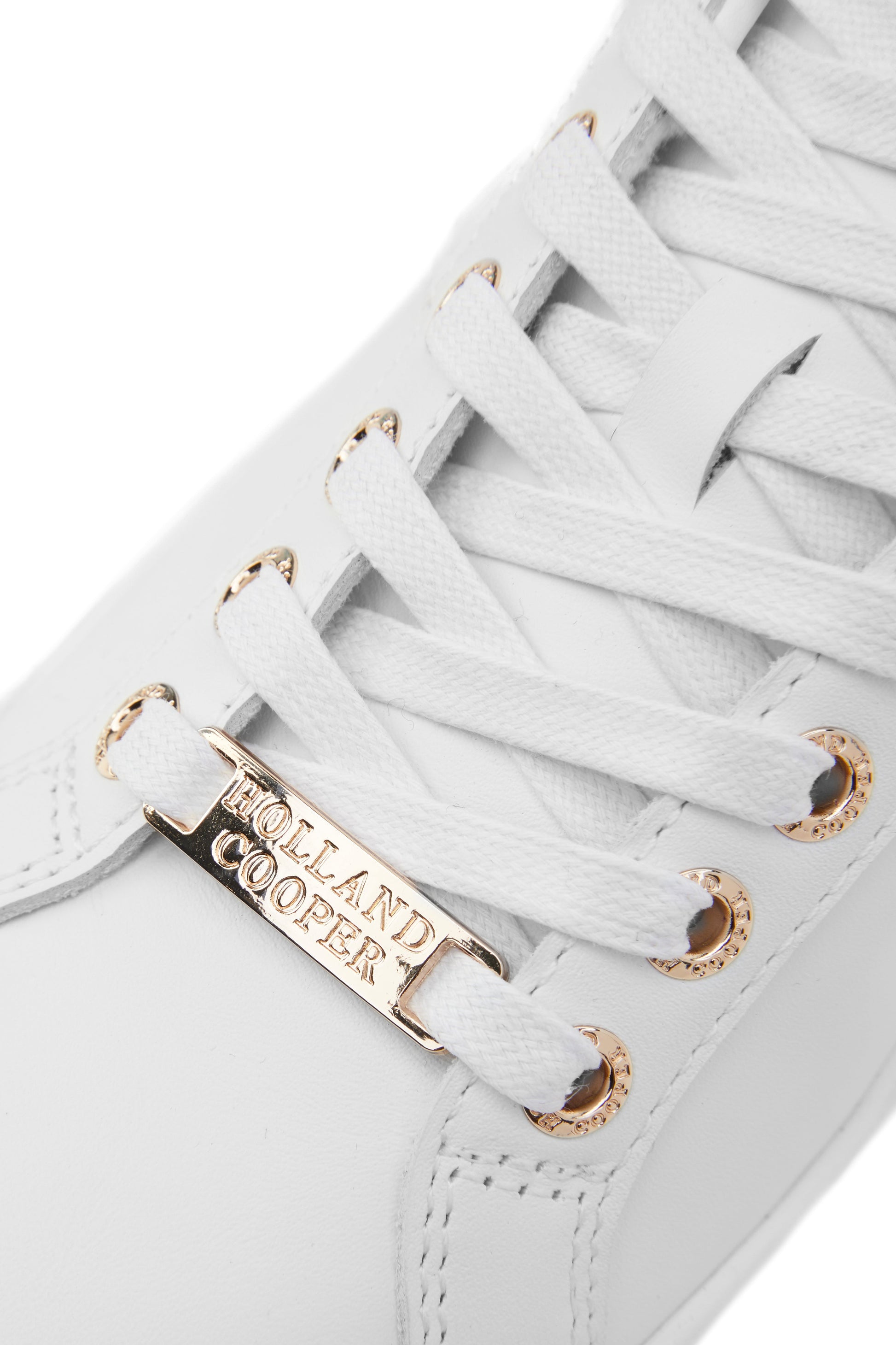 Inspired by traditional tennis shoes. these trainers have a cushioned footbed. made from super soft memory foam with arch support for maximum comfort. making them great for everyday wear. With soft white leather to the upper. the minimalist silhouette features a white panel across the side with Holland Cooper written in gold for a subtle stylish touch. Finished with our signature gold hardware and embossed with our iconic green HC to the rubber soles.