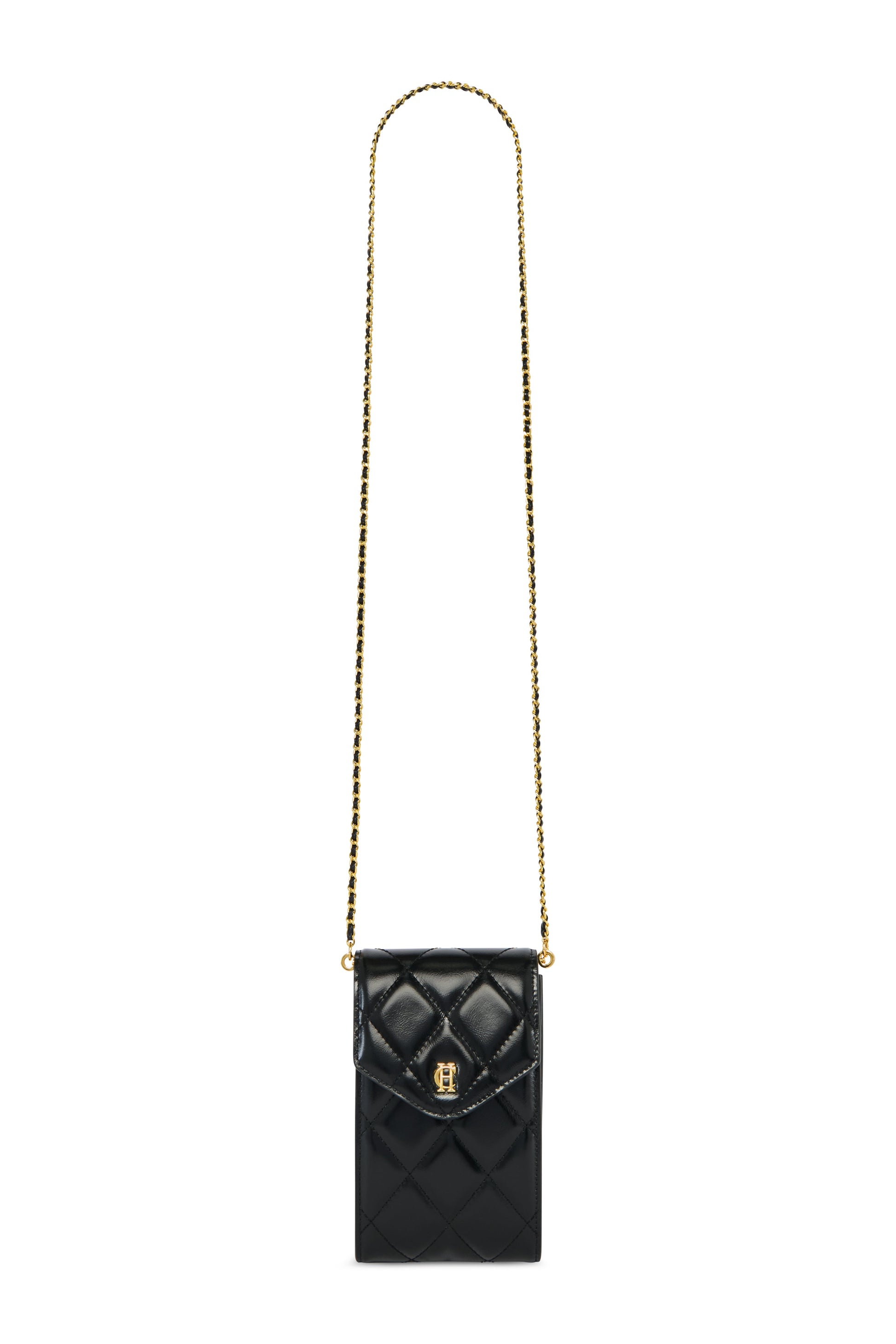 Knightsbridge Quilted Phone Pouch (Black Leather)