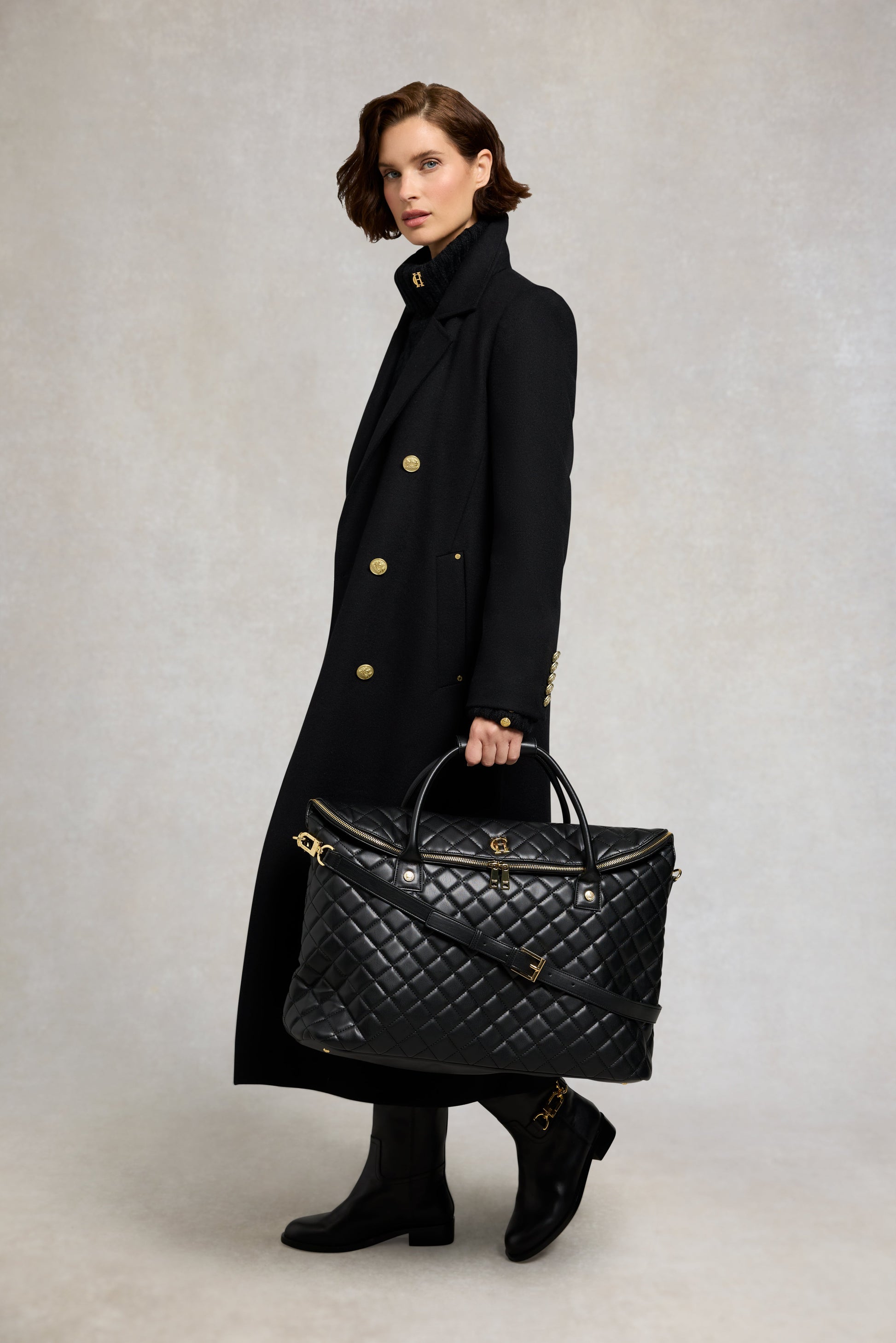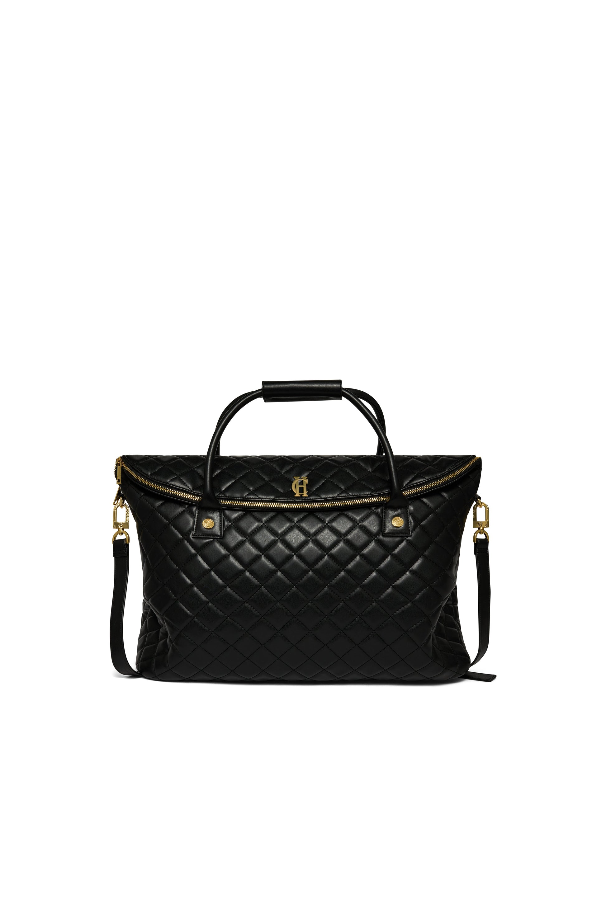 A brand-new addition to our accessories collection. the Knightsbridge Travel Bag is designed to combine luxury with practicality. Crafted from premium soft-touch PU with a large quilted design. it offers a sophisticated take on a travel essential. Finished with gold zips. branded zip pulls. and an HC front pin. it also features a detachable long strap for versatile carrying. Spacious yet refined. it's the perfect companion for weekends away or daily use.