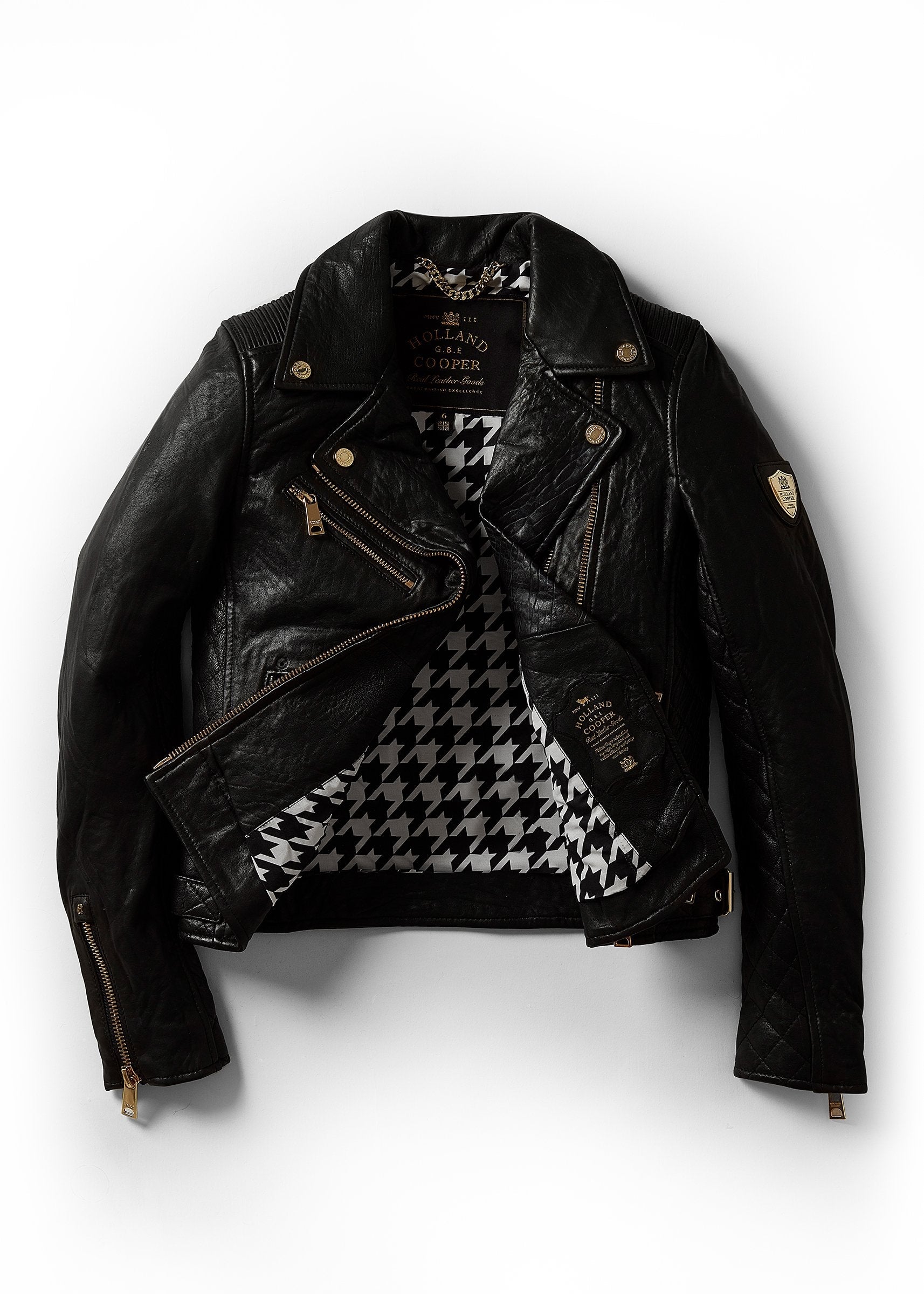 Our HC biker jacket is modelled after traditional biker styles. It has been designed for a close fit and made from the most luxurious buttersoft leather to ensure extra comfort when worn. Trimmed with opulent signature gold hardware and lined with a distinctive houndstooth print interior.