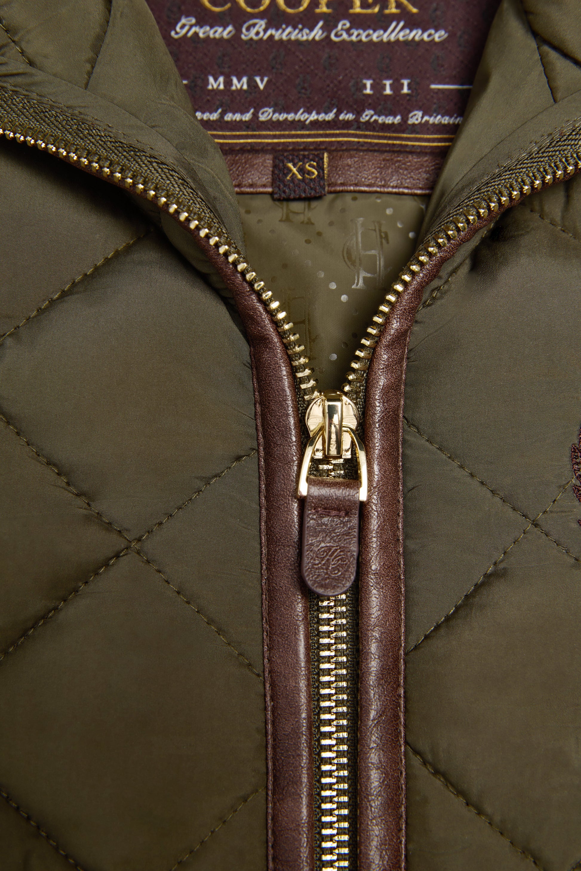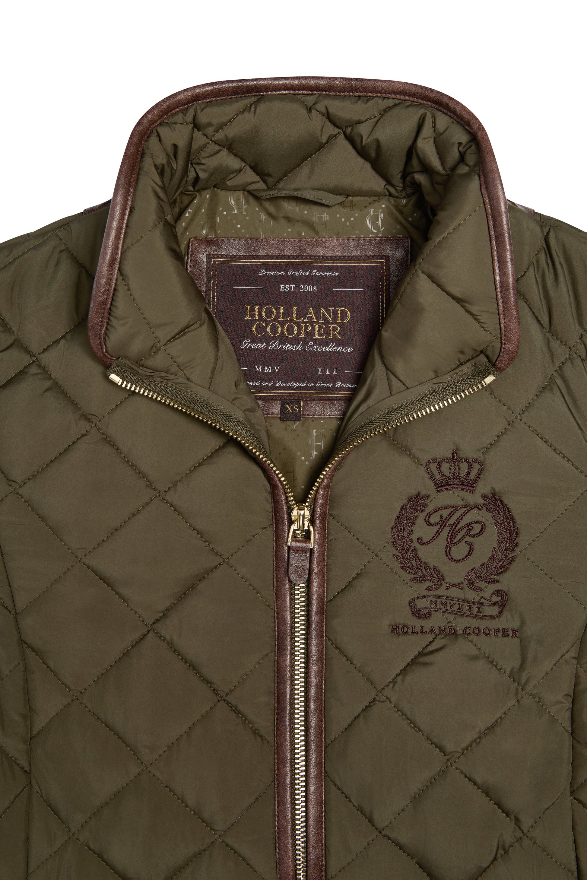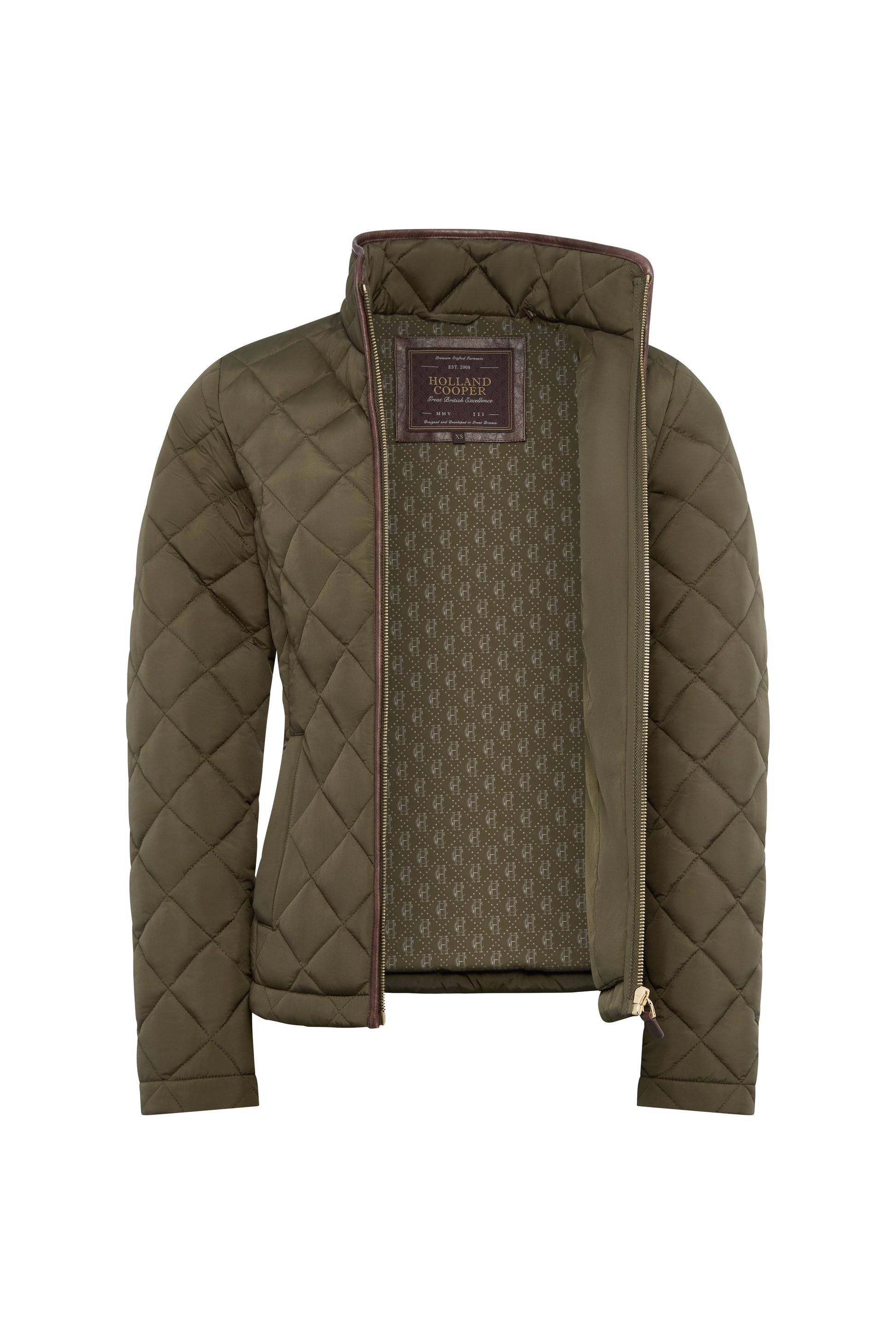 The latest evolution of our iconic diamond quilt series. the Lightweight Country Jacket blends heritage styling with a modern. refined silhouette. Cut to a slim fit. this versatile layer features classic diamond quilting through the body and sleeves. offering lightweight warmth without bulk. Faux leather binding along the front closure and collar edges adds a touch of luxury. while antique brass zips lend a timeless finish.