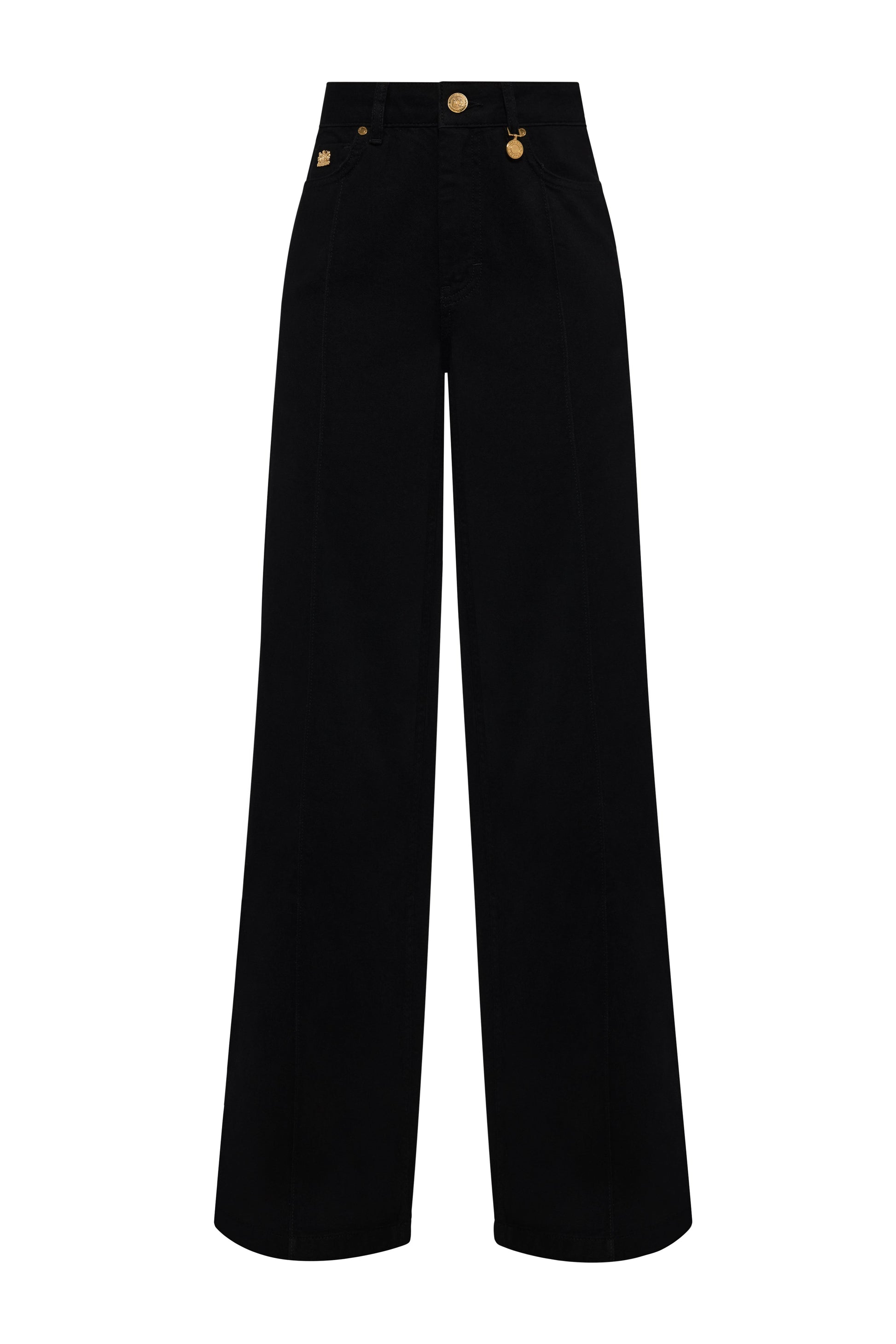 Effortlessly chic. the Lily Wide Leg Jean is designed to elevate your denim rotation. Cut with a high-rise waist for a flattering. elongating fit. it features a moderate wide leg that drapes beautifully from hip to hem. Classic five-pocket styling is updated with functional rear patch pockets. while a crisp pintuck down the center front of each leg adds a tailored finish. Signature gold metal hardware completes the look. lending a subtle touch of polish to this everyday essential.