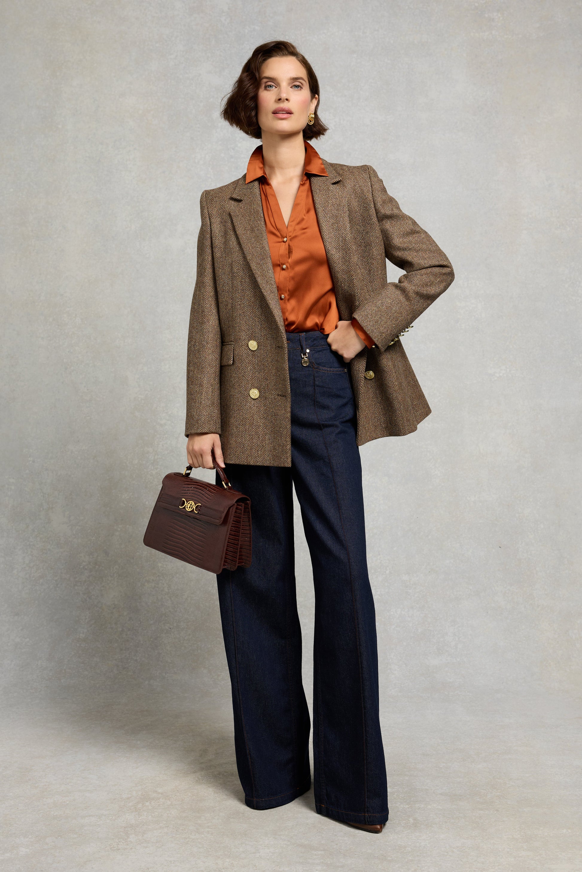 Effortlessly chic. the Lily Wide Leg Jean is designed to elevate your denim rotation. Cut with a high-rise waist for a flattering. elongating fit. it features a moderate wide leg that drapes beautifully from hip to hem. Classic five-pocket styling is updated with functional rear patch pockets. while a crisp pintuck down the center front of each leg adds a tailored finish. Signature gold metal hardware completes the look. lending a subtle touch of polish to this everyday essential.