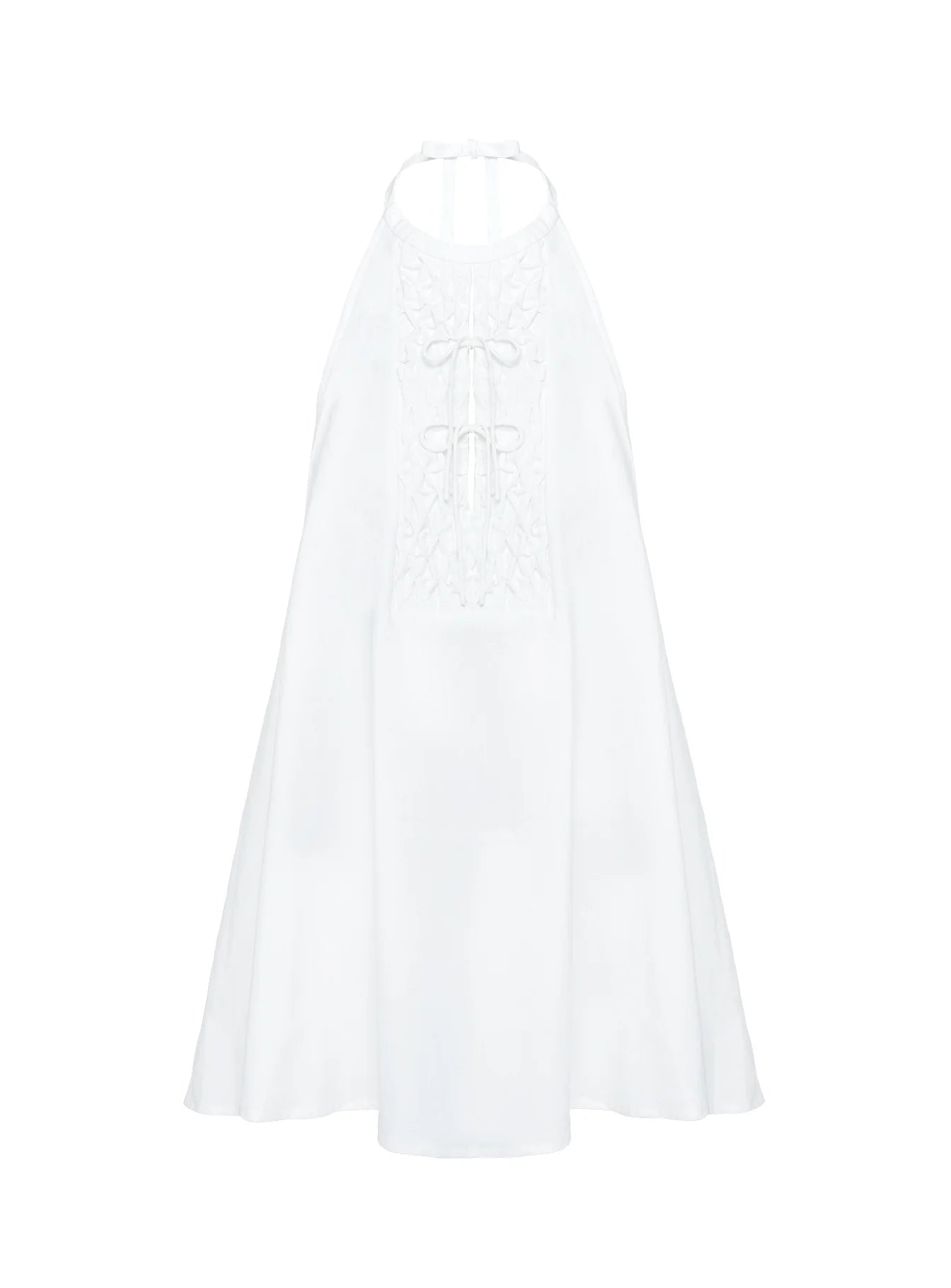 - Halter design with tie fastening at back. cut-out detailing with tie closure at front. open back with tie fastening. relaxed fitting