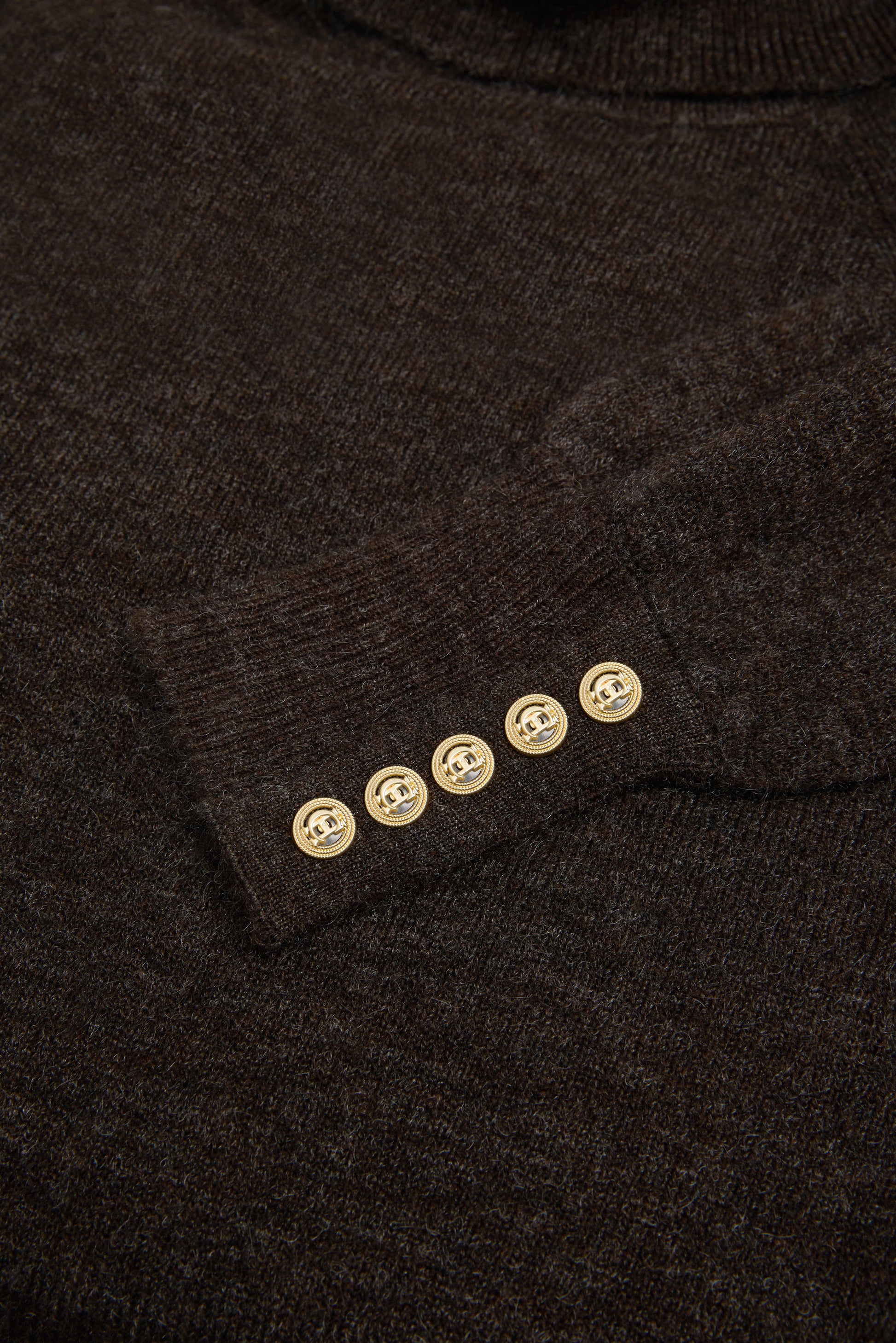 Crafted from a soft mohair blend. this lightweight yarn offers exceptional comfort and warmth. The design features elegant raglan full sleeves. providing a relaxed yet sophisticated silhouette. Enhanced with a gold HC detail on the roll neck and matte gold rivets on the cuffs. this knit combines effortless style with chic. understated elegance.
