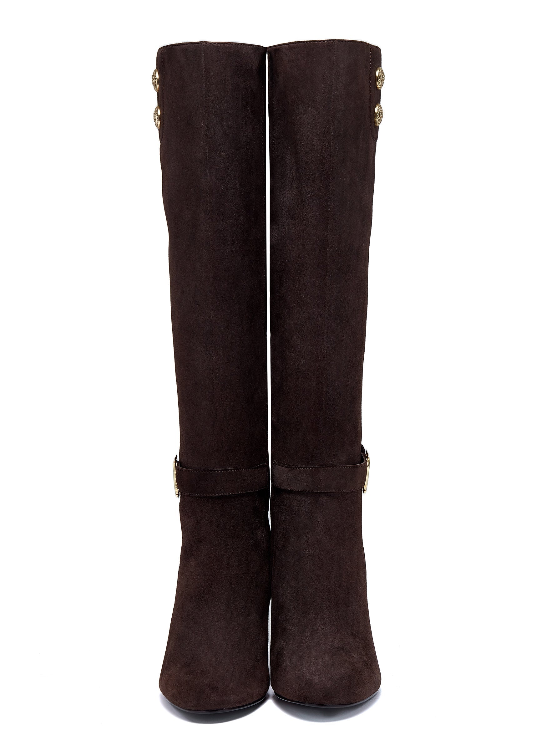 Designed to sit just below the knee. the Marlborough Knee Boots have been designed with a four inch heel. hugging silhouette and created from a super soft suede.