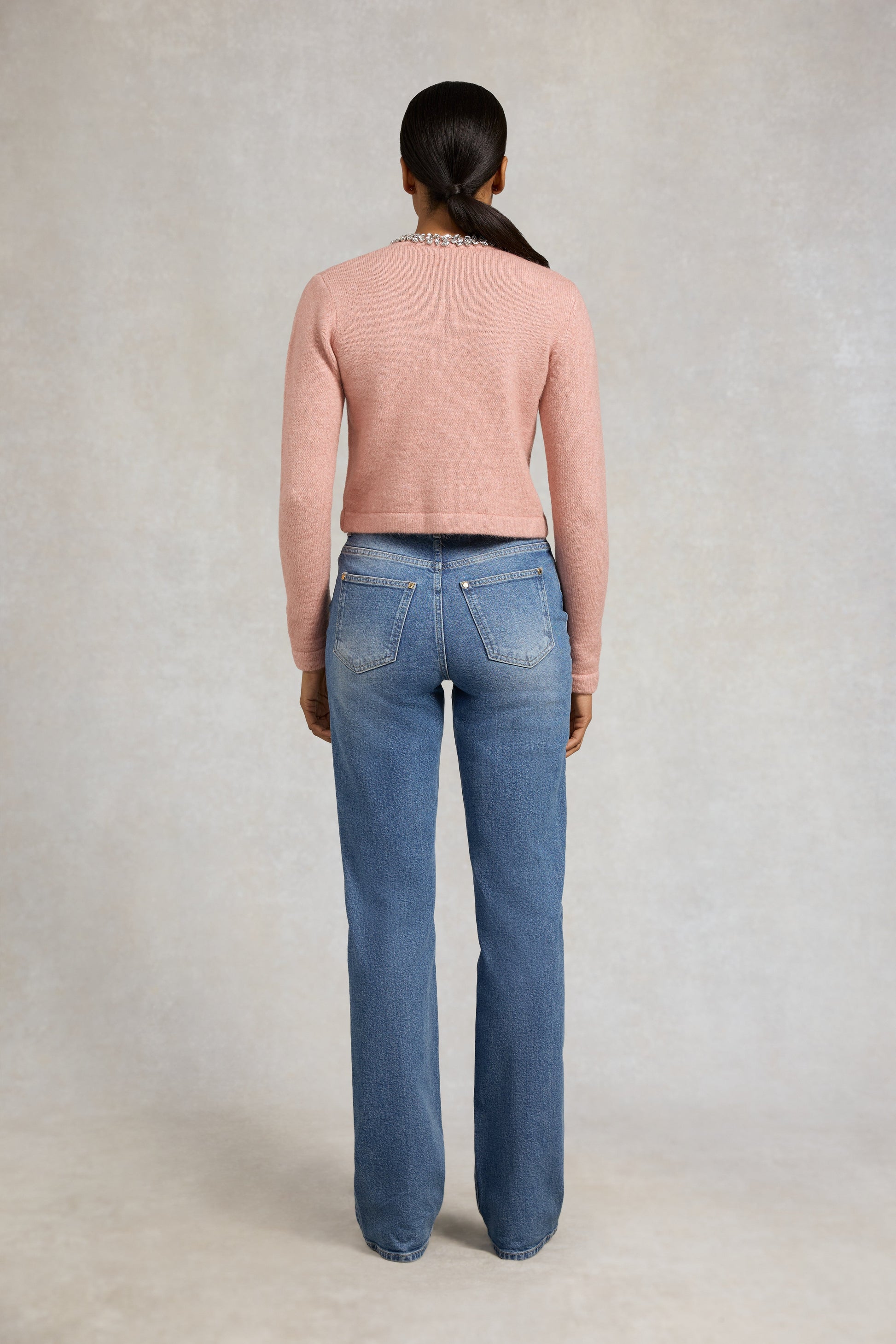 Relaxed through the body for effortless comfort. it features crystal embellishments along the neckline and delicate pearl buttons down the centre front. adding a touch of refined glamour. Perfect for layering or styling on its own. this cardigan brings a sophisticated sparkle to any outfit.