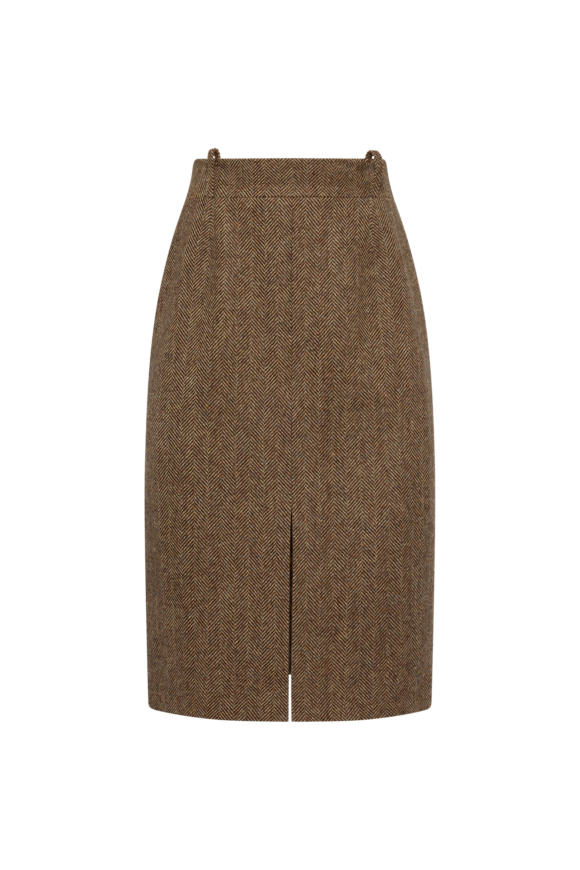 Mayfair Pencil Skirt (Large Scale Brown Herringbone)