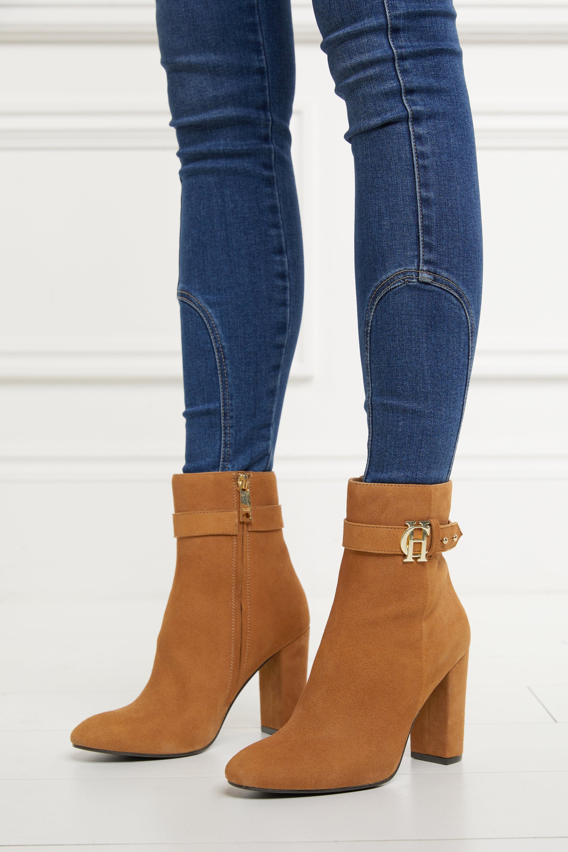 Designed with comfort and a classic style in mind. our Mayfair Suede Ankle boot is the perfect addition to your wardrobe this season. Detailed with an elegant classic HC buckle and HC's iconic racing green sole. this style provides the ultimate day to night look due to the ultra-comfy block heel which elongates and flatters the leg.