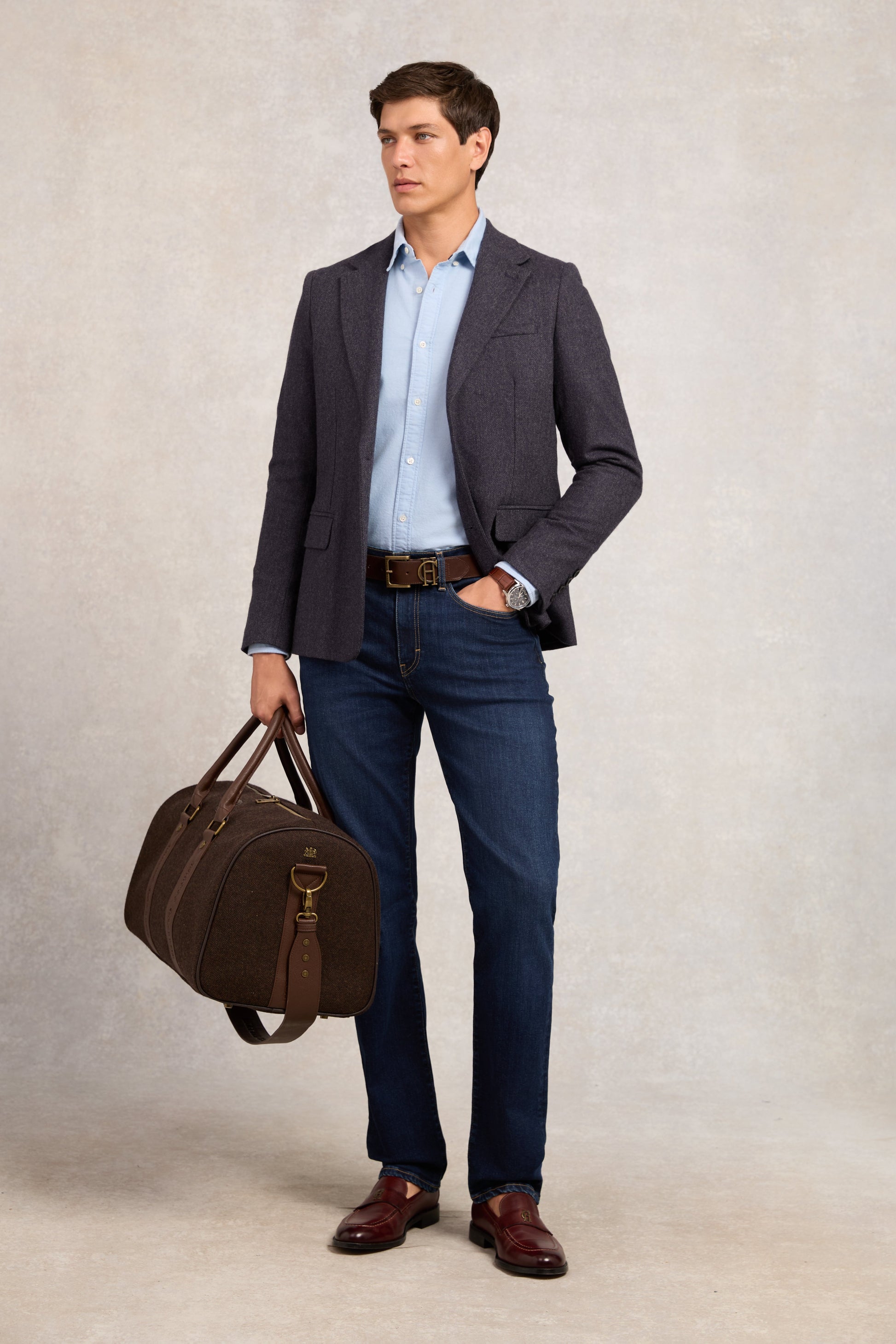 A timeless staple with enduring appeal. the Men's Oxford Shirt has been expertly crafted for both smart and casual styling. Featuring a classic button-down collar and traditional button-through front. this shirt is finished with contrast HC embroidery to the chest and signature Holland Cooper branded buttons for a refined touch.