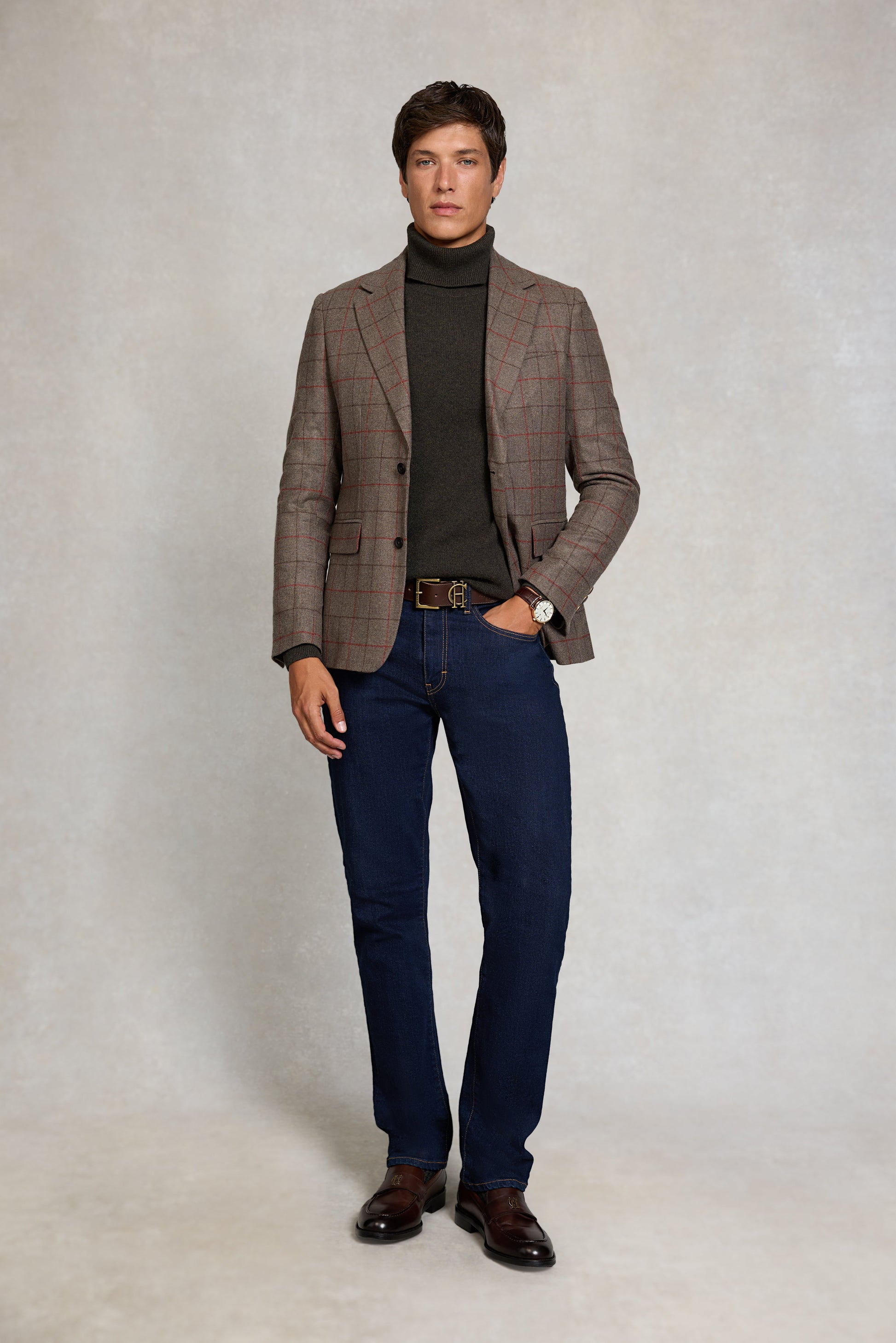 Designed with a single-breasted silhouette and lightly padded shoulder construction. this Single Breasted Blazer showcases a preppy style with a modern elevation. Drawing inspiration from our British heritage. each blazer has been carefully crafted in our UK mills from the finest of Scottish tweeds. With classic notch lapels and neat horn buttons to fasten. the contrasting under collar makes for a contemporary twist. Elegantly lined with a luxurious satin twill with double welt pocket detailing. Finished with traditional Holland Cooper detailing. braided lapels and practical chain hanger loop.