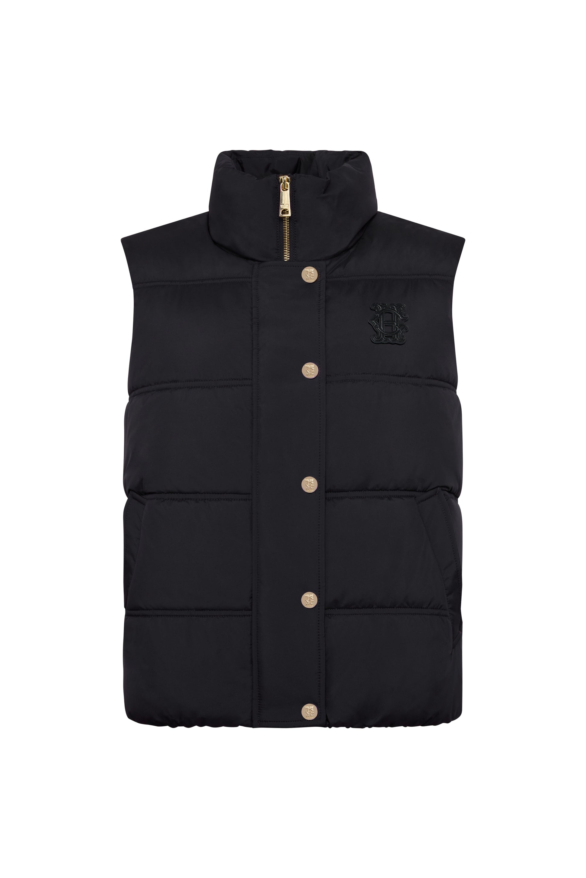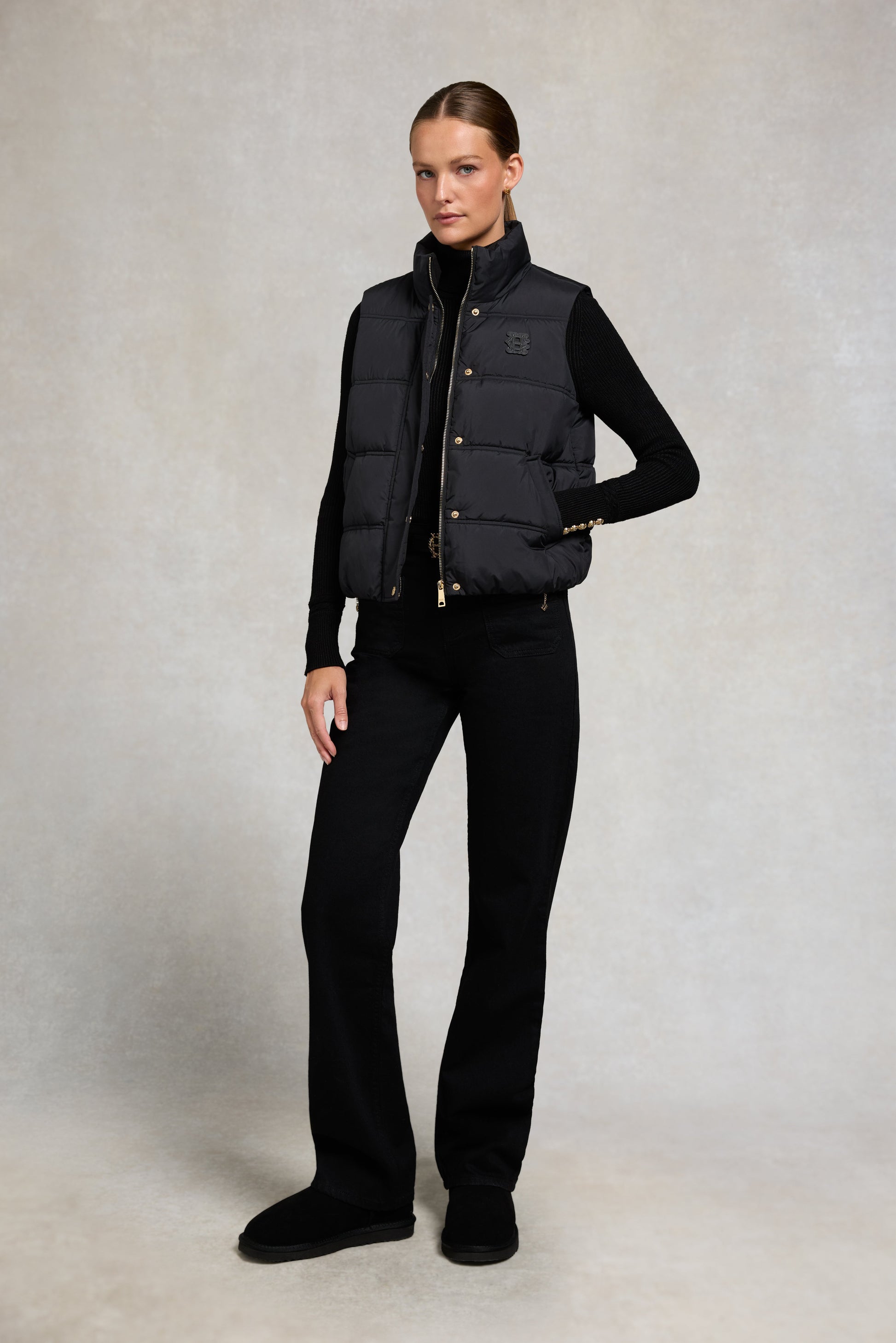 A true wardrobe essential. the Milton Padded Gilet brings simple country styling with modern practicality. Designed with double-stitched baffles for warmth. it features quarter-top patch pockets. a snap-down front placket. and subtle elastication at the hem and cuffs for a comfortable fit. Finished with our new faux leather applique badge to the chest. this versatile layer is perfect for transitional dressing. whether styled over knitwear or layered beneath a coat.