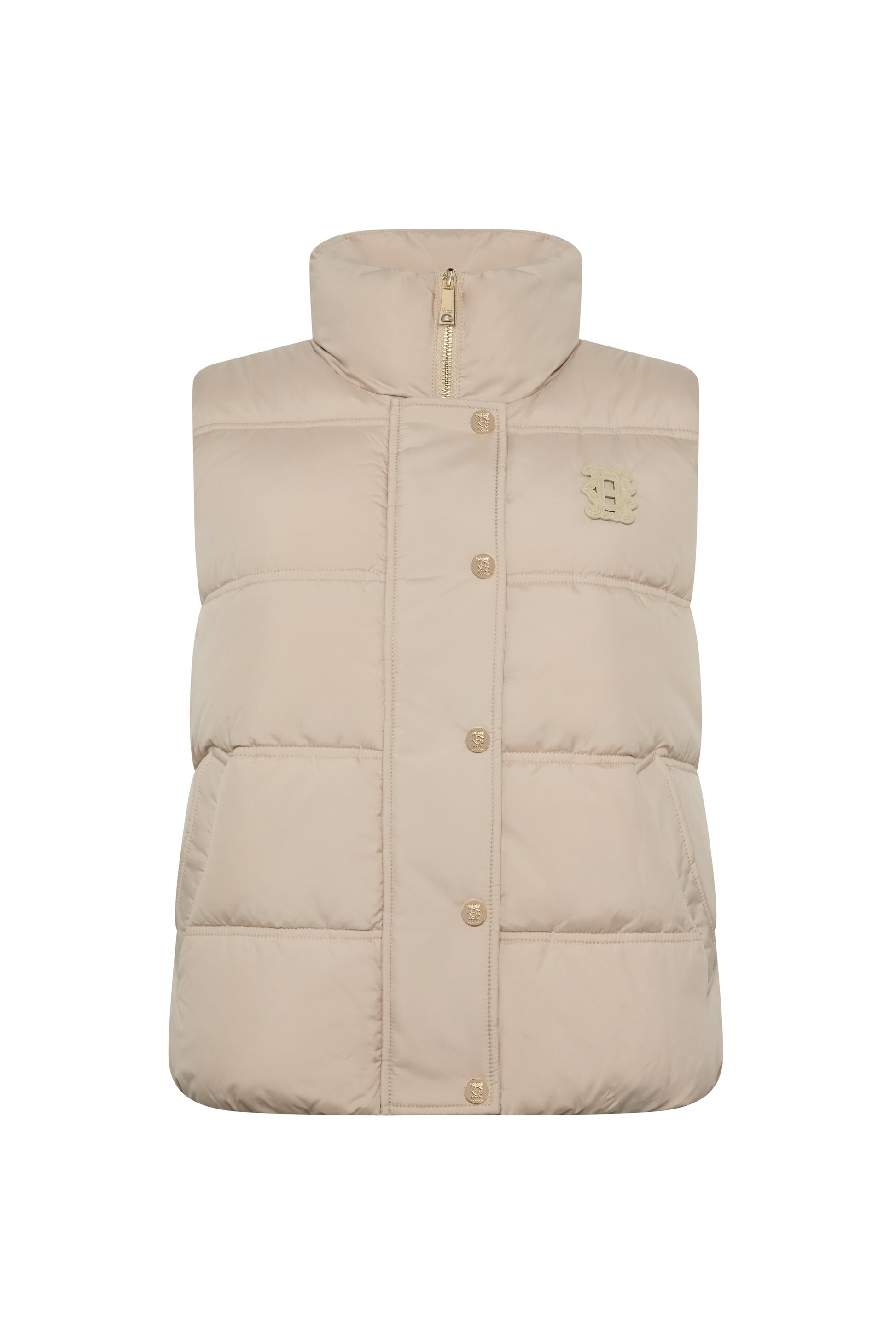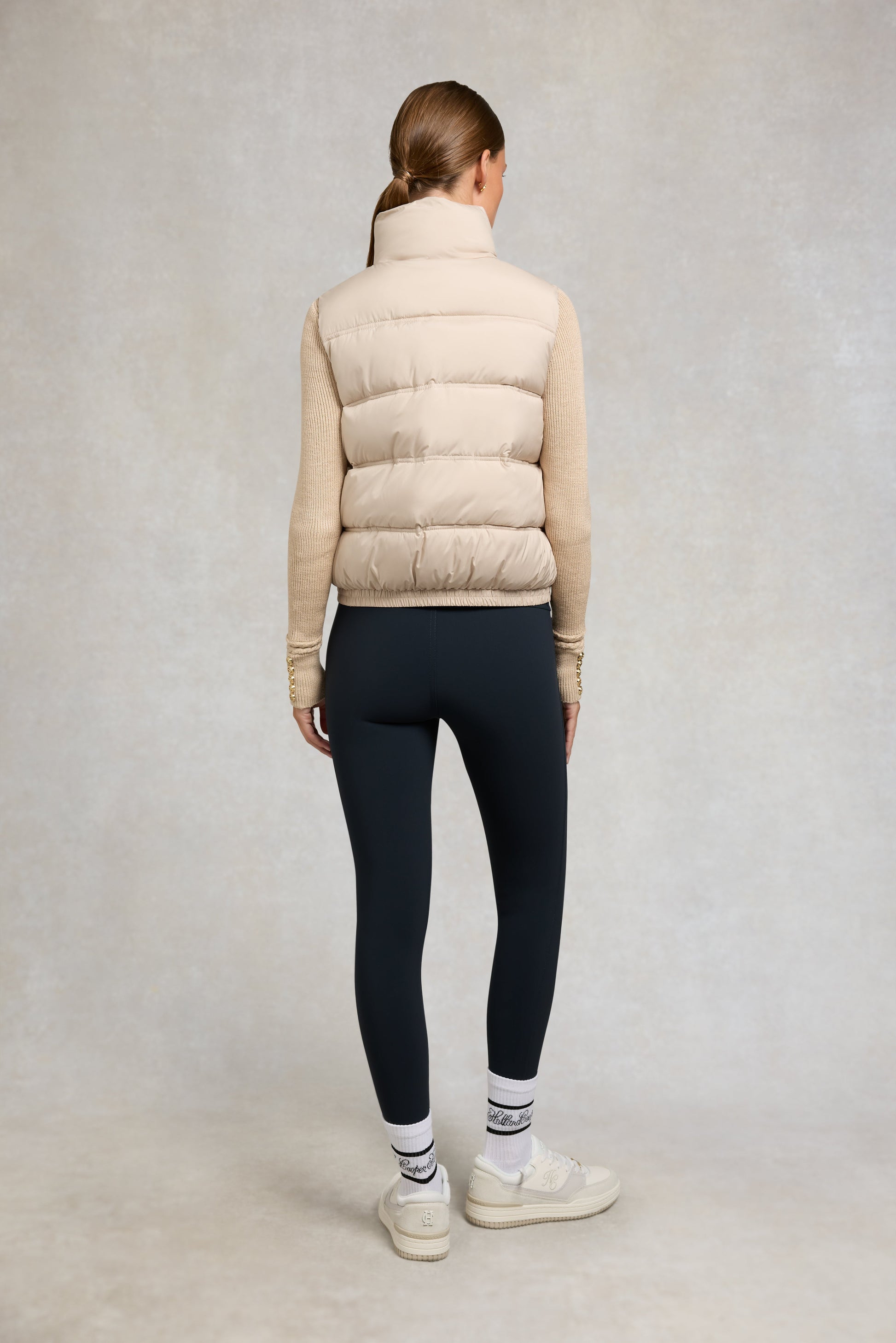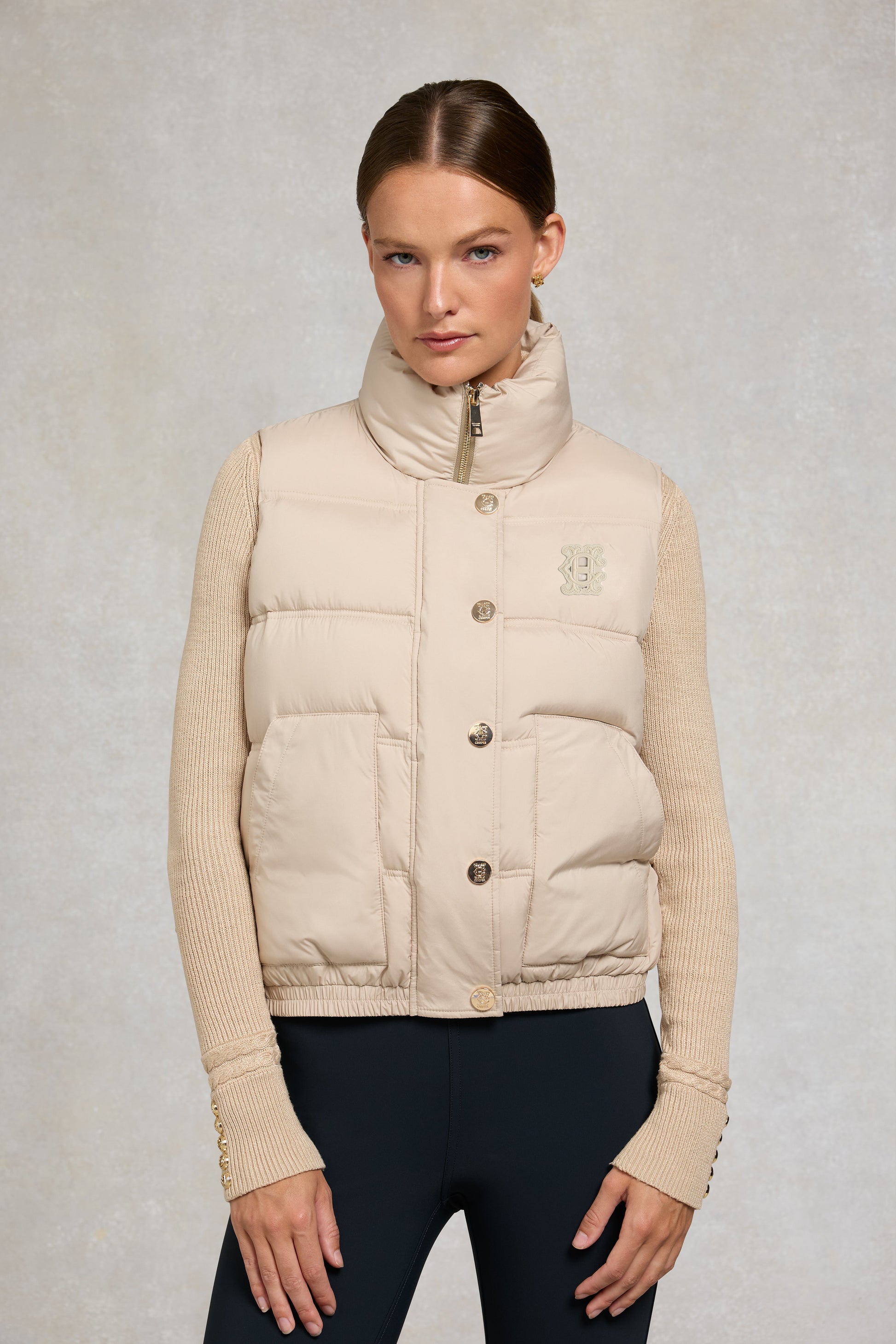 A true wardrobe essential. the Milton Padded Gilet brings simple country styling with modern practicality. Designed with double-stitched baffles for warmth. it features quarter-top patch pockets. a snap-down front placket. and subtle elastication at the hem and cuffs for a comfortable fit. Finished with our new faux leather applique badge to the chest. this versatile layer is perfect for transitional dressing. whether styled over knitwear or layered beneath a coat.