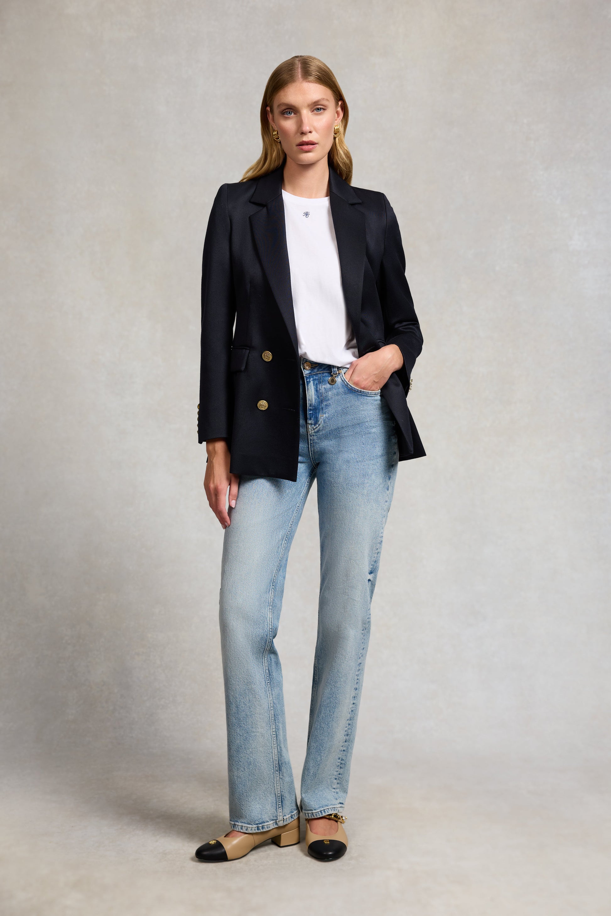 This wardrobe classic is made from 100% cotton and is beautifully soft. It has a simple crew neck and relaxed fit making it a great versatile piece. Detailed with HC embroidery on the neckline.