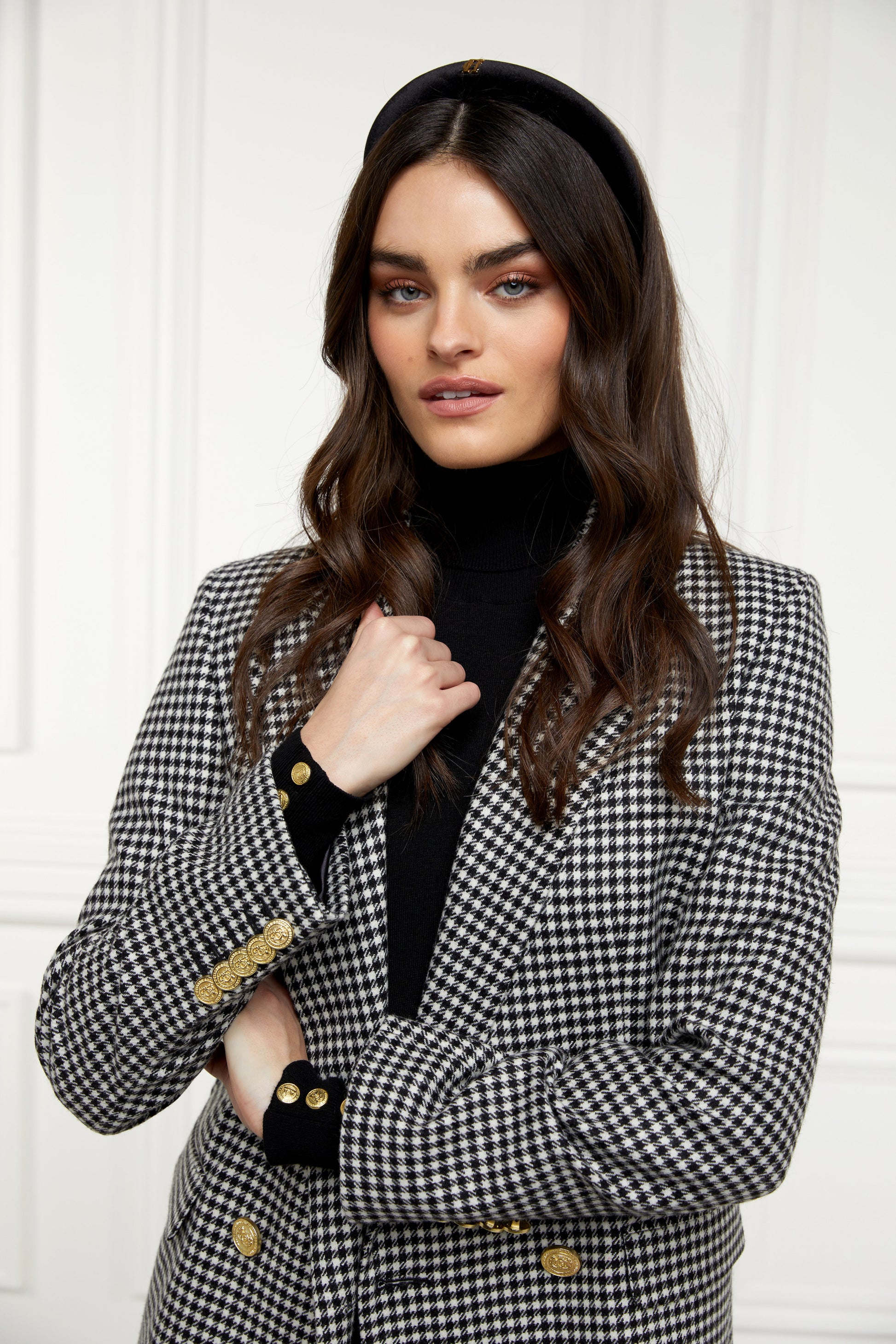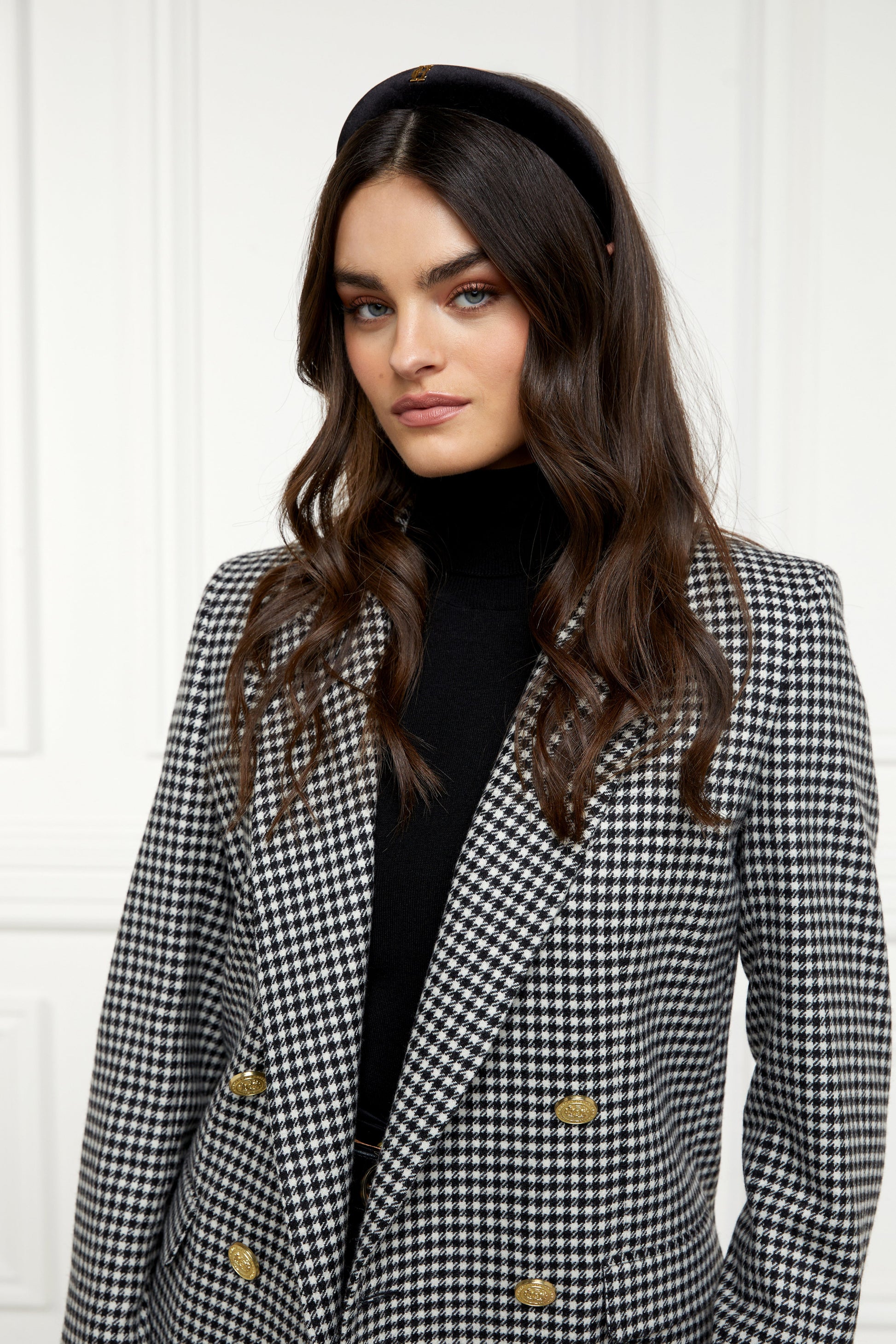 This refined and modern headband has been designed with a minimalist aesthetic. Crafted from a timeless velvet fabric with a padded composition. the gold HC makes for a statement and iconic wear.