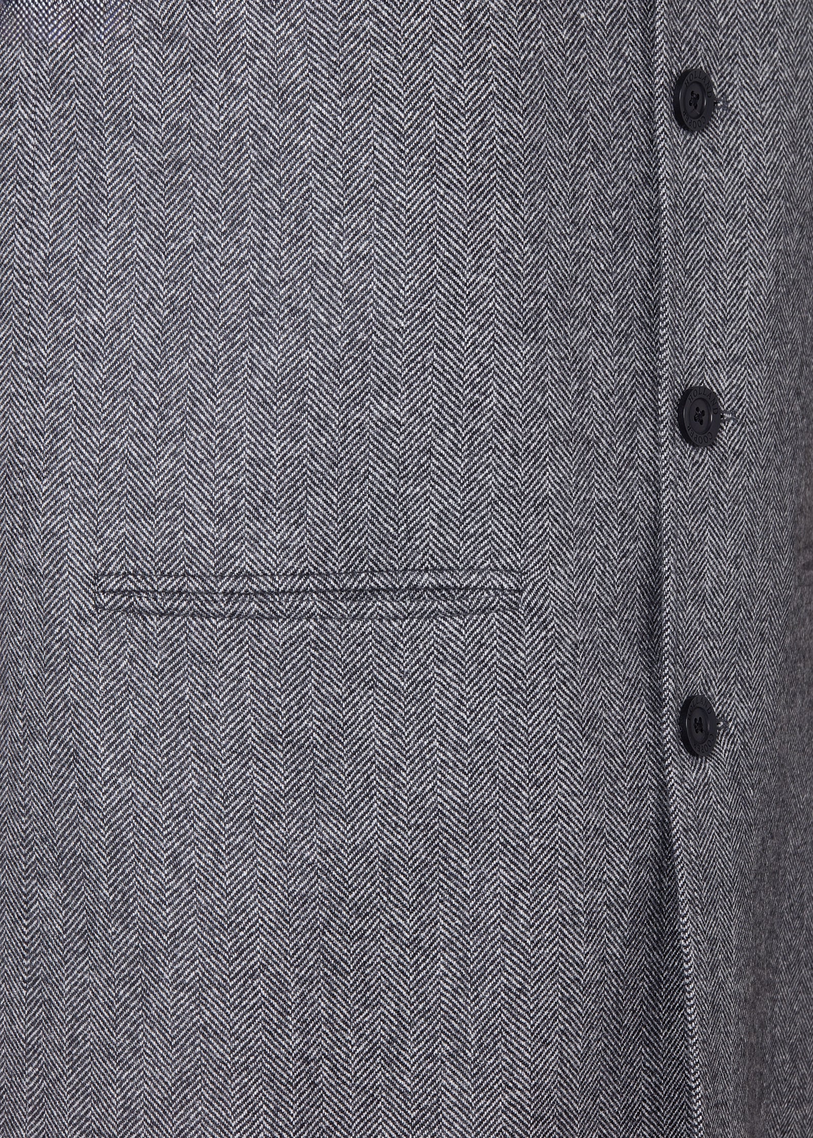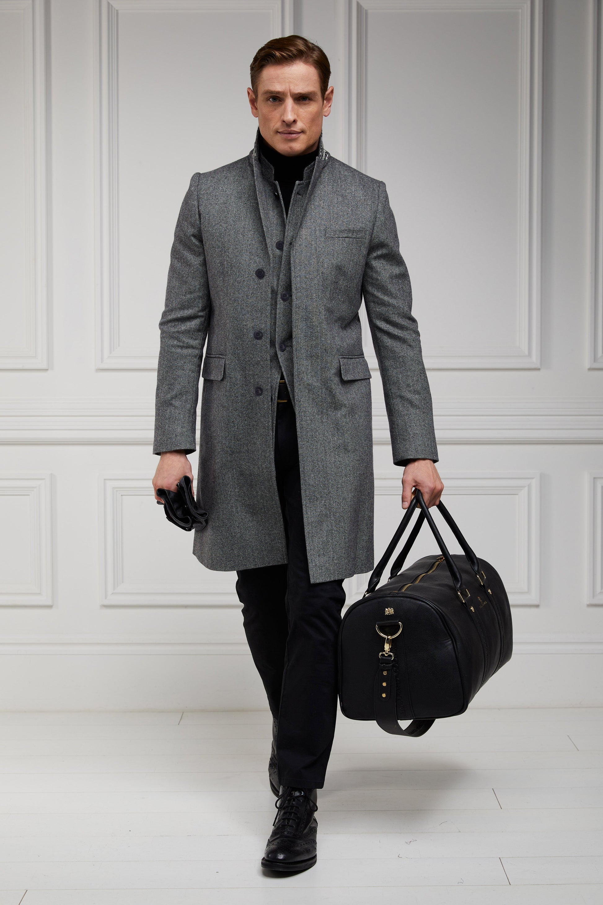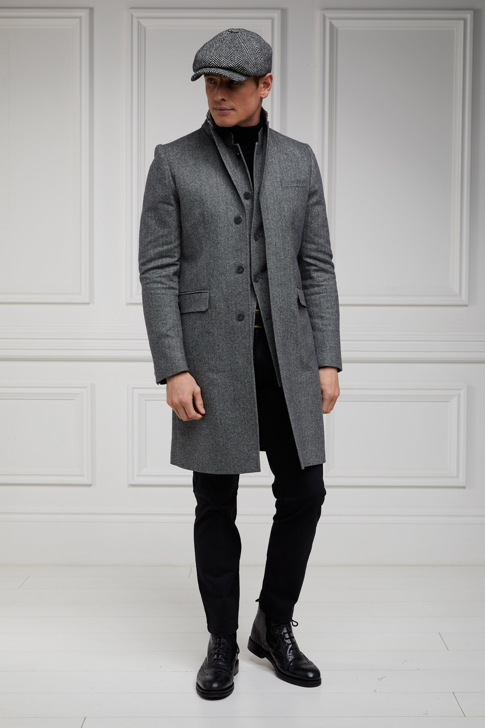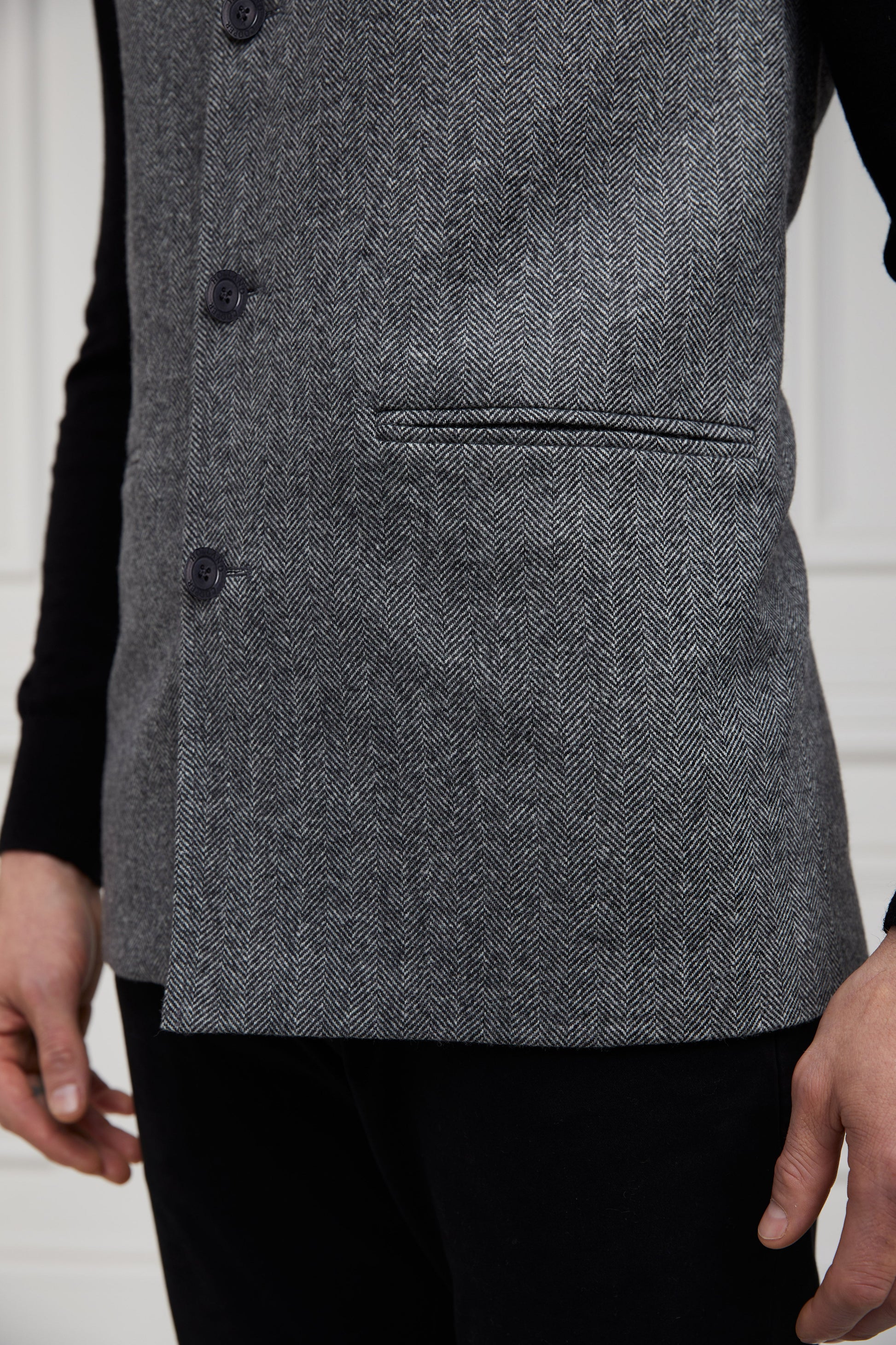 Neatly cut with a classic fit. this timeless waistcoat has been handcrafted to perfection in the UK from Scottish heritage wools. With a traditional nehru stand collar. this waistcoat will effortlessly elevate your country wardrobe. Specifically designed to allow for the front pocket to showcase a pocket flap or tuck away to reveal a double welt pocket. you can style this piece to perfection. Detailed with a satin twill lining with an interior ticket pocket and finished with our classic chain hanger loop.