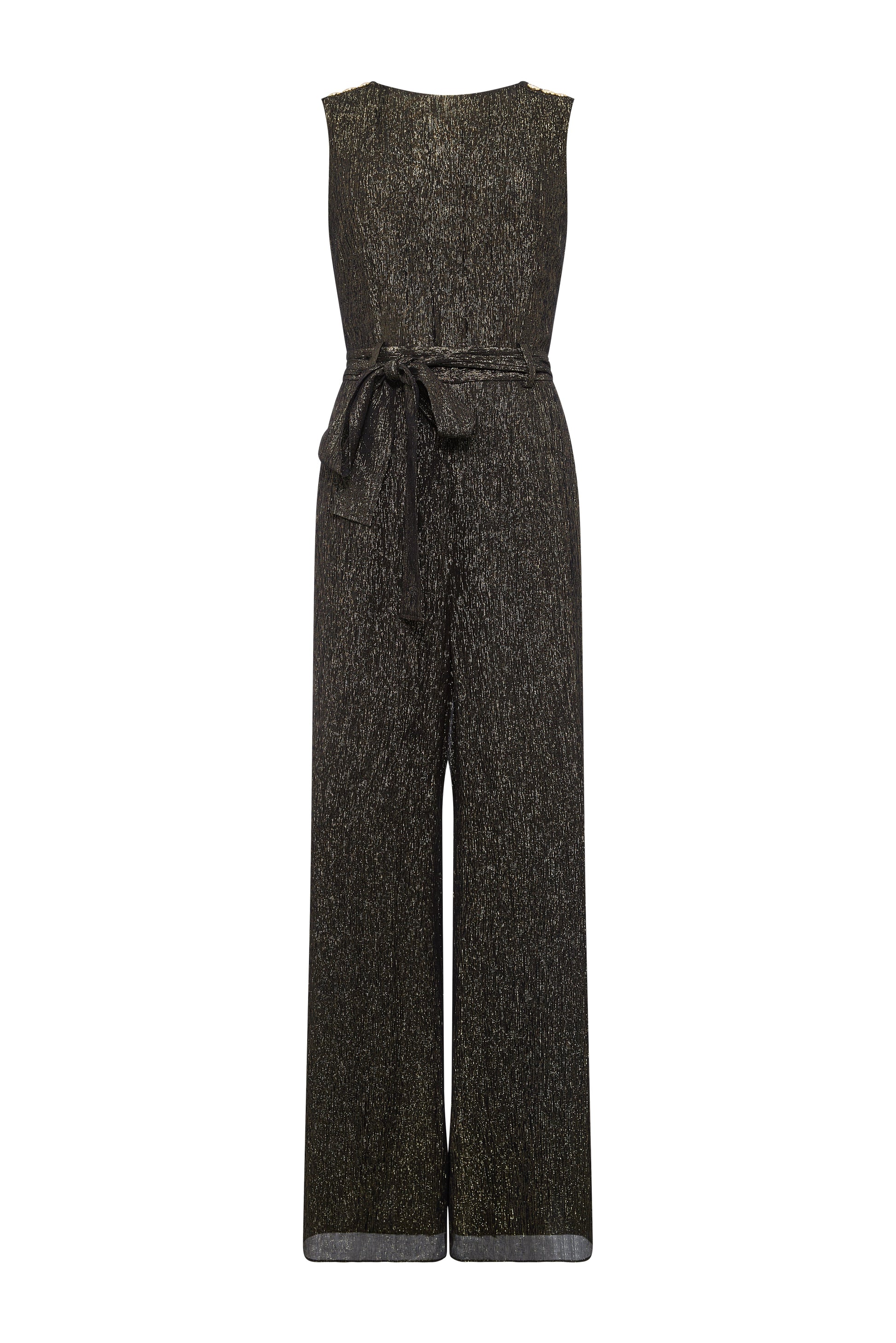 Elegant and contemporary. the Nicole Jumpsuit is designed to make an effortless statement. Featuring a sleek high neckline and wide-leg silhouette. this sleeveless style flatters the figure with its tailored pleat detailing and sewn-in waistband. complete with a tie belt finished with HC monogram embroidery. Side entry pockets add a touch of practicality. while signature gold rivets at the shoulders and a branded zip pull to the back elevate the look.