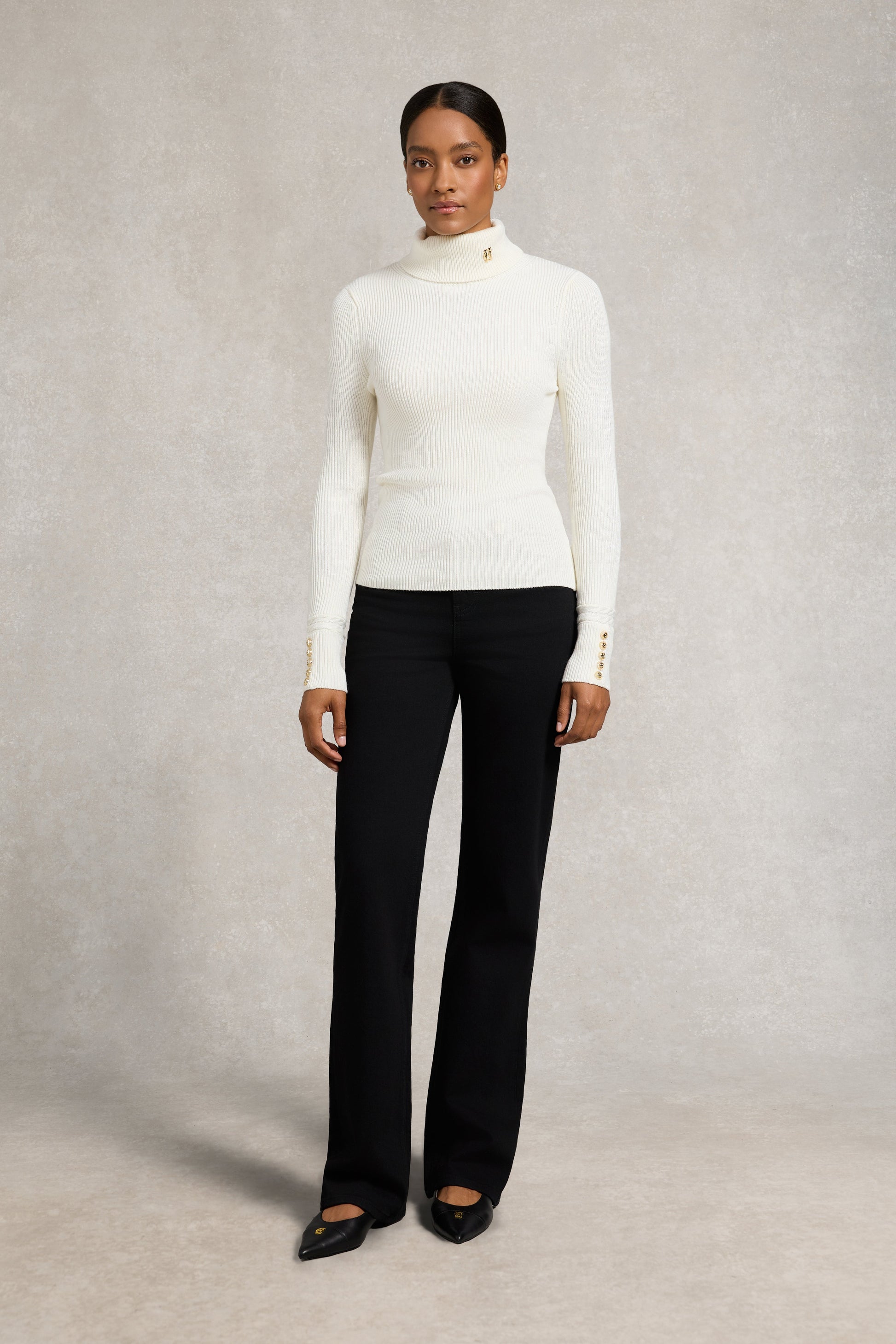 A classic roll neck knit that you will be reaching for in years to come. Crafted in a super soft light weight yarn. this knit was made with comfort and wearability in mind. This jumper is the perfect everyday piece with a relaxed fit and light ribbing to the body. Featuring our iconic gold HC rivets to the cuff as well as our subtle HC on the collar.