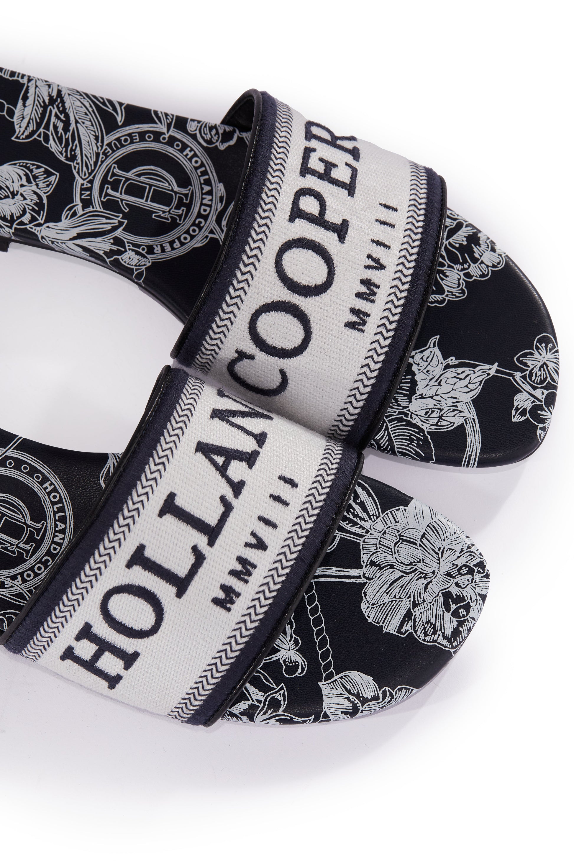 Meticulously crafted with a refined jacquard logo strap. these slides embody sophisticated comfort for the discerning individual. The fully woven and embroidered front strap showcases our heritage emblem with understated elegance. A cushioned footbed provides day-long comfort. while the durable outsole ensures lasting wear. Perfect for both poolside refinement and casual moments. these slides deliver timeless style with modern comfort.