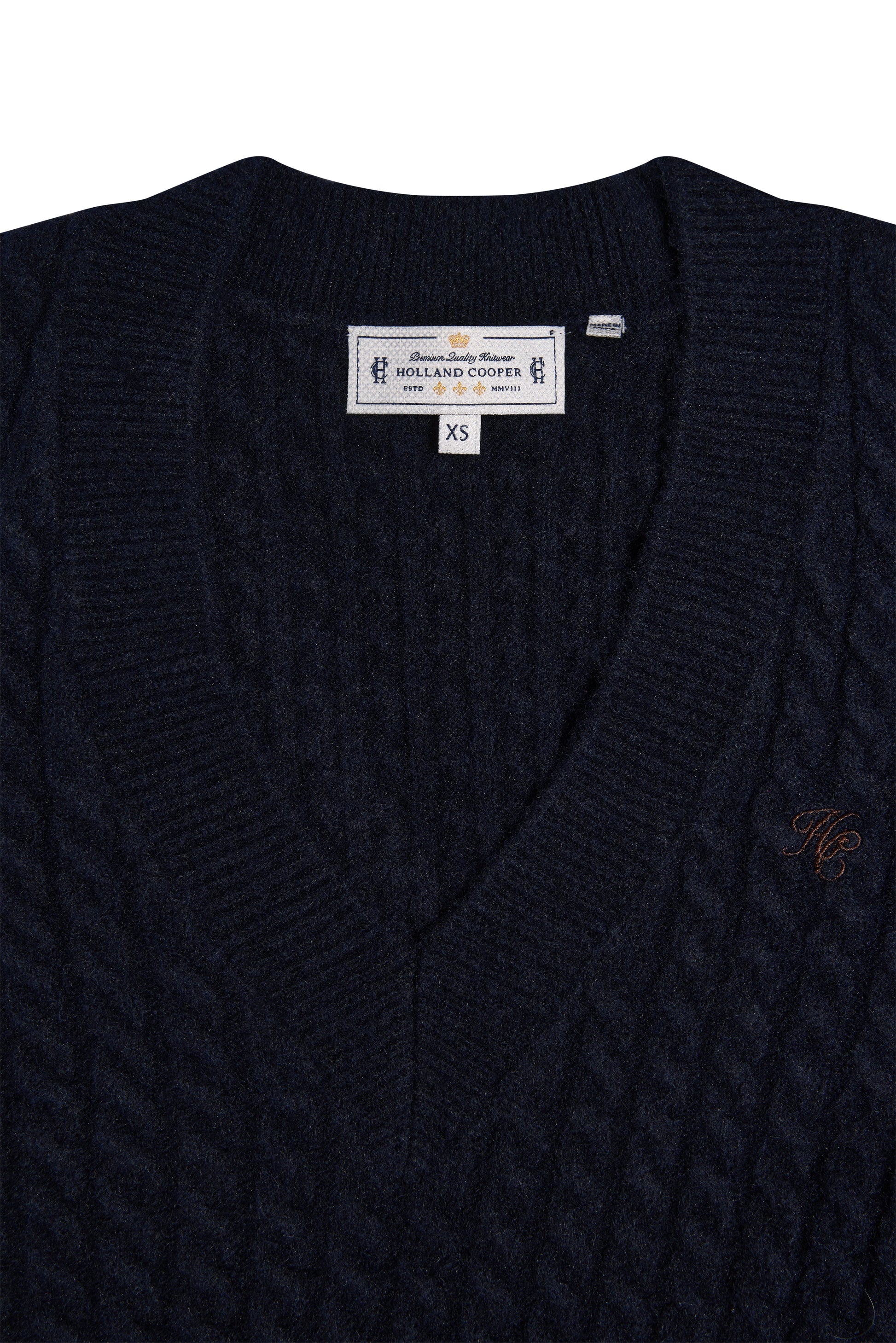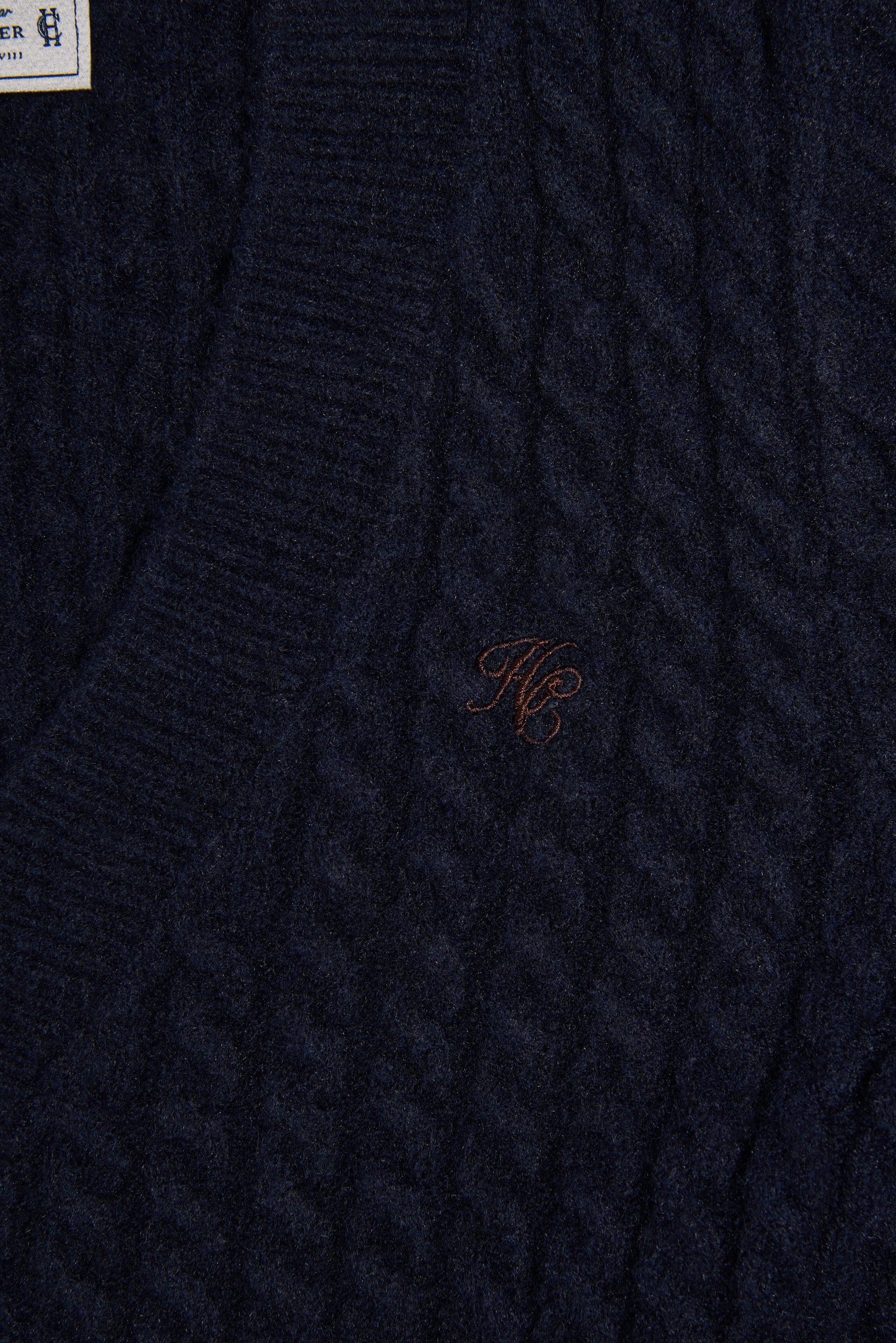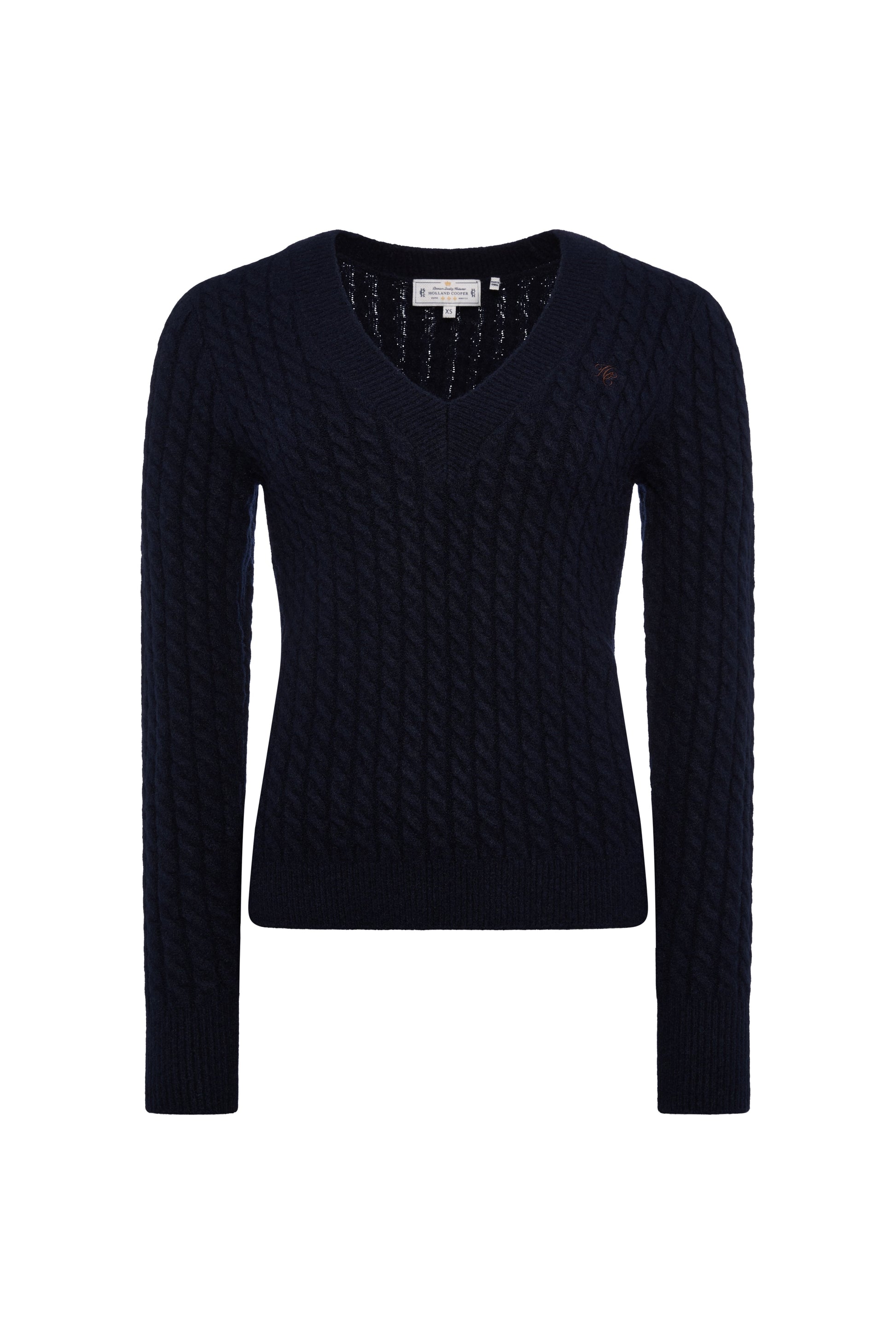The Polly Knit combines comfort and sophistication with a relaxed fit and slim. set-in sleeves. The V-neck cable knit design is elevated with a contrast embroidered HC logo at the chest. adding a signature touch. A true wardrobe essential. it's perfect for any occasion. whether layered or worn on its own.
