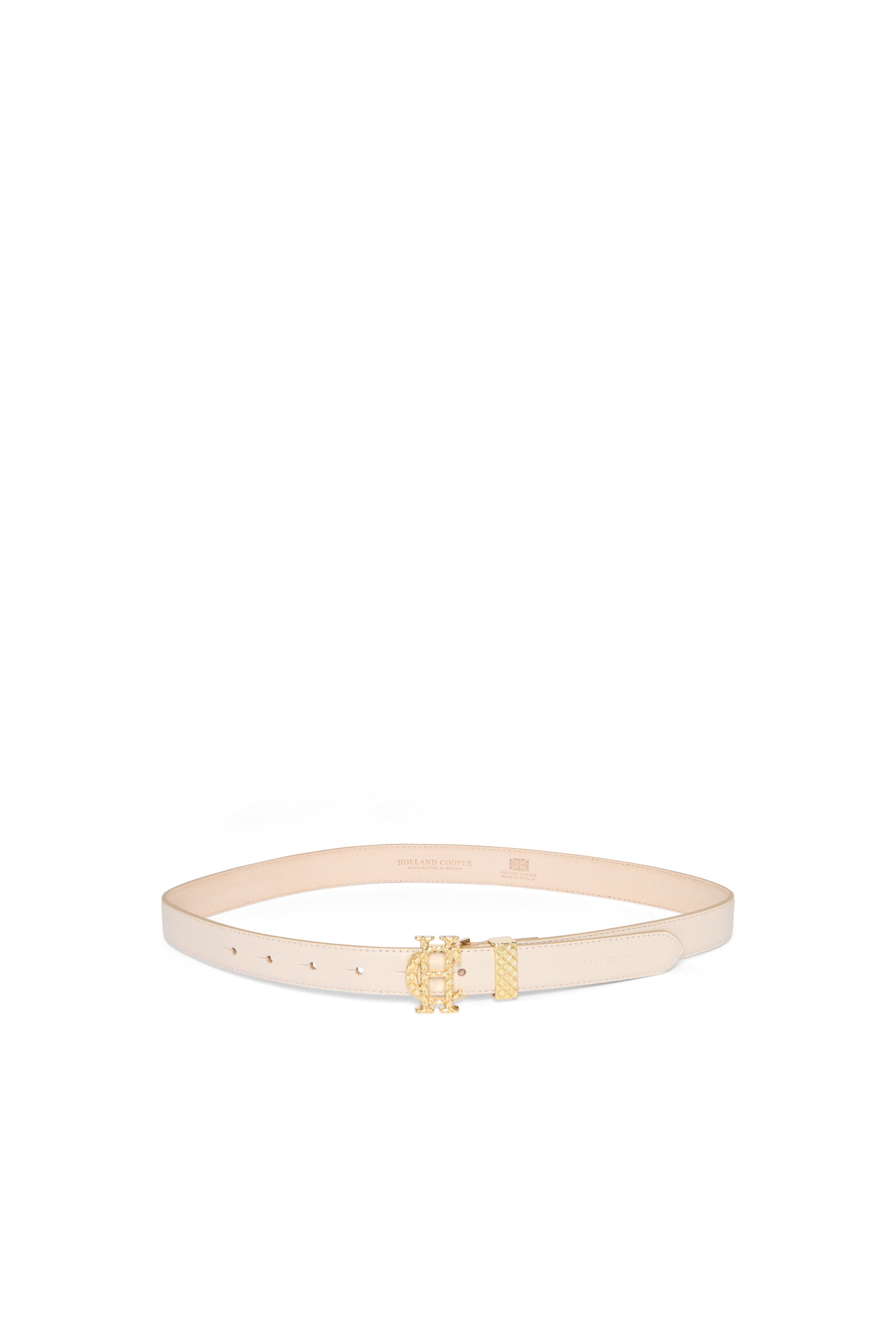 Elevate your accessories collection with the Quilted Slim Belt. designed to bring a refined. vintage-inspired edge to any look. Crafted from premium smooth cow leather. the belt is finished with a brand-new quilted HC buckle and matching keeper in our classic gold tone. Subtle yet statement-making. this slim belt adds a polished finish to everything from denim to tailoring.