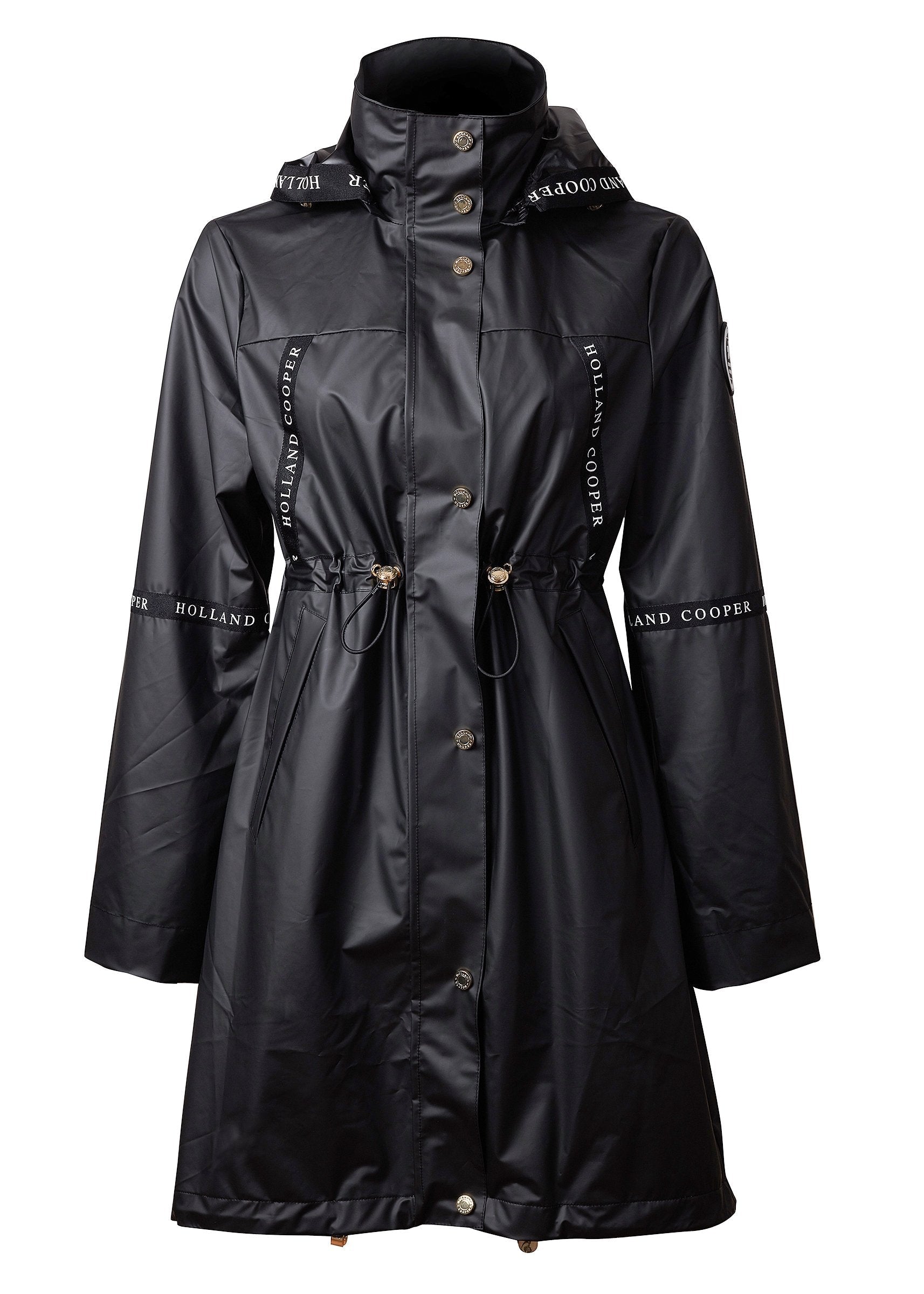 Ideal for transitional showery days whether spending at the stables or simply going for a walk in the countryside. our Showerproof Rain Coat is this seasons must have. Created from a lightweight fabric with a longer length design. the waist drawcord makes for a flattering fit. With a detachable hood and neoprene storm cuffs for practicality. the metal hardware and silicone badges add a touch of luxury to this piece.