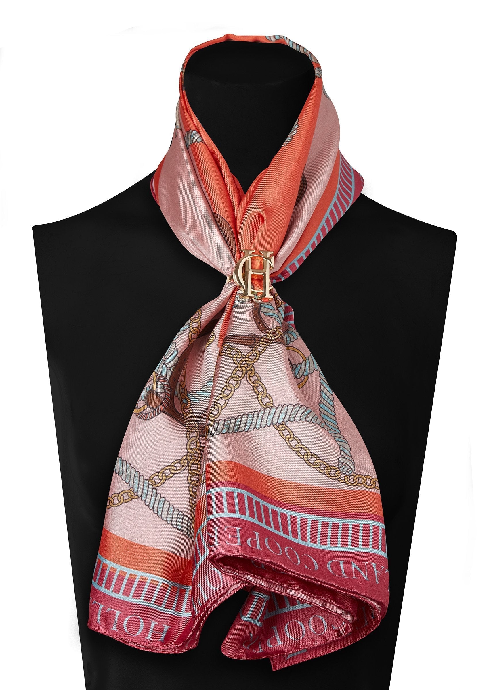 Each silk scarf is brightly decorated with HC signature artwork from our archive. hand rolled and made in England using the finest pure silk. It is made from the finest silk that has a flowing. lightweight handle. meaning it can be knotted and styled however you like. When you're not wearing it around your neck. why not tie it onto the handle of a tote or as a belt for your jeans or trousers.