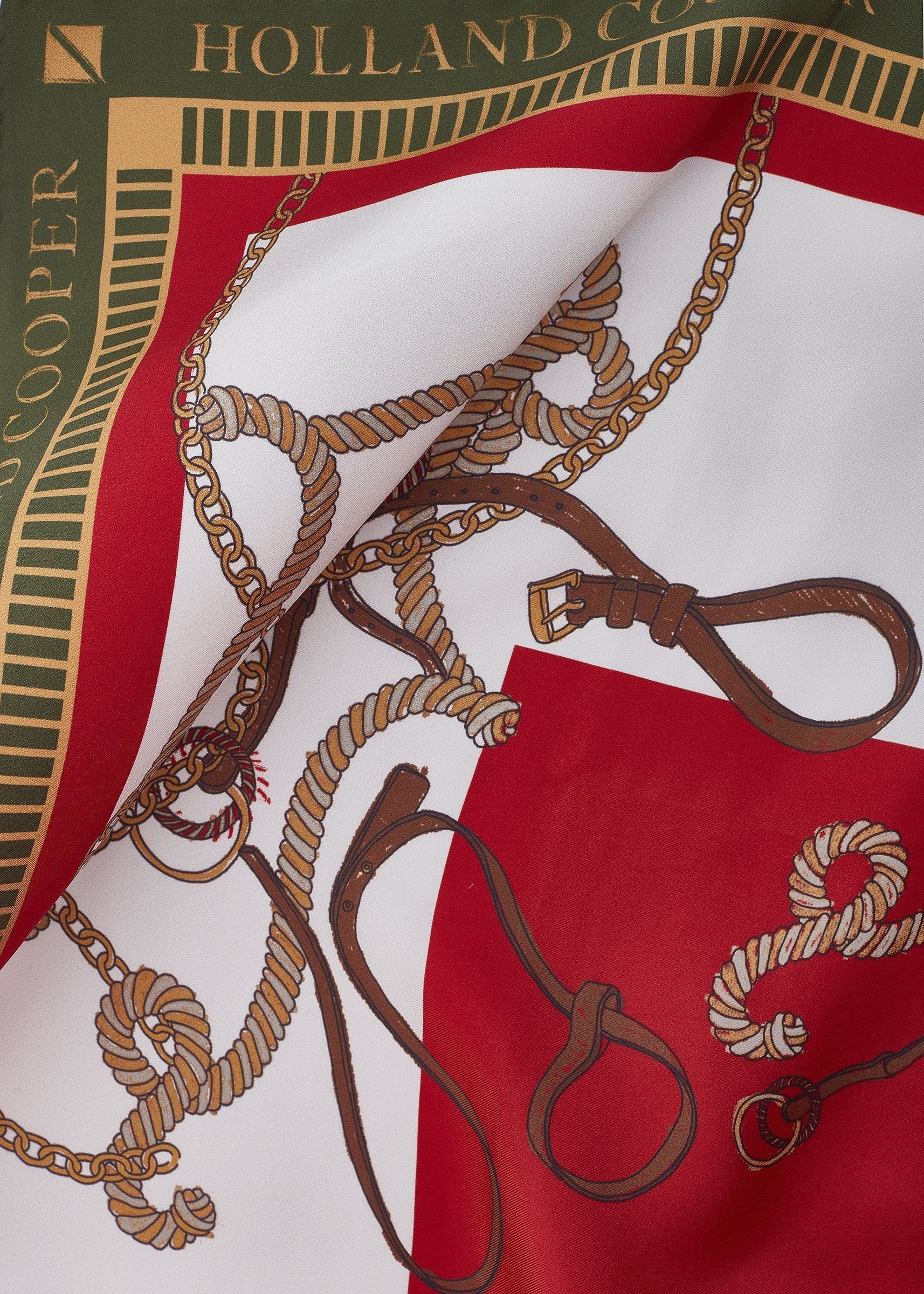 Each silk scarf is brightly decorated with HC signature artwork from our archive. hand rolled and made in England using the finest pure silk. It is made from the finest silk that has a flowing. lightweight handle. meaning it can be knotted and styled however you like. When you're not wearing it around your neck. why not tie it onto the handle of a tote or as a belt for your jeans or trousers.