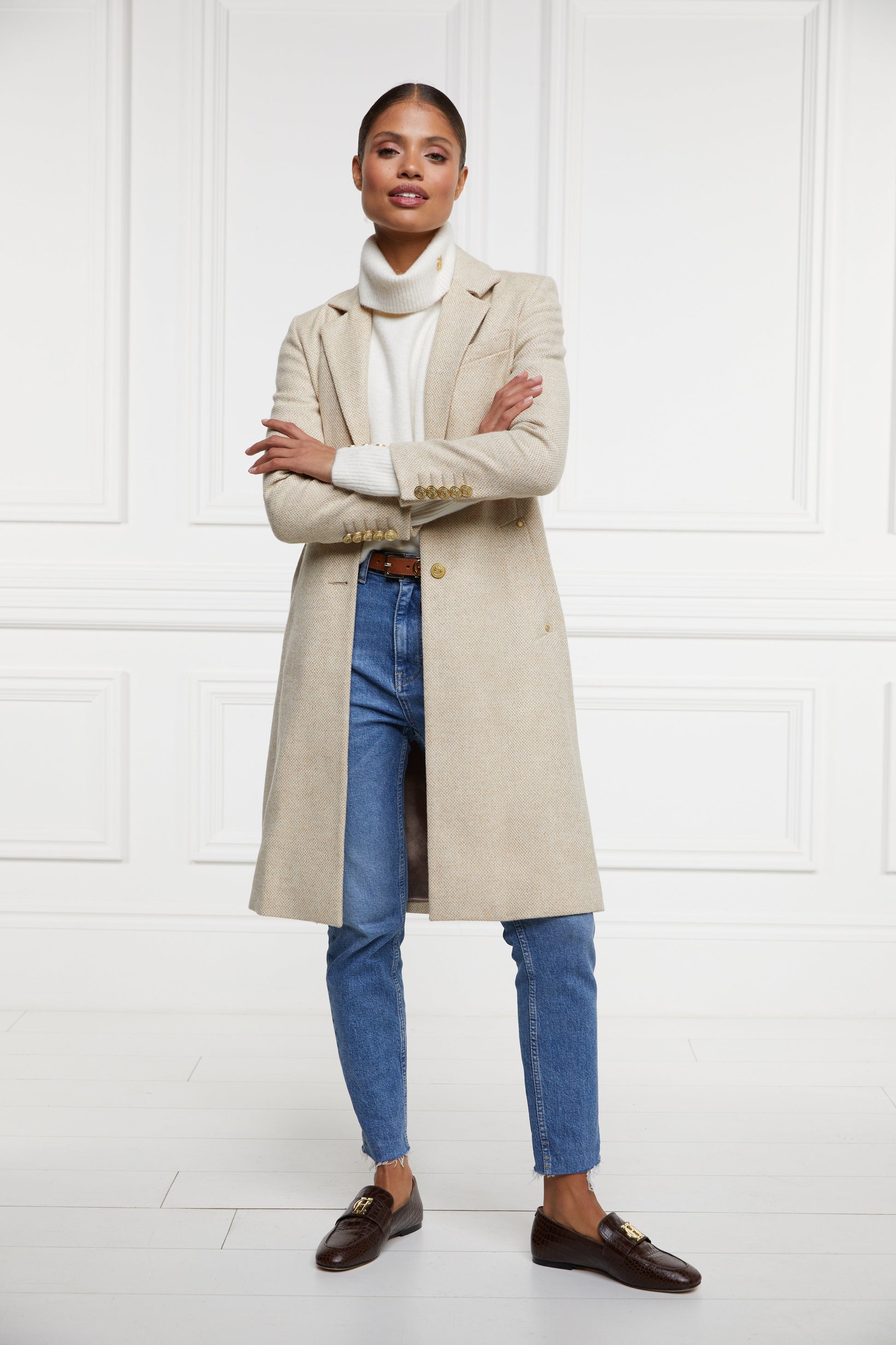 Perfectly capturing understated elegance. the Regency Coat offers a tailored fit and exceptional craftsmanship with each cut. Its clean cut lines. luxury button fastenings and slim tailored silhouette complements Winter dressing. Wear open or closed. this coat lends itself effortlessly to the slim fit tailoring which is centred around a decorative back buckle.