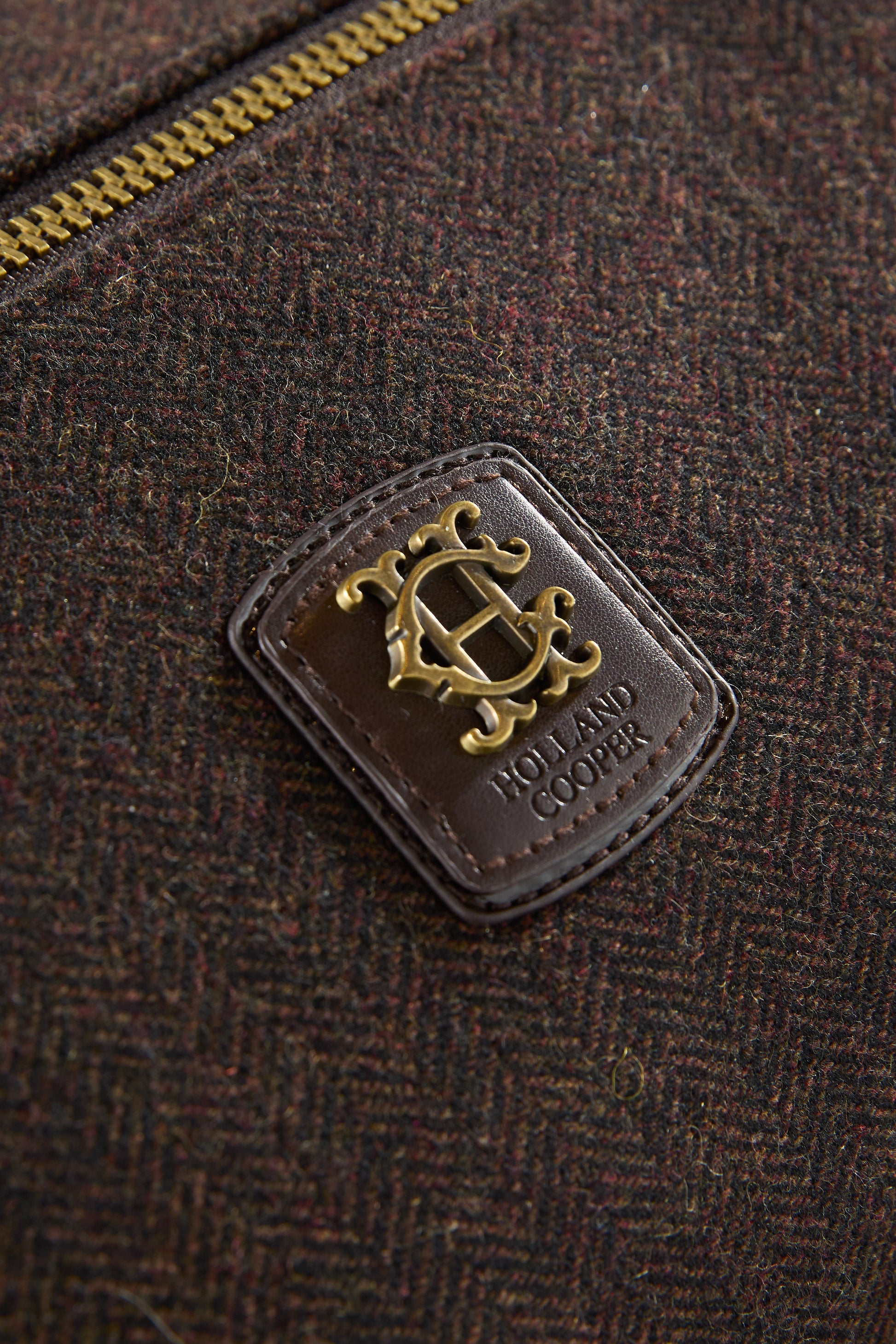 Our classic Regency Holdall has been reimagined with stunning new uppers. The Brown Herringbone edition features a thick. luxurious textile paired with rich chocolate leather trims and penny brass accents. creating a timeless and sophisticated look. Combining elegance with practicality. this updated Regency Holdall is perfect for any journey. offering both style and functionality in one refined package.
