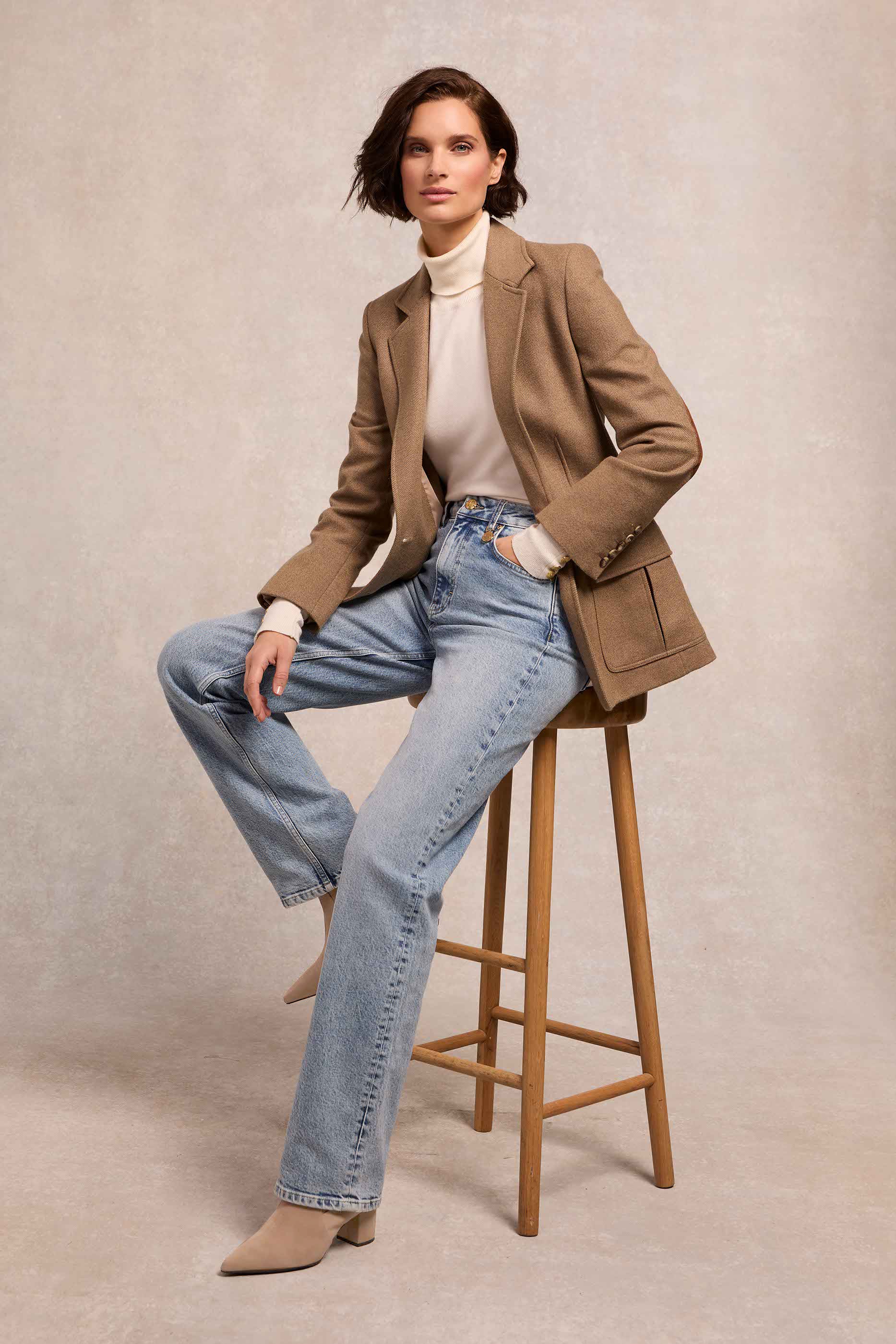 This miracle boot is designed for effortless elegance and all-day wear. Featuring the perfect heel height for both style and comfort. its refined block heel is wrapped in premium suede for a sophisticated finish. The sleek pointed toe enhances its timeless silhouette. adding a touch of sophistication to every step. The luxuriously soft nude leather lining ensures a plush feel. while the polished gold-tone zip closure adds a refined touch.