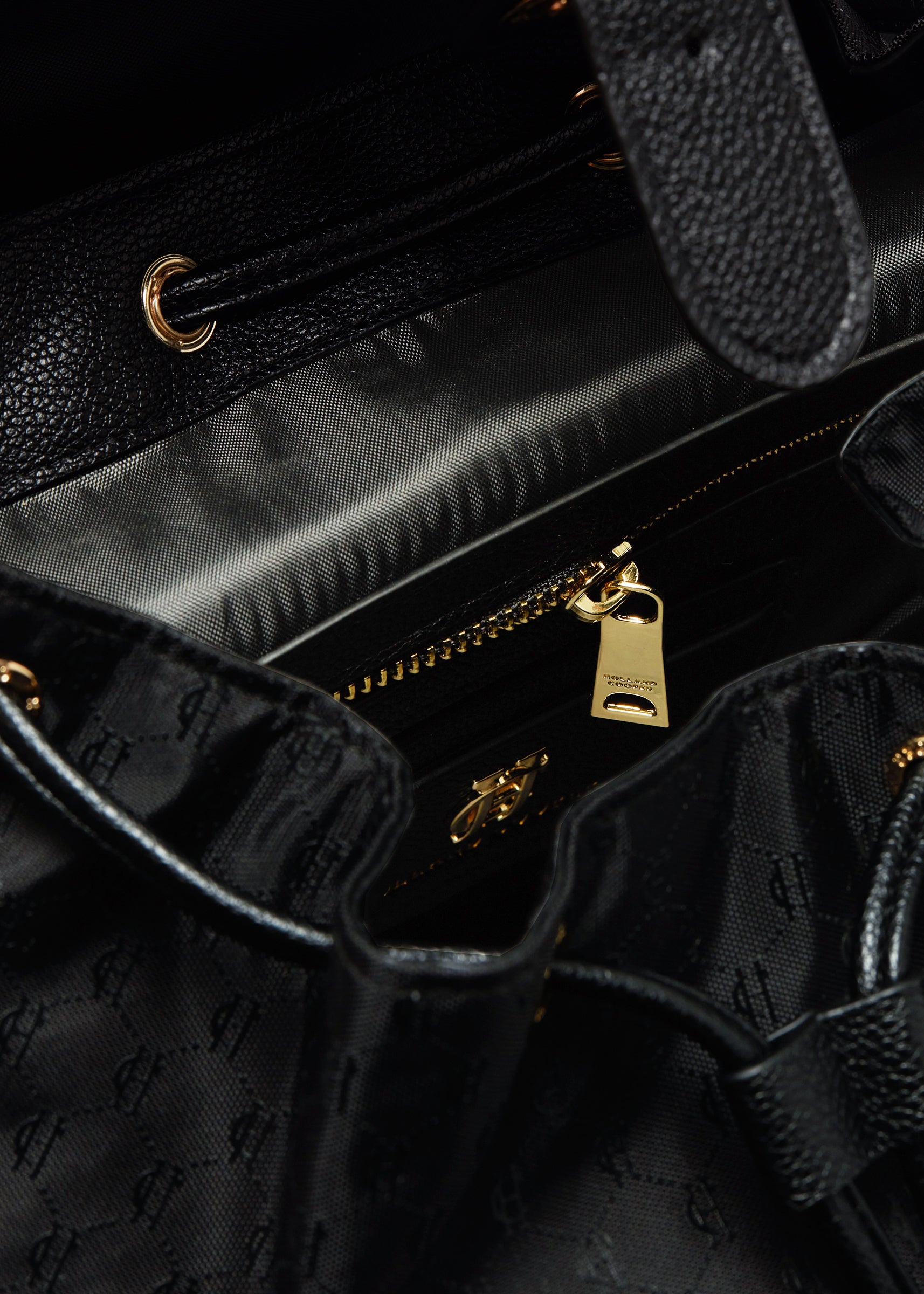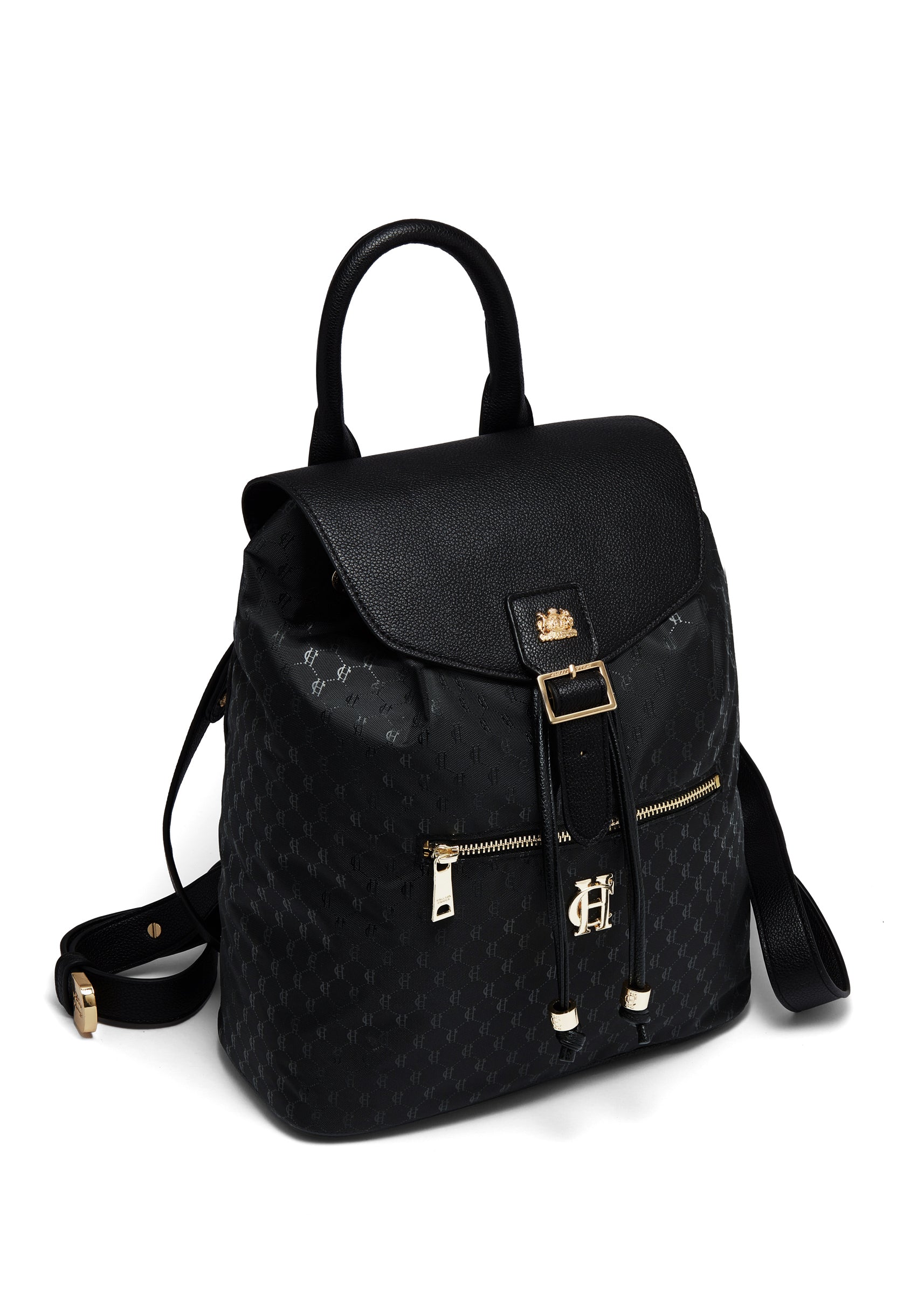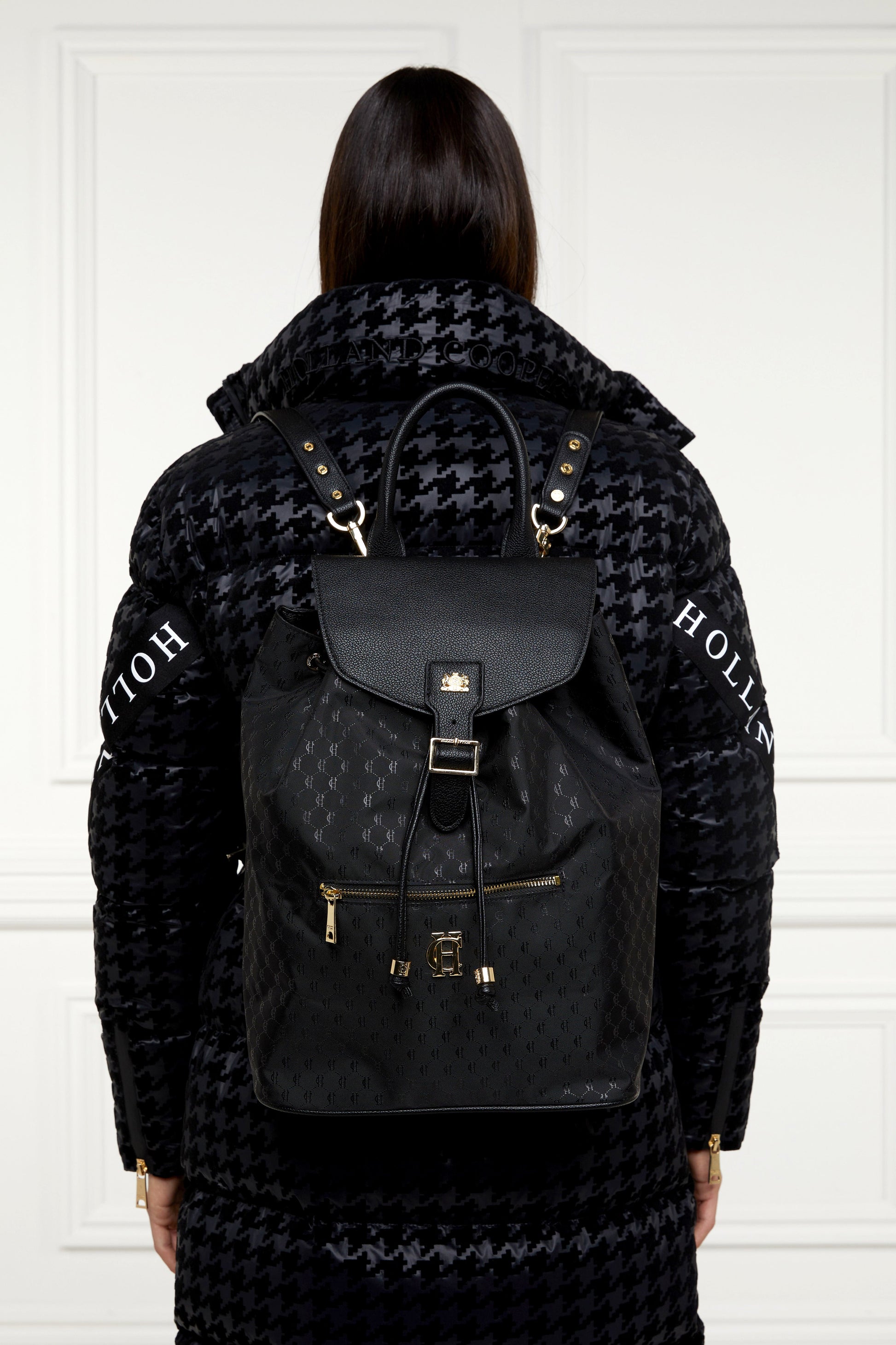 This fully branded. showerproof backpack features our iconic monogrammed upper. making a stylish statement while offering practical protection against the elements. Fully lined to guard against rain. it ensures your belongings stay dry and secure. Crafted with premium recycled PU trims and adorned with our iconic HC hardware. the Burghley Backpack seamlessly combines sustainability with luxury. Perfect for any season. this backpack is the epitome of functional elegance.