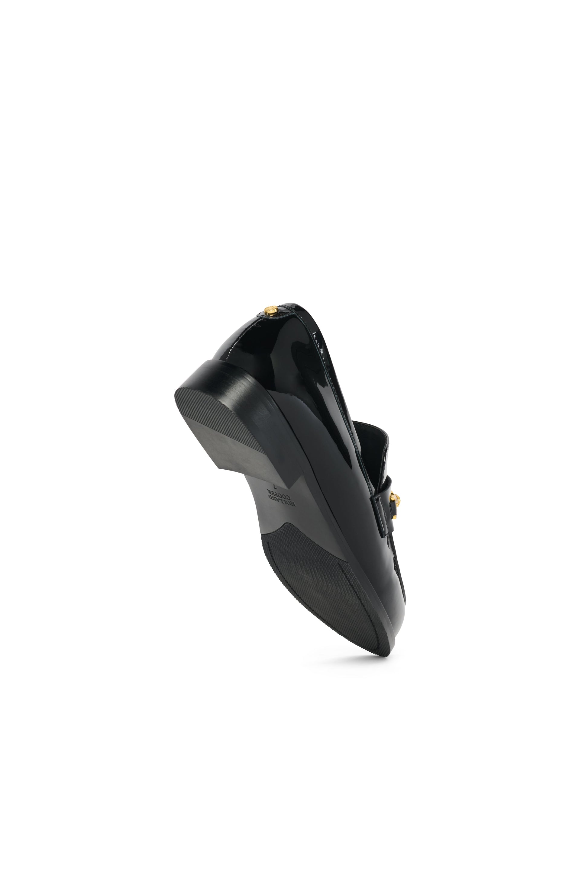 A modern twist on a classic loafer. the Regency Pearl Loafer is crafted in high-shine patent cow leather with a sleek black outsole. The top is adorned with a new signature pearl and logo chain. adding a refined. contemporary touch to this timeless silhouette. Perfect for elevating both smart and casual outfits. it embodies understated elegance with Holland Cooper's iconic detailing.