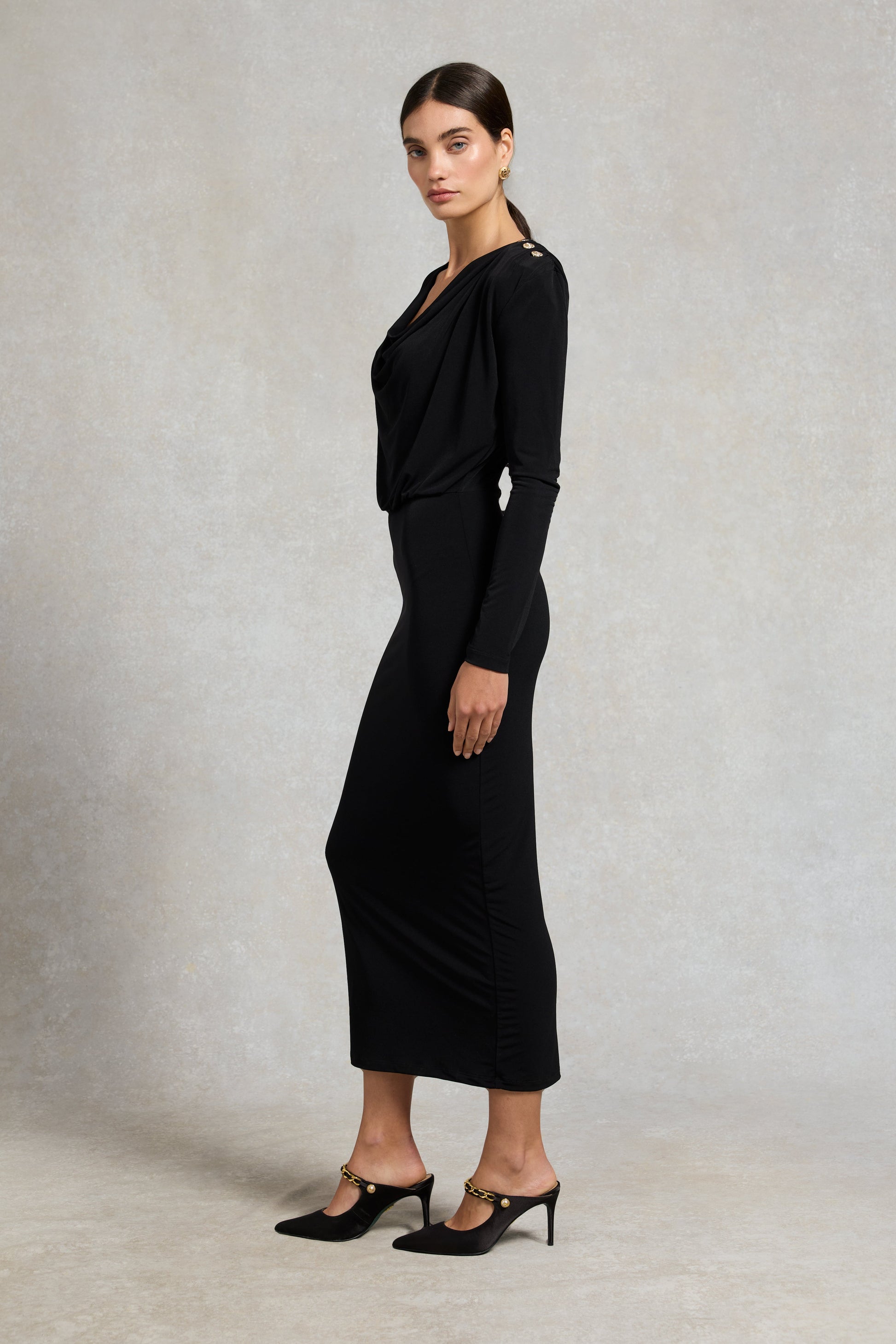 A timeless blend of elegance and modern glamour. Beautifully crafted in lustrous satin. this mule features an exquisite pearl and leather-wrapped chain detail across the foot for a touch of opulence. Set on a sleek stiletto heel. it's the perfect statement piece for evening dressing and special occasions alike.