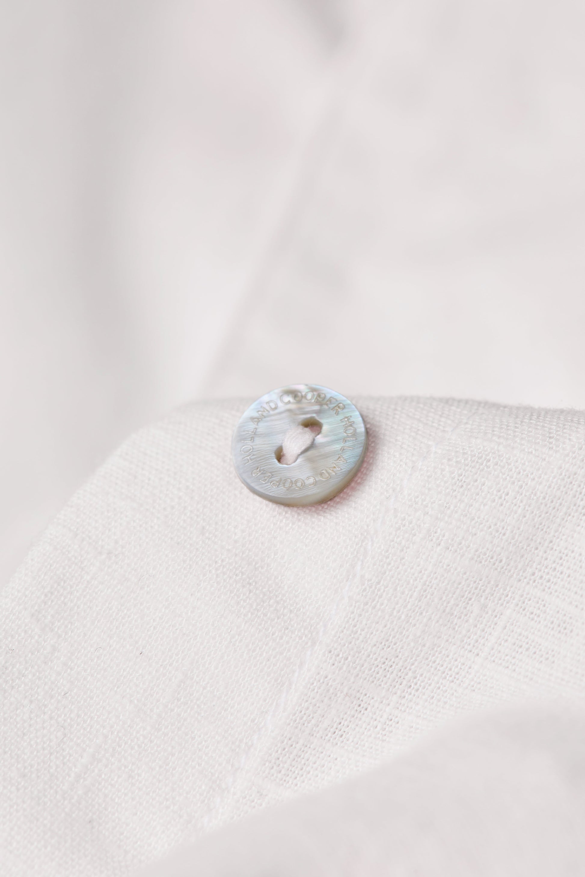 This refined essential combines luxury and comfort. featuring our premium linen blend that offers exceptional breathability with minimal creasing. The relaxed silhouette embodies effortless sophistication. Adorned with lustrous shell buttons and our distinguished gold HC branding tab. this shirt is a versatile wardrobe essential.