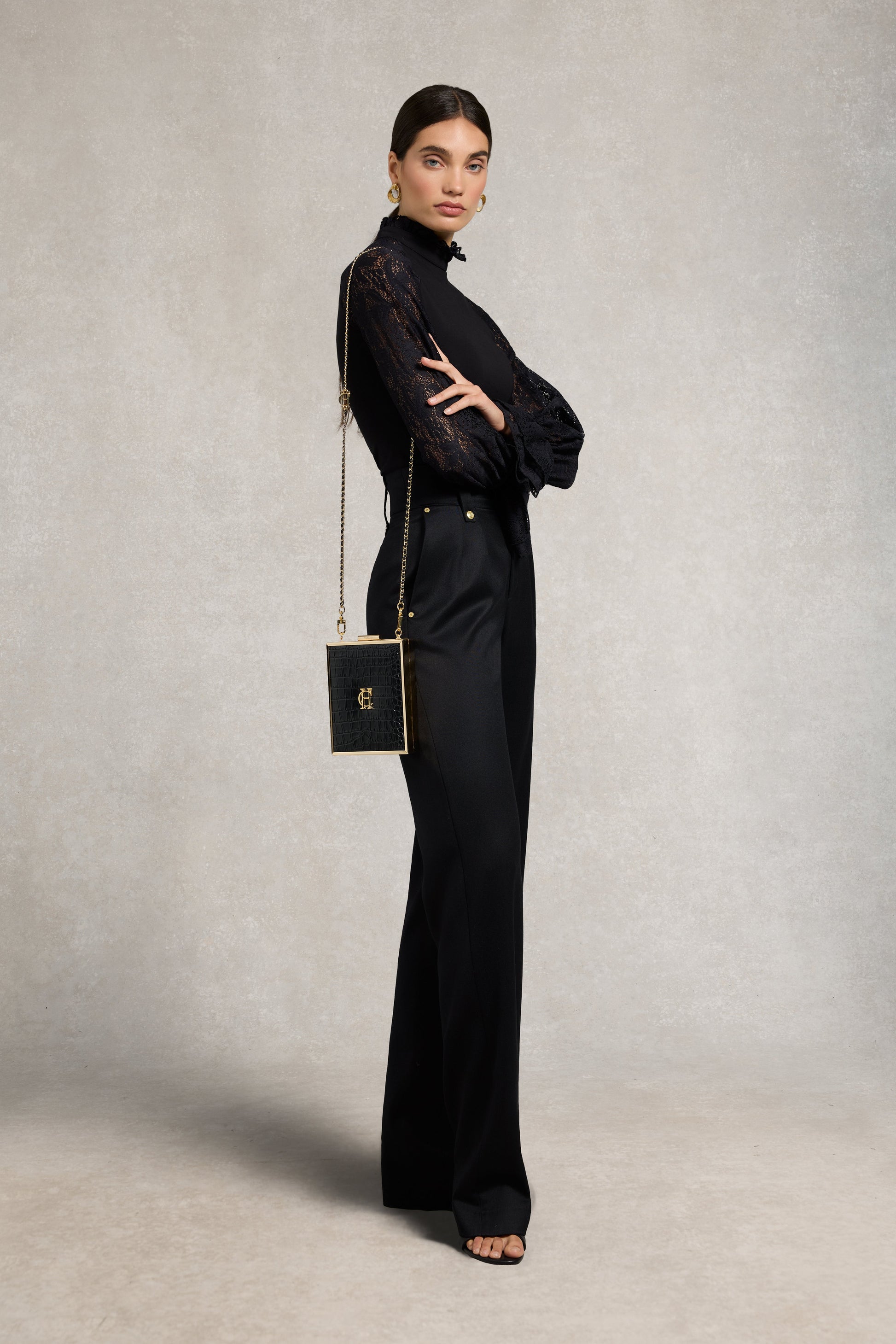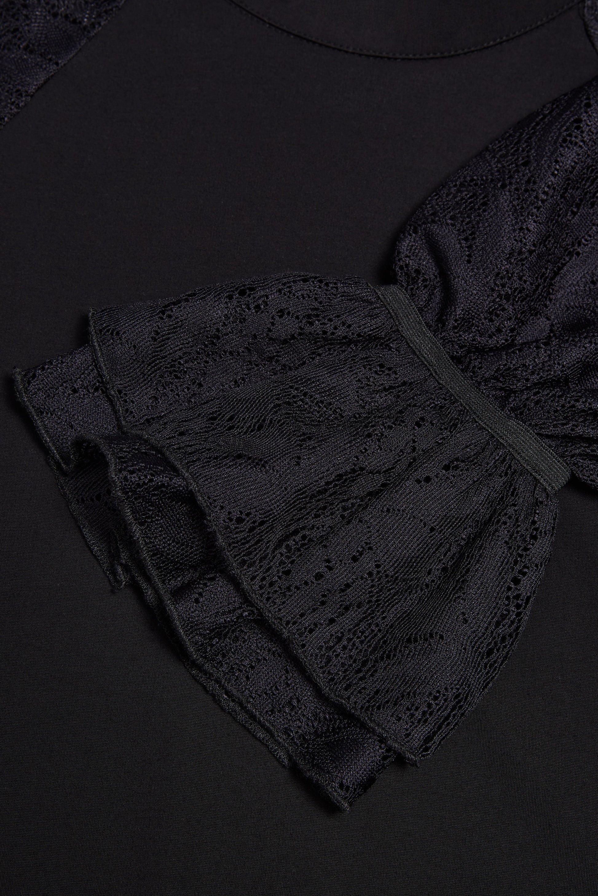 Delicate and romantic. the Rhianna Top features sheer lace sleeves and a slim. flattering silhouette. Designed with frill detailing at the high neckline and cuffs. it's finished with a subtle button-and-loop fastening at the back for a refined. feminine finish.